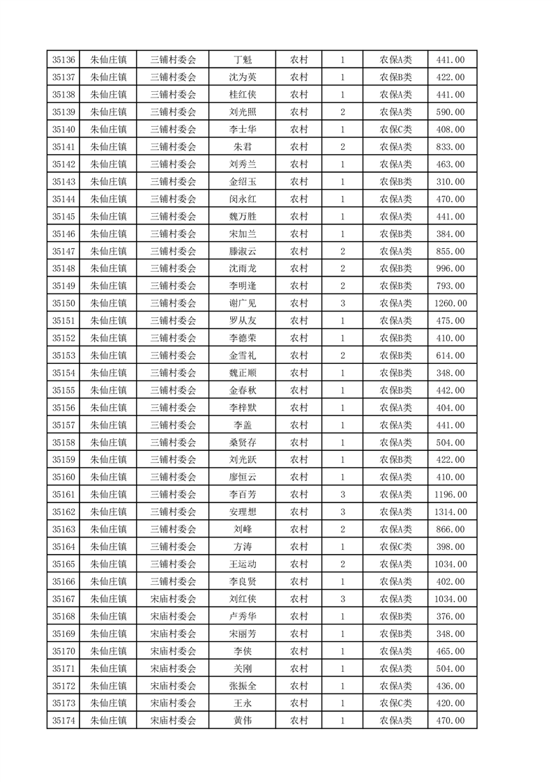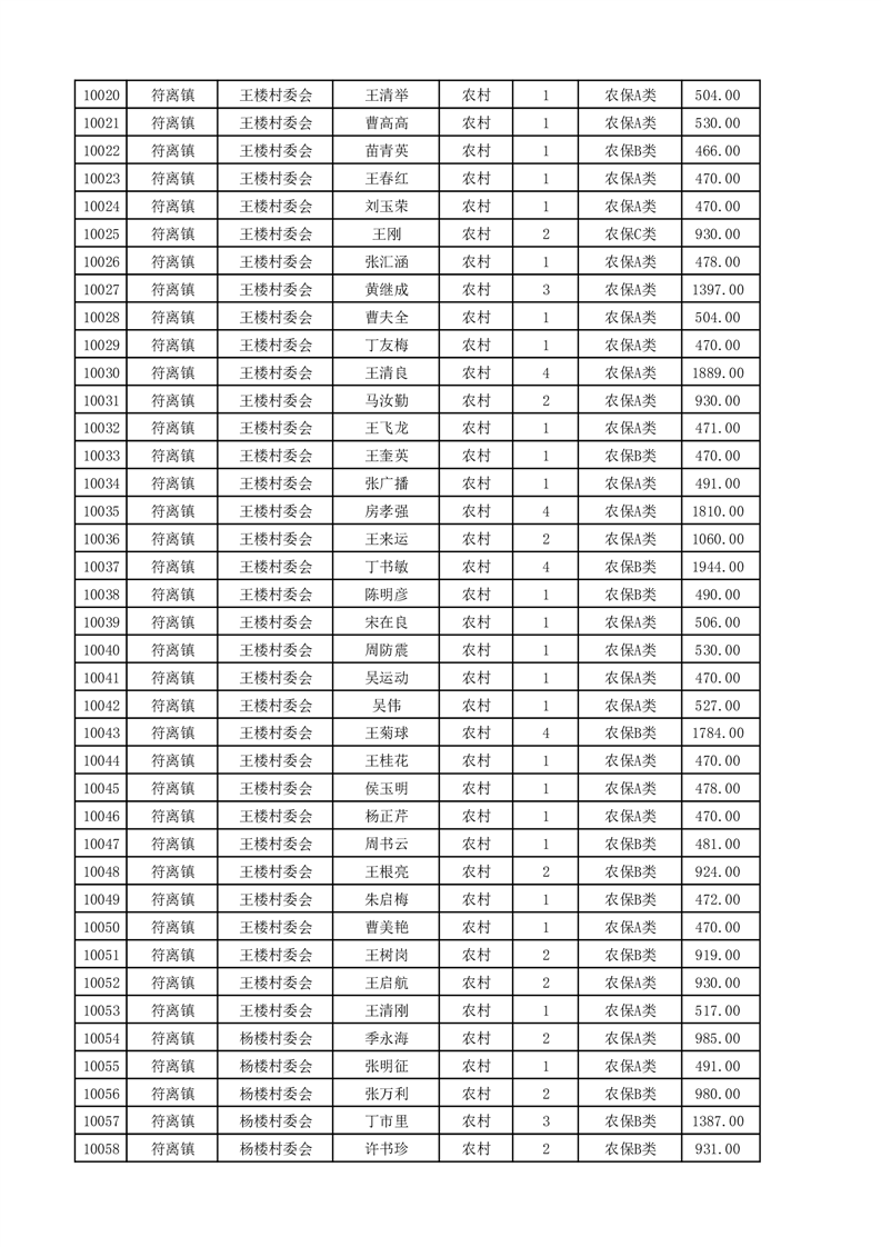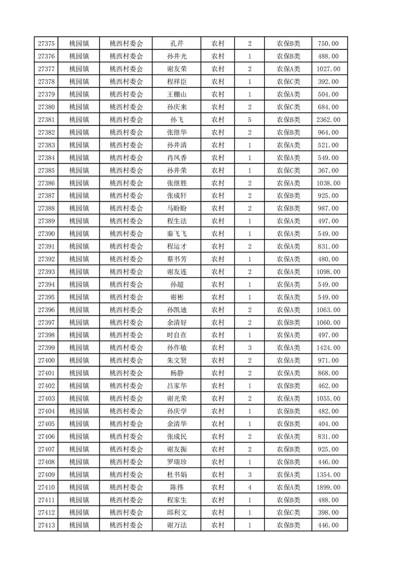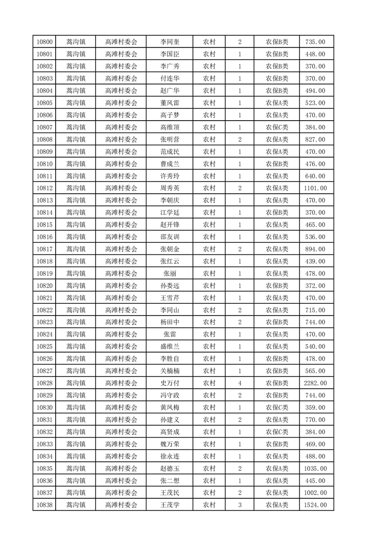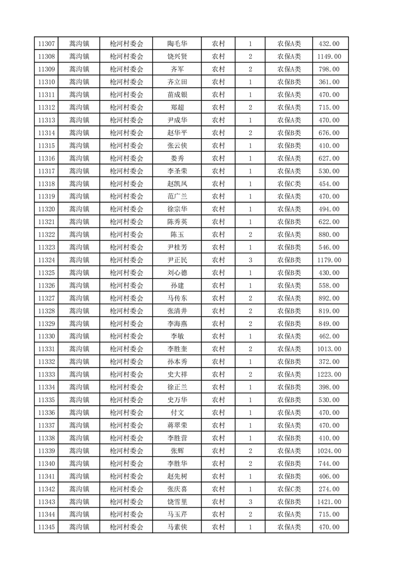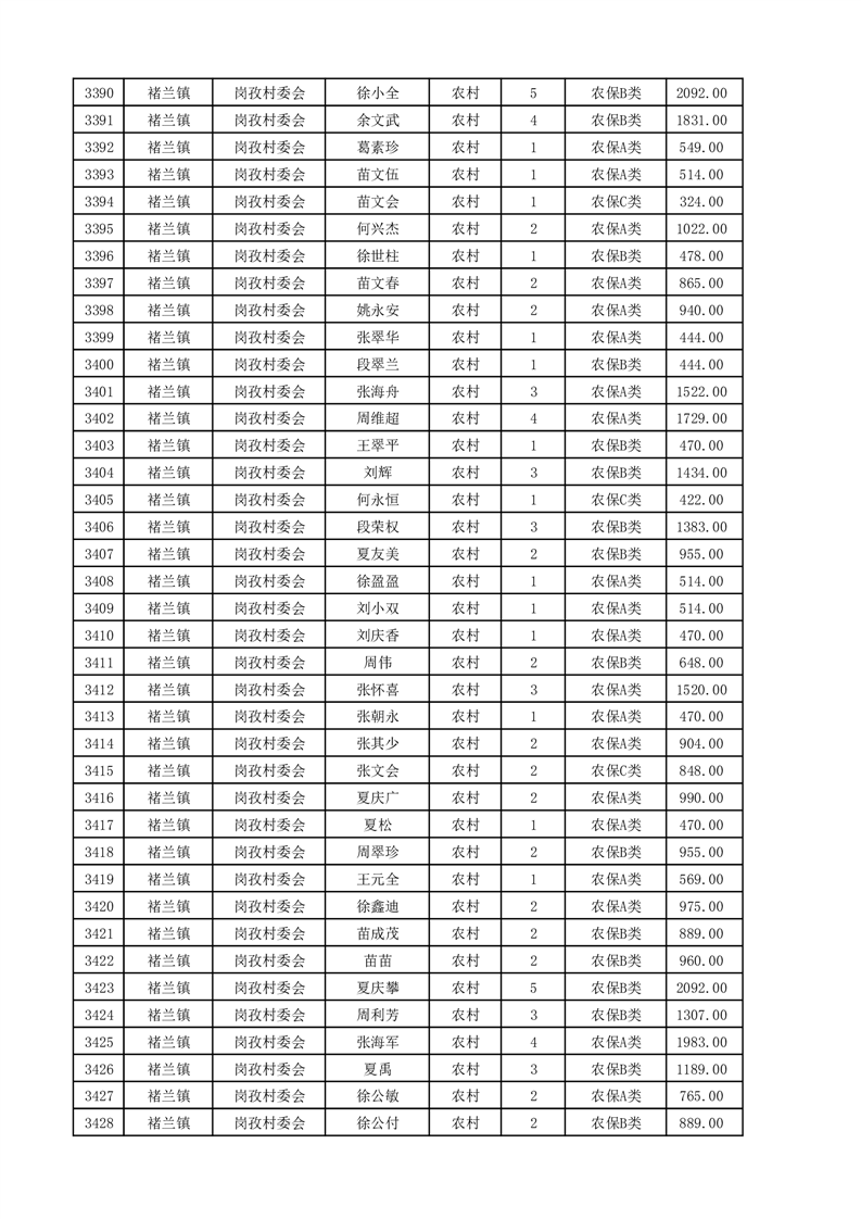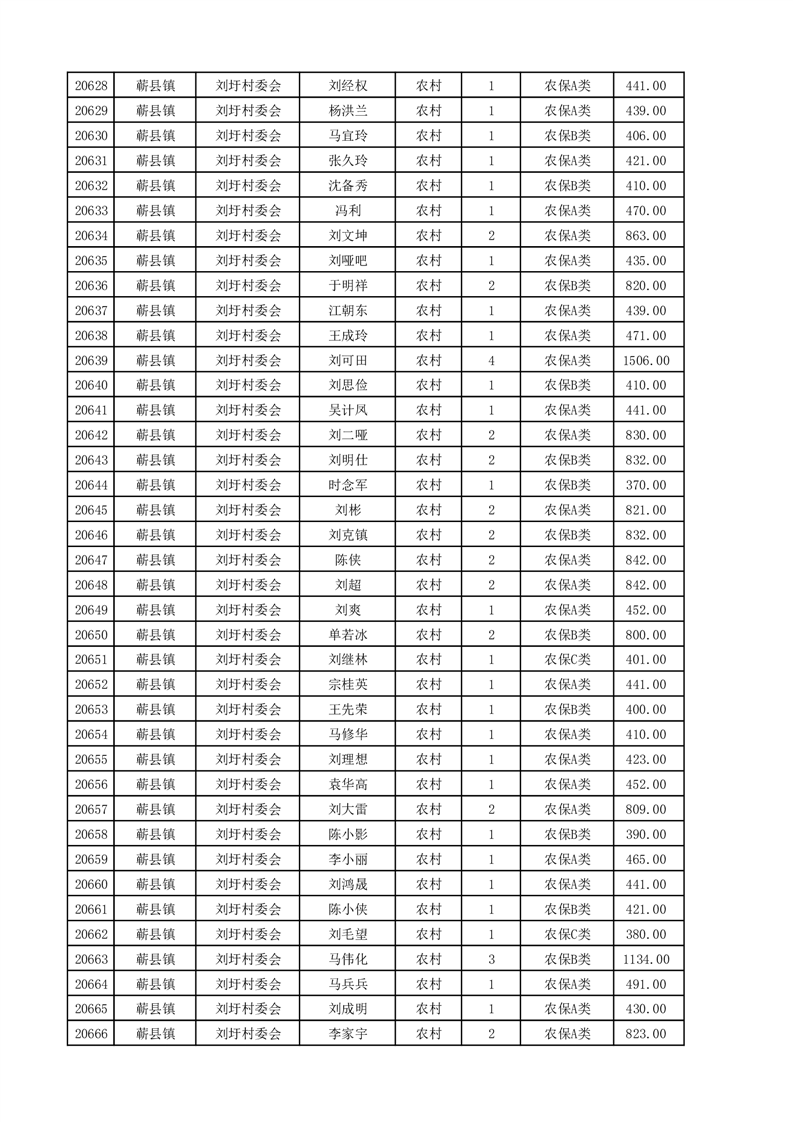 埇桥区2025年4月份农村低保花名册
