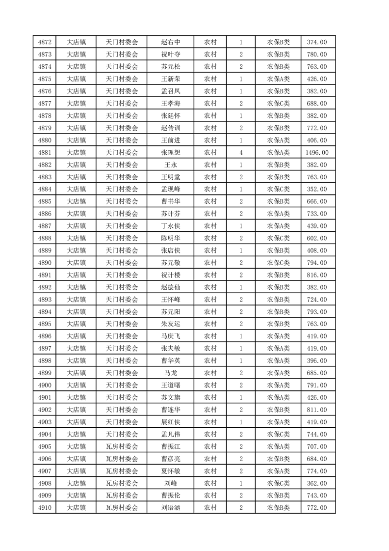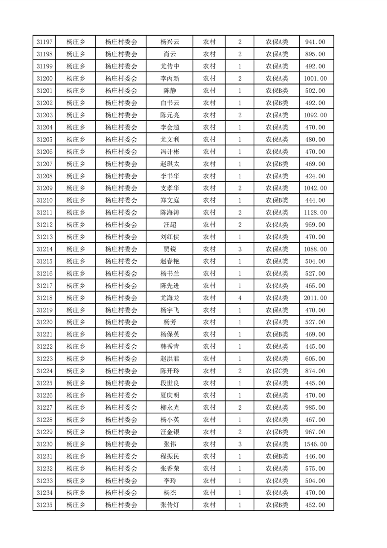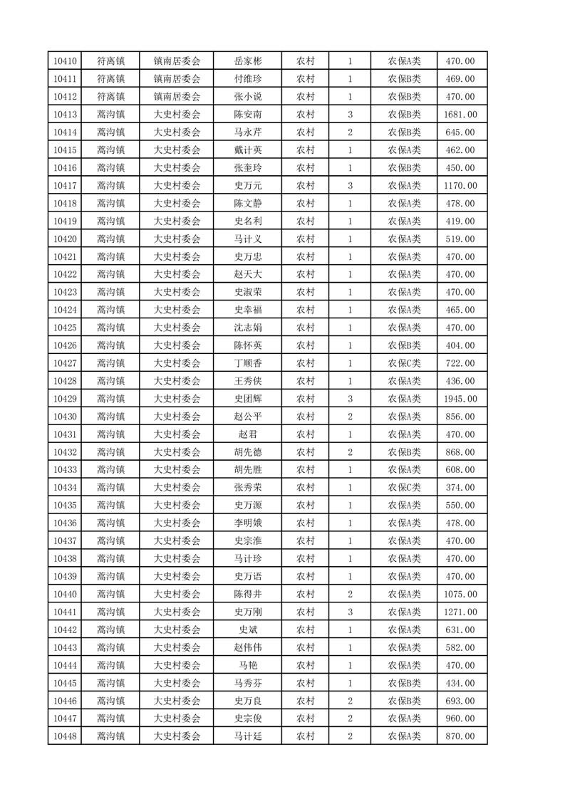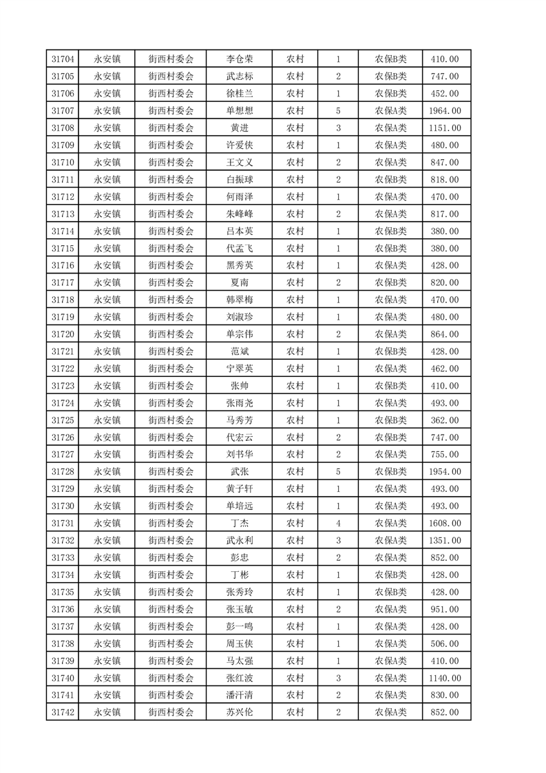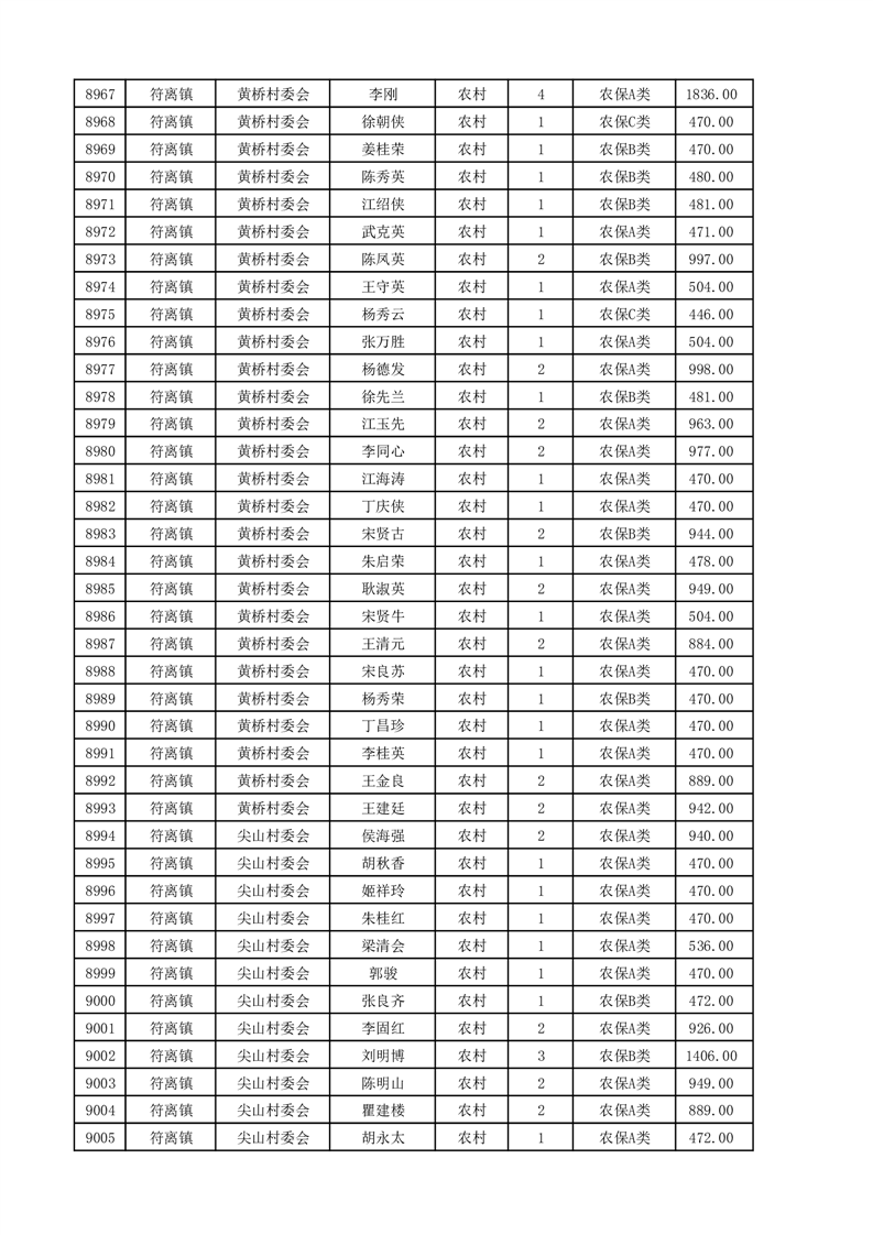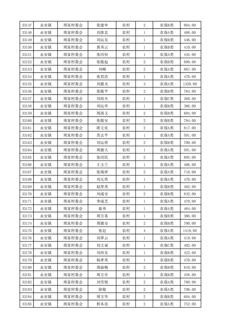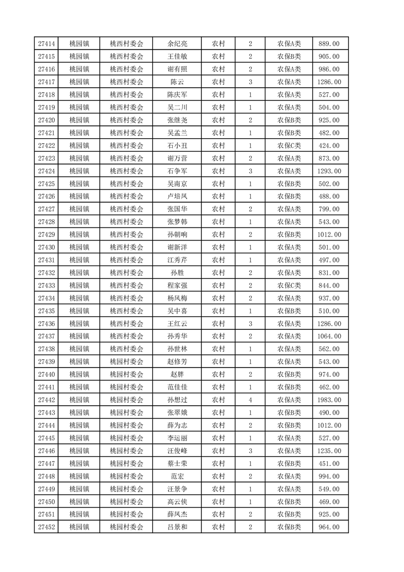 埇桥区2025年4月份农村低保花名册