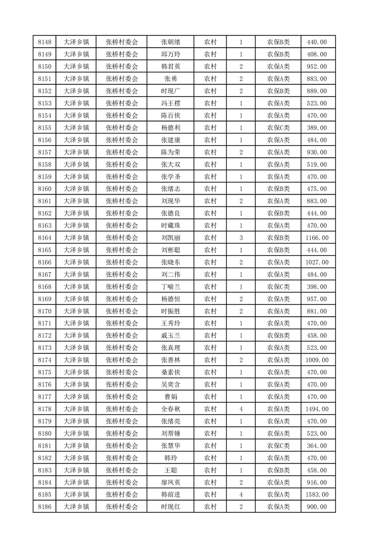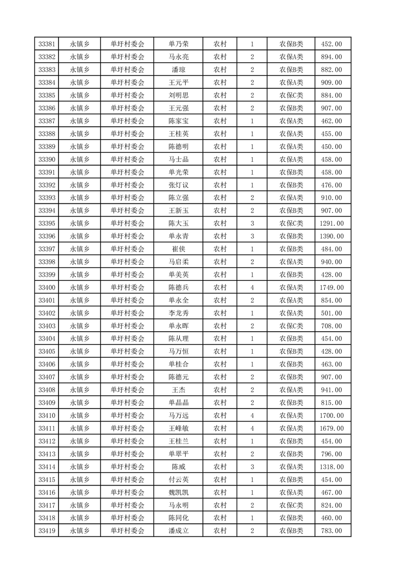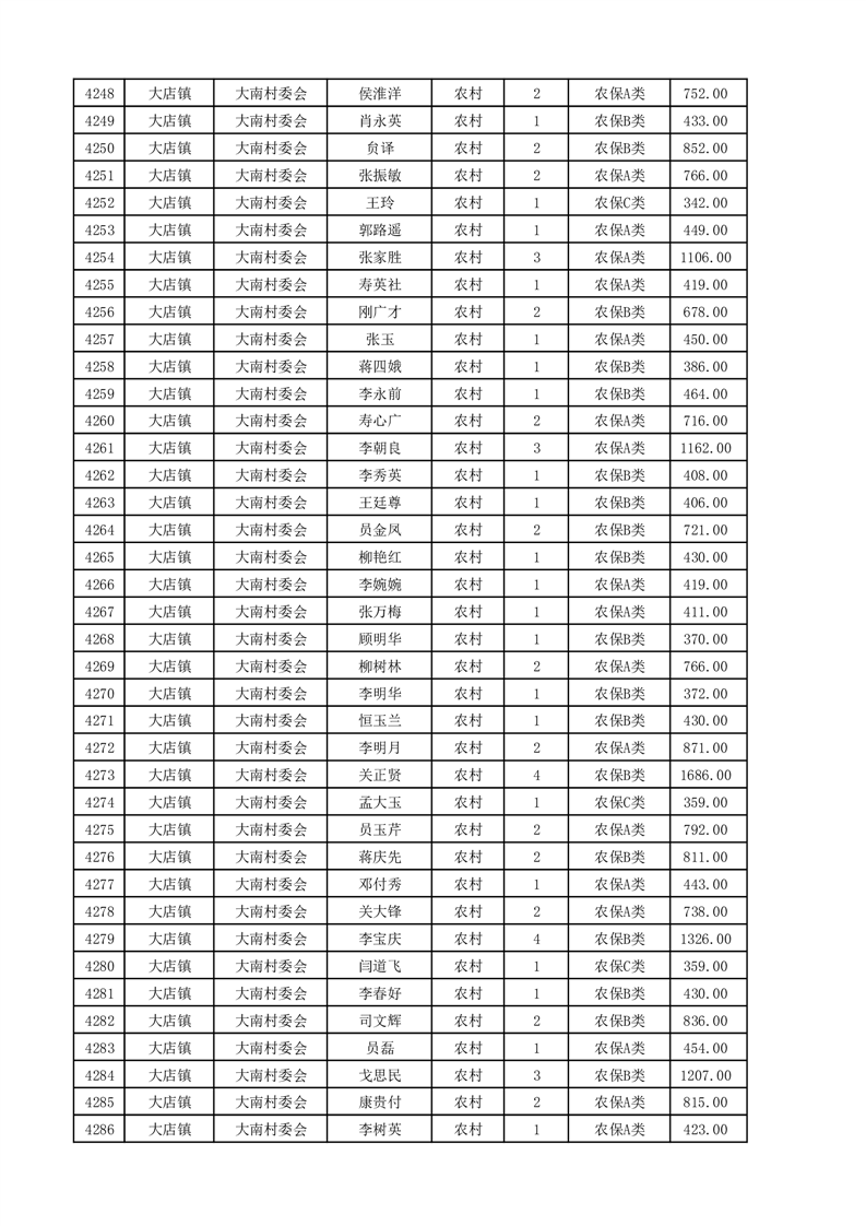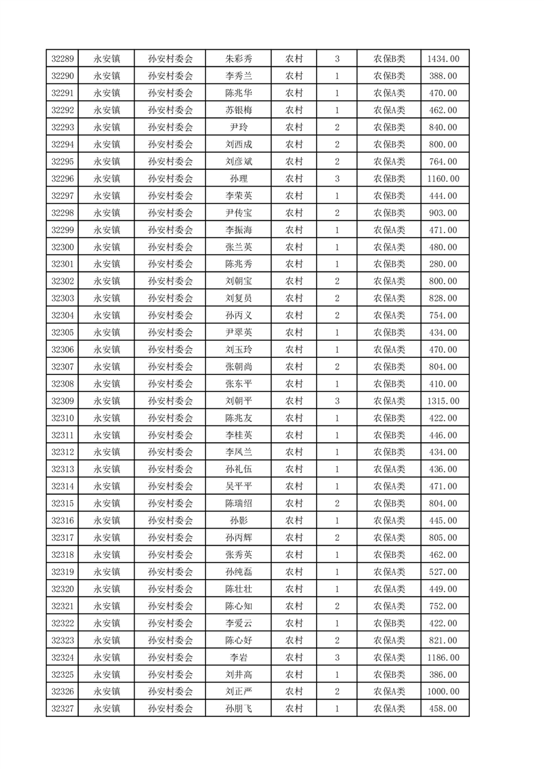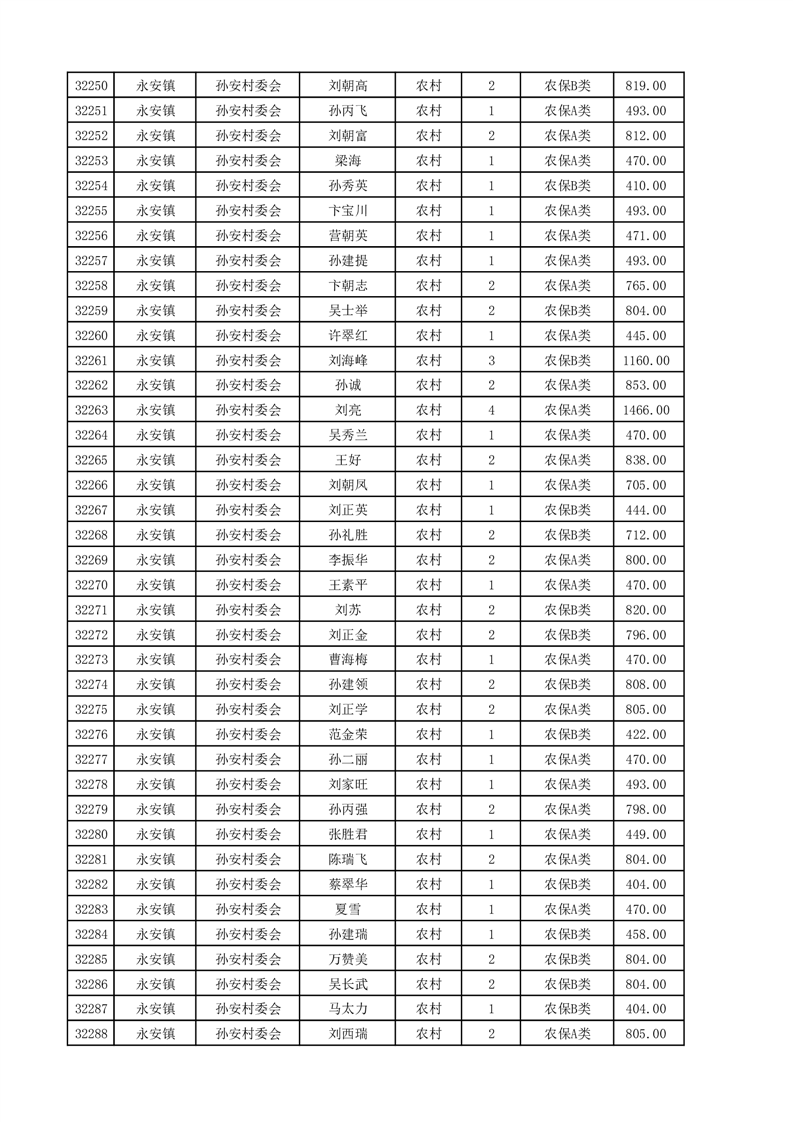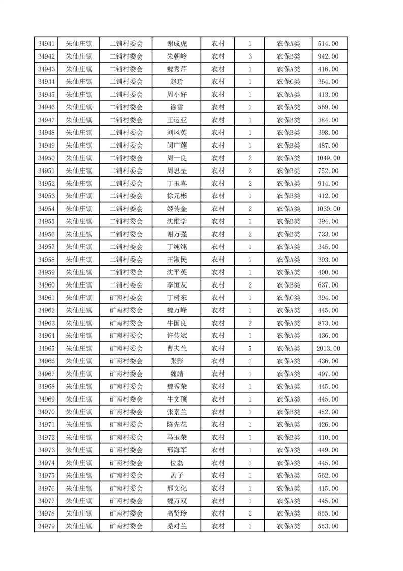 埇桥区2025年4月份农村低保花名册