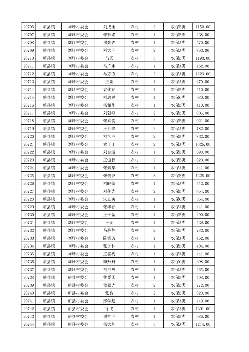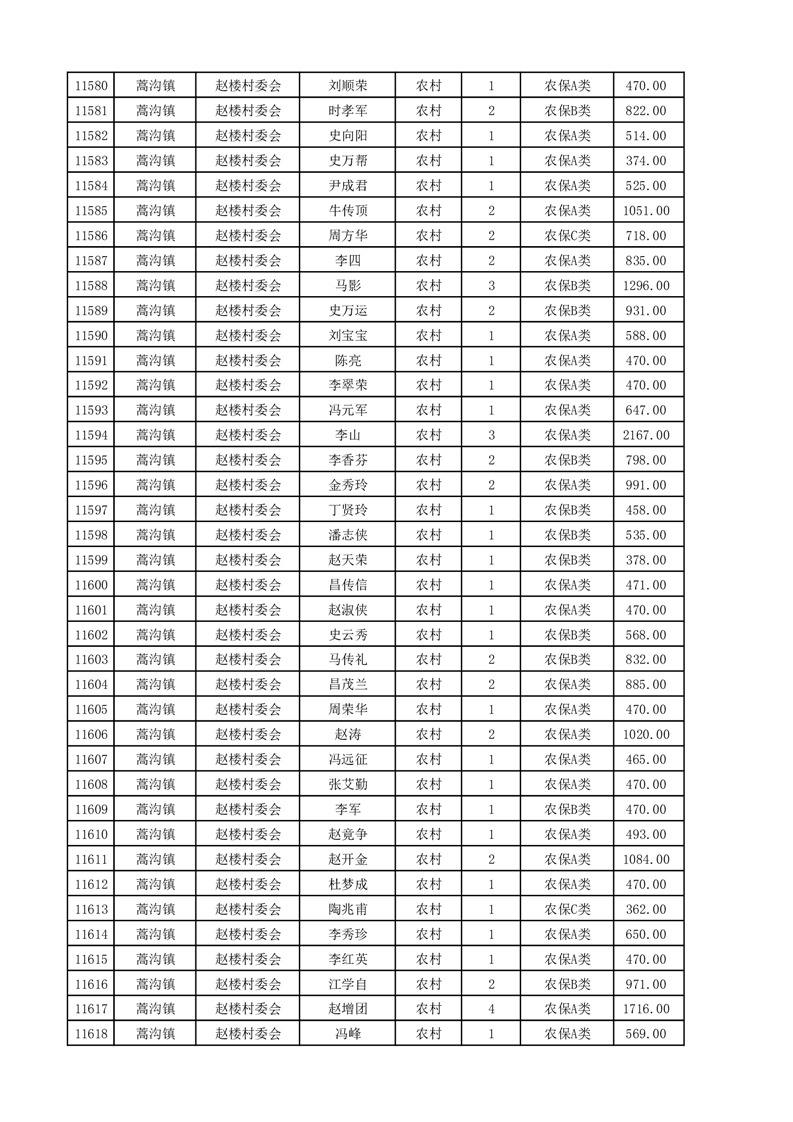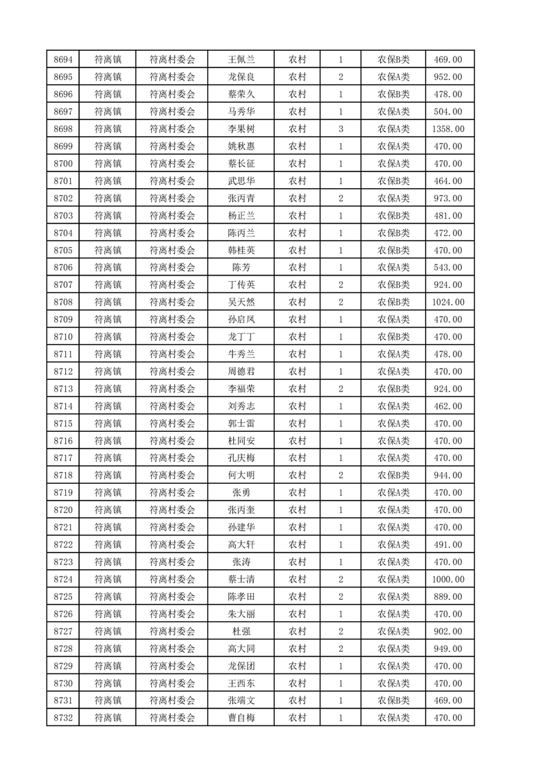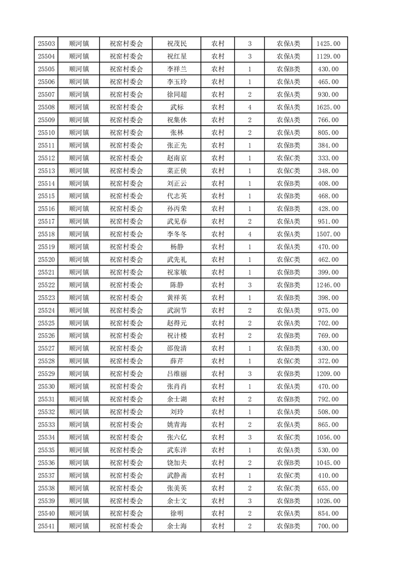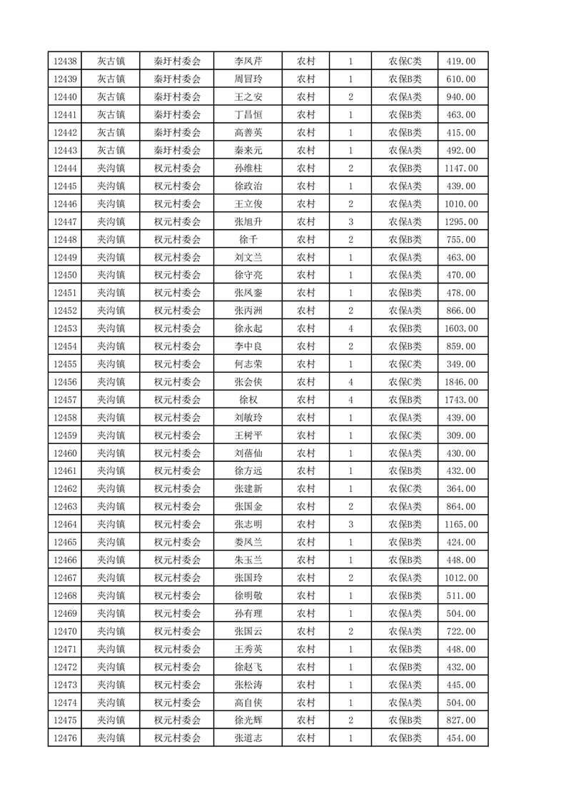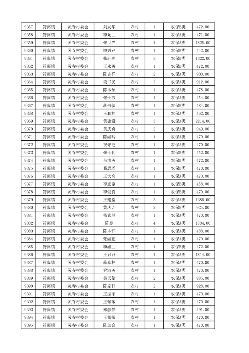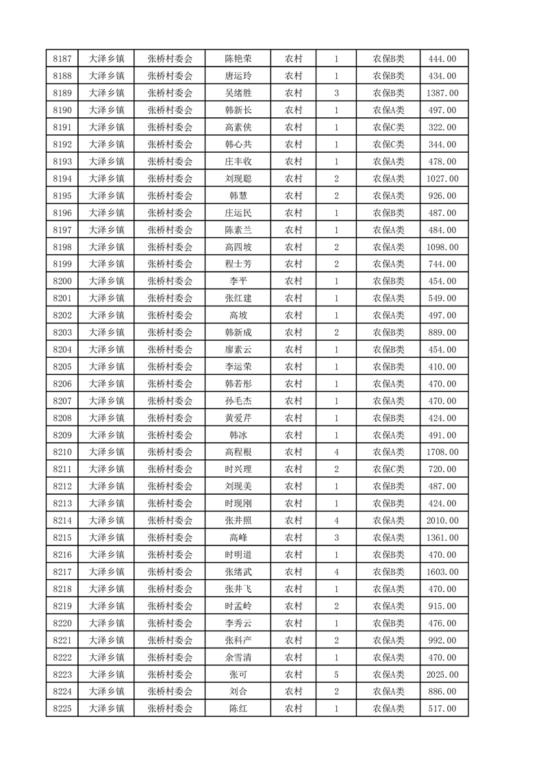 埇桥区2025年4月份农村低保花名册