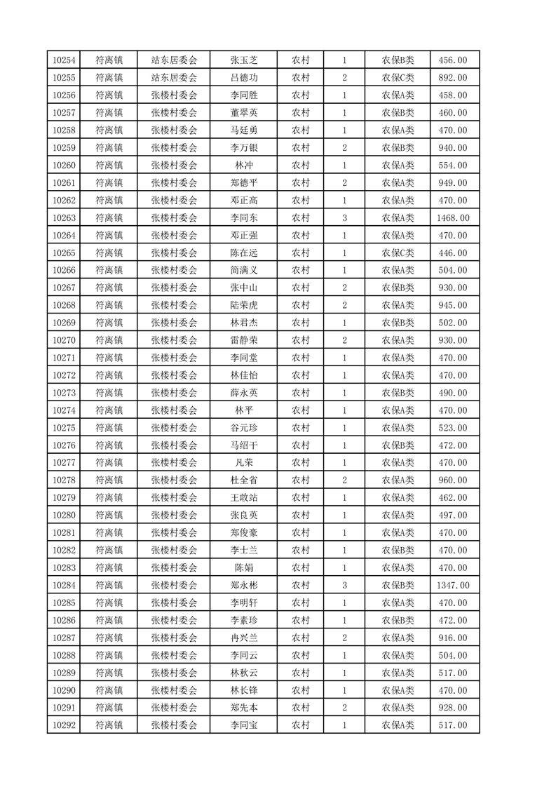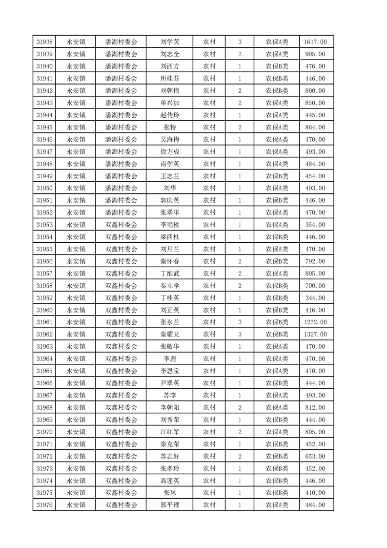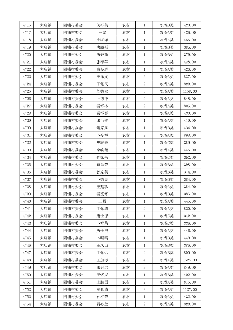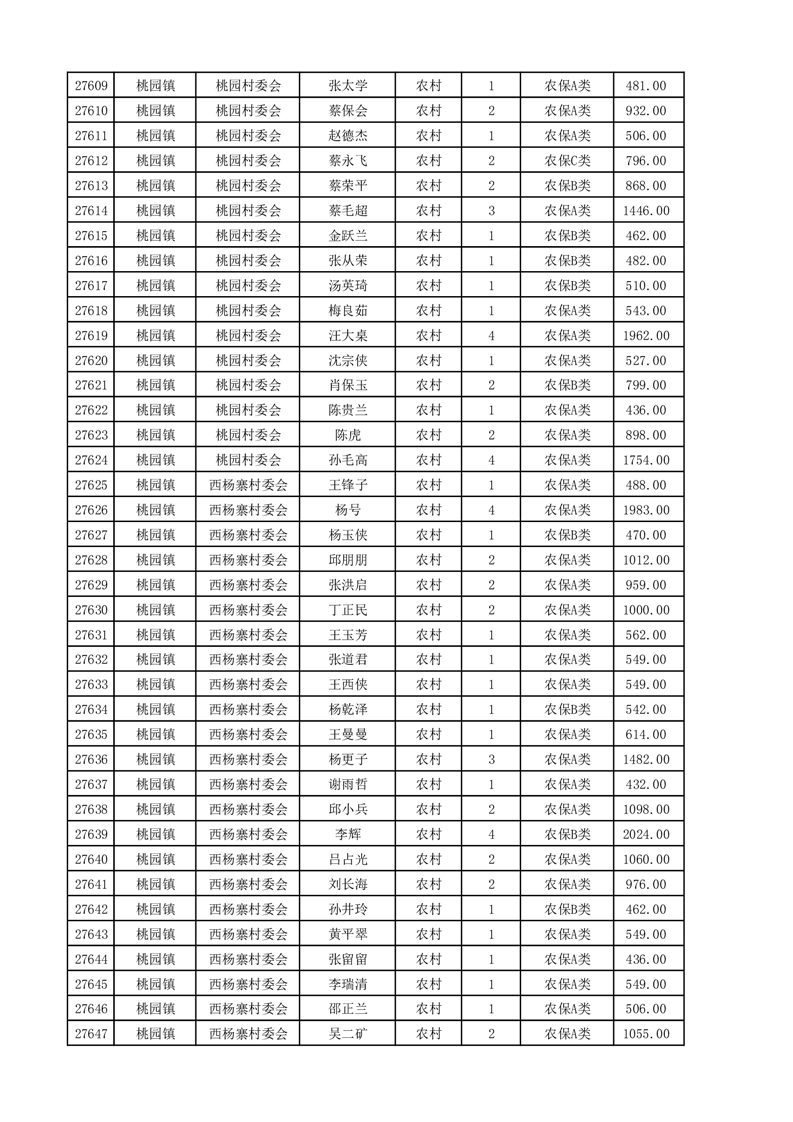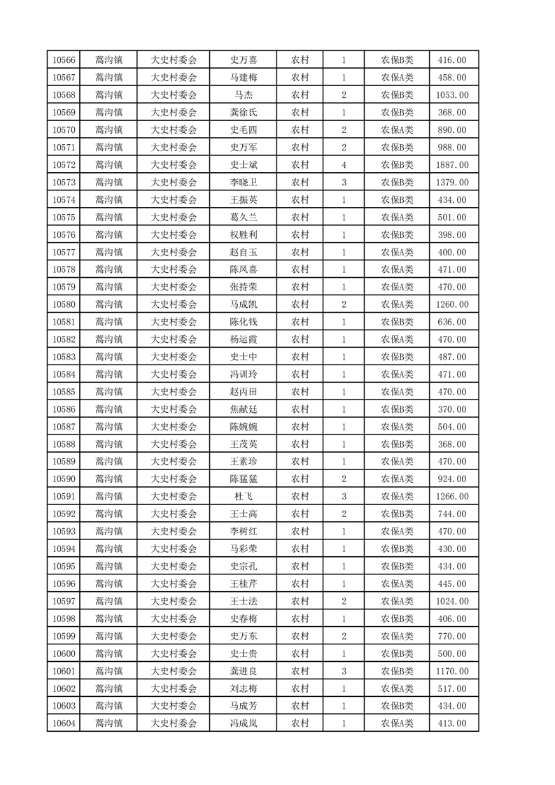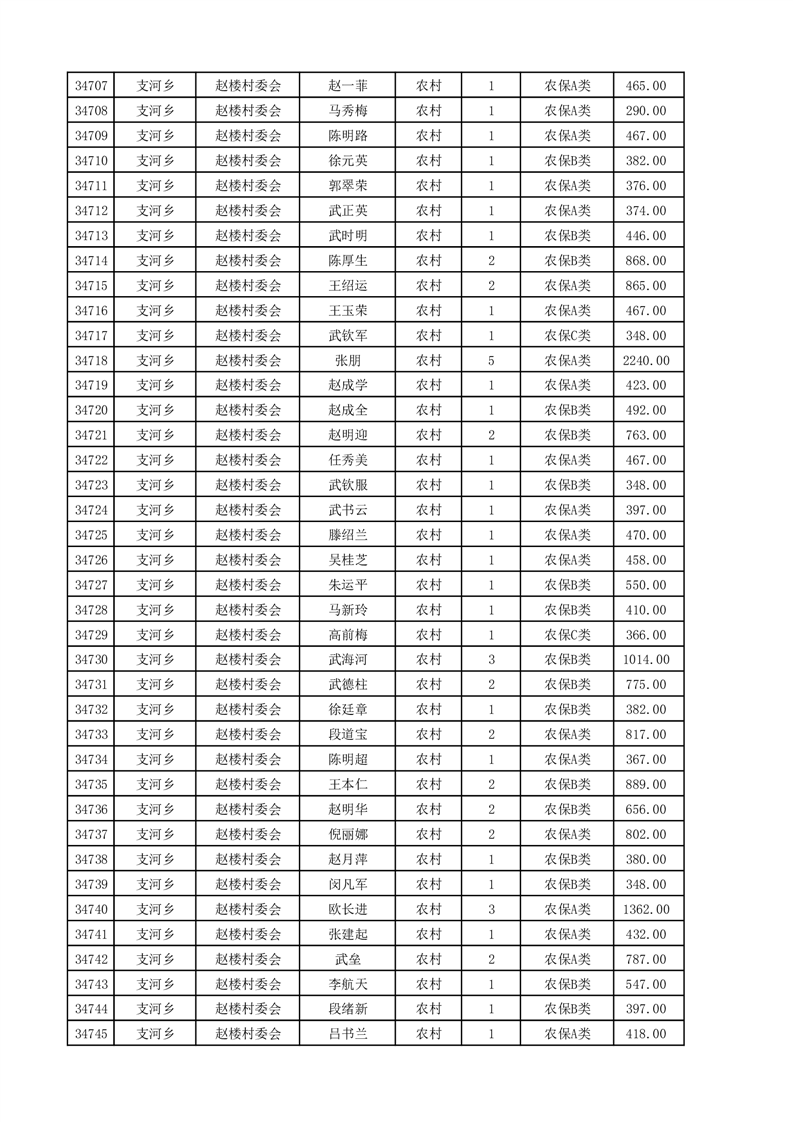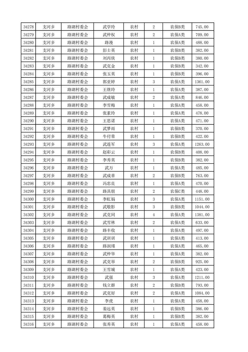 埇桥区2025年4月份农村低保花名册
