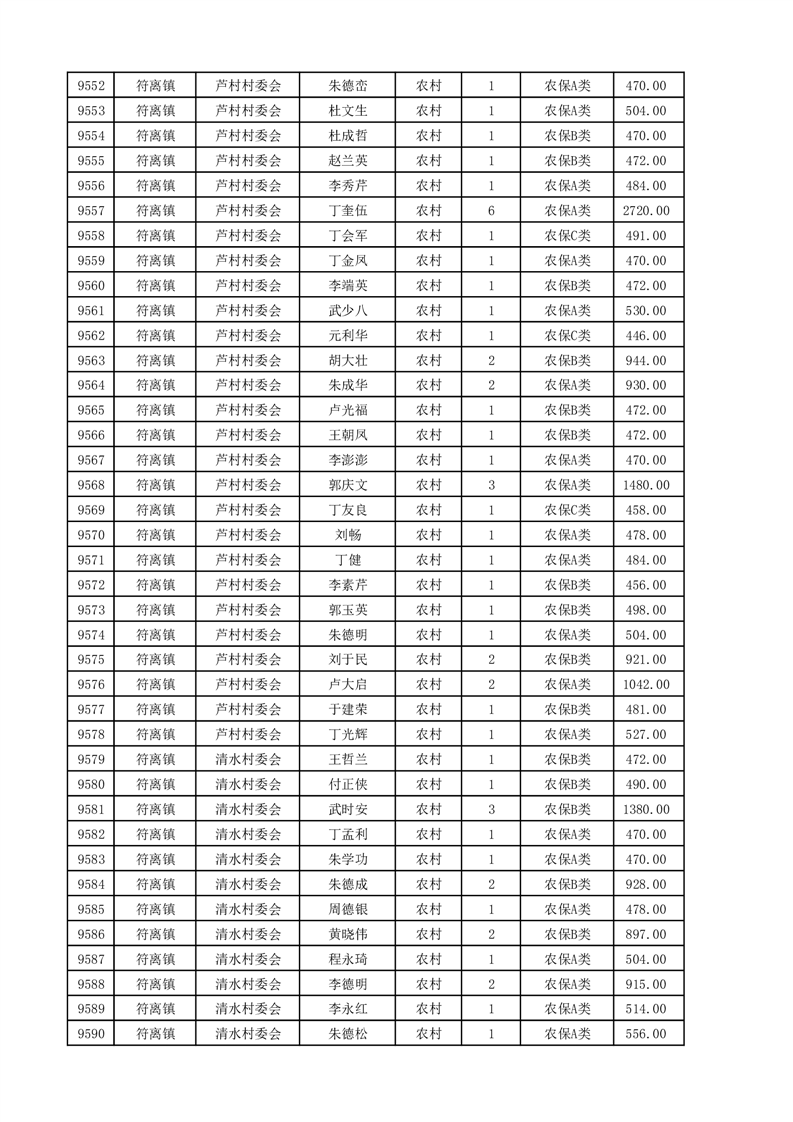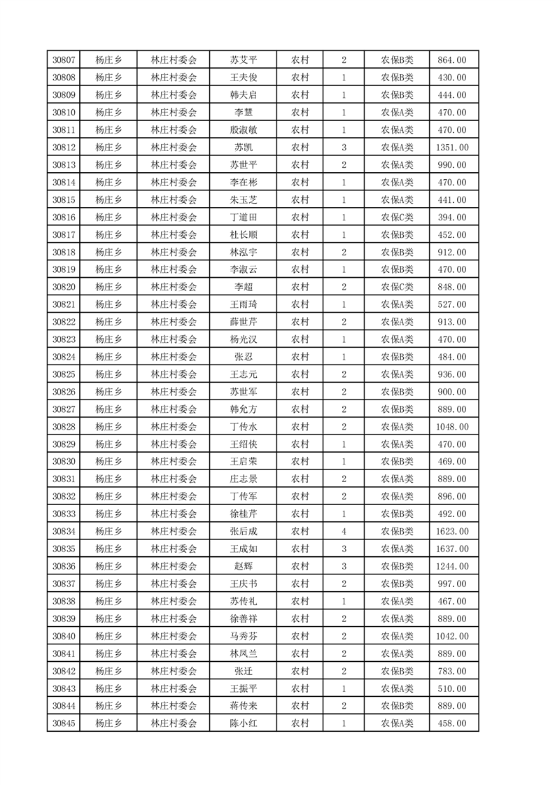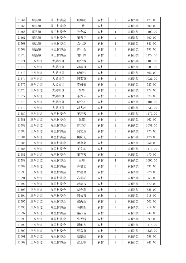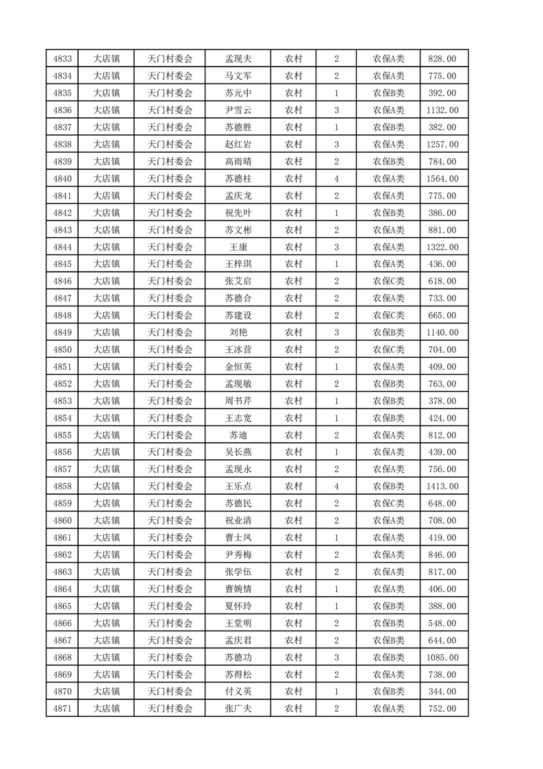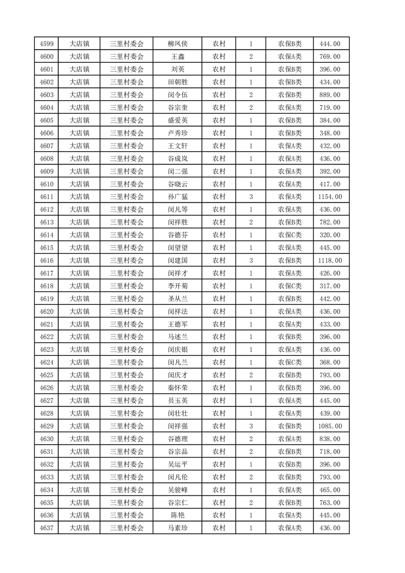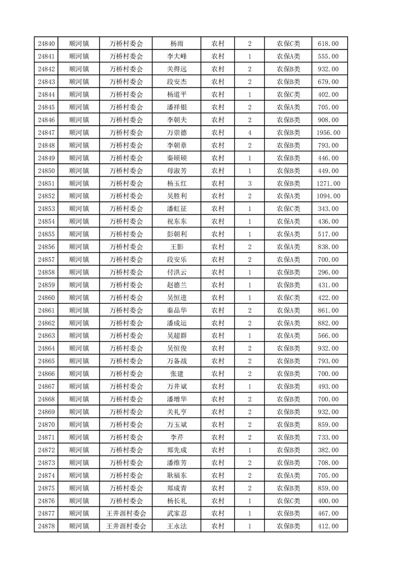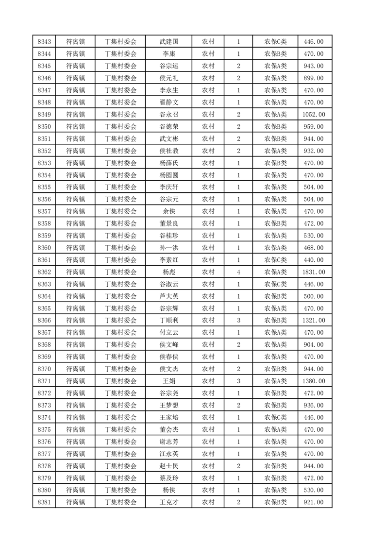 埇桥区2025年4月份农村低保花名册