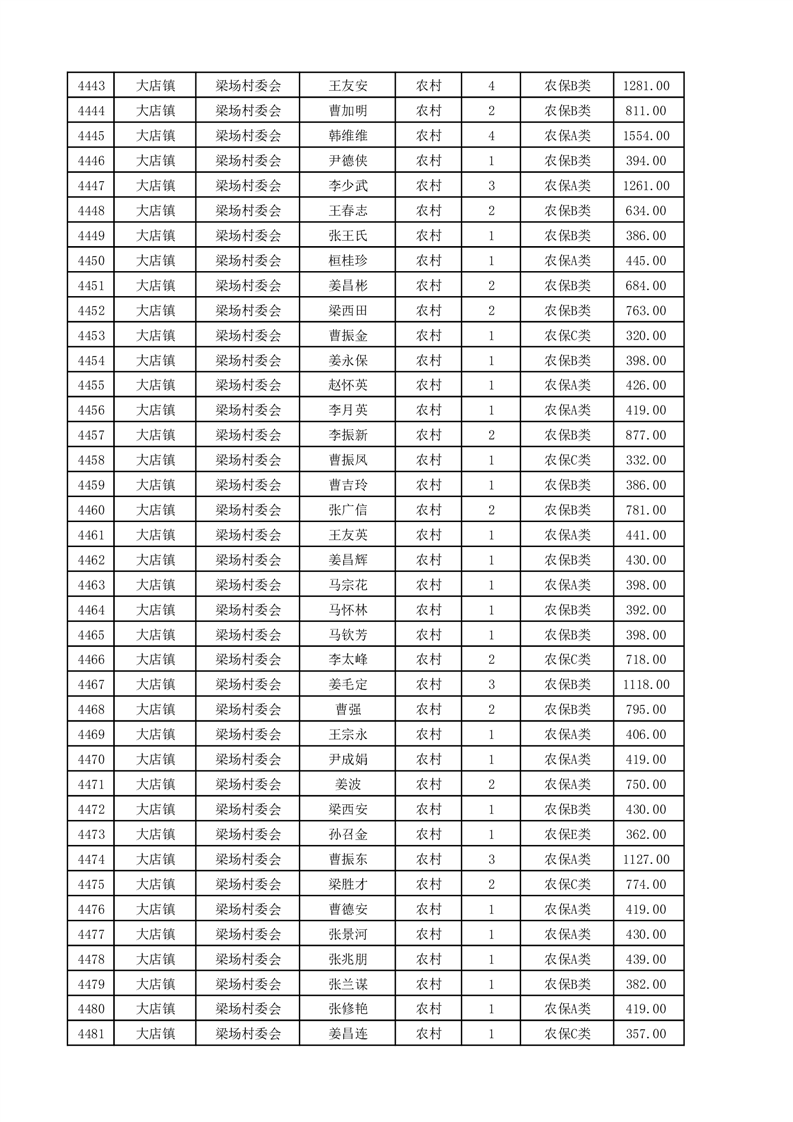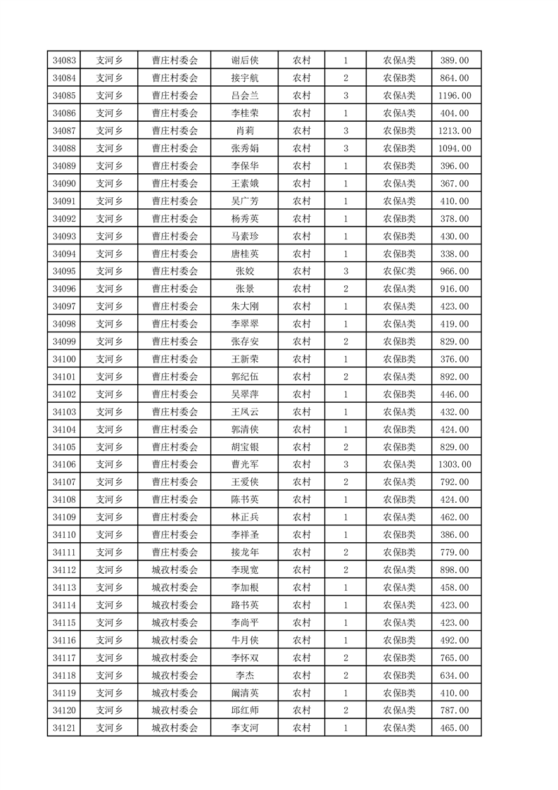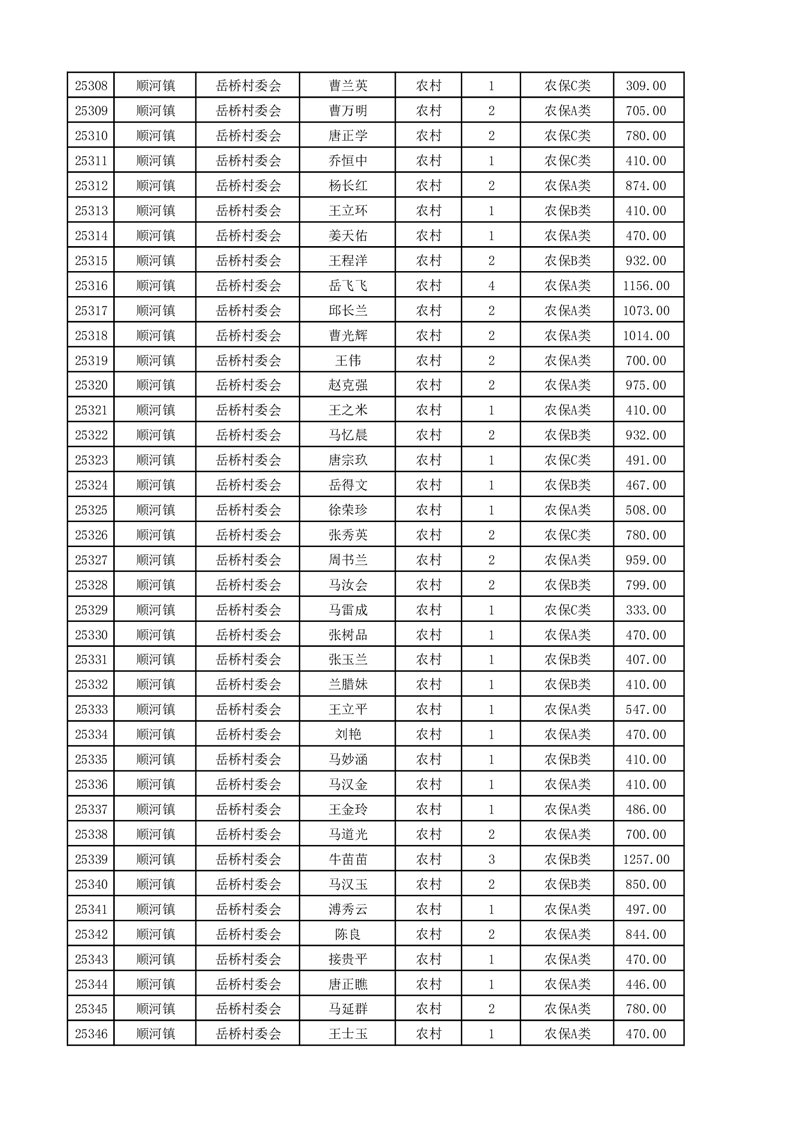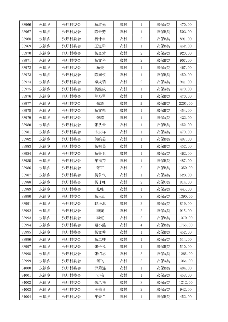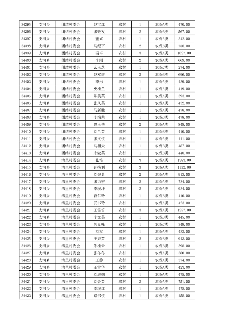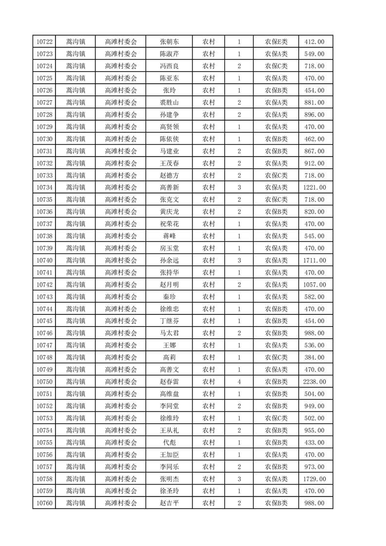 埇桥区2025年4月份农村低保花名册