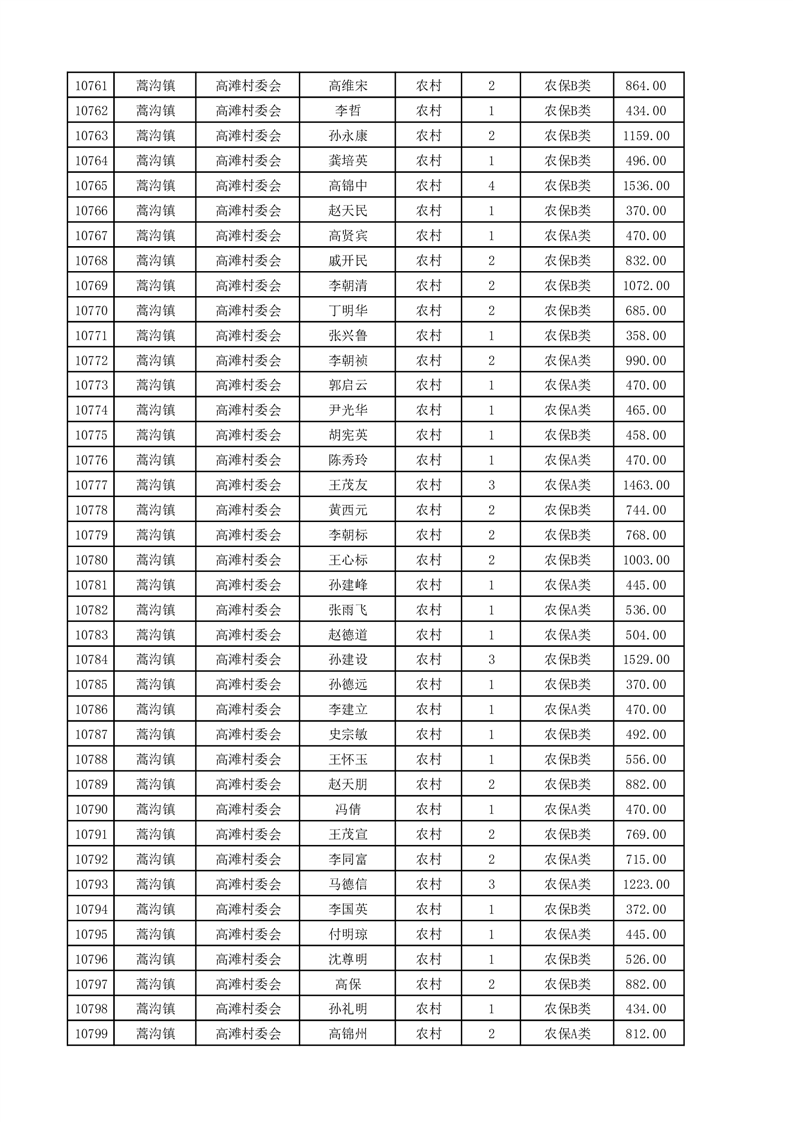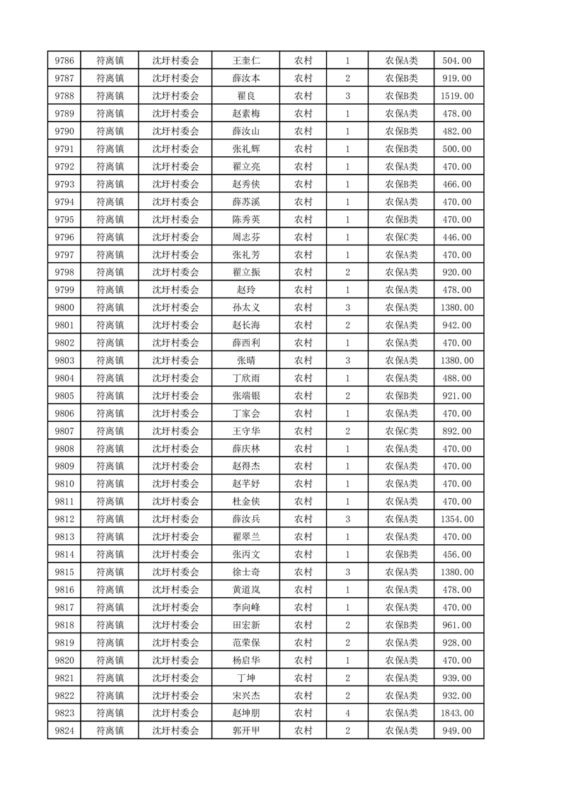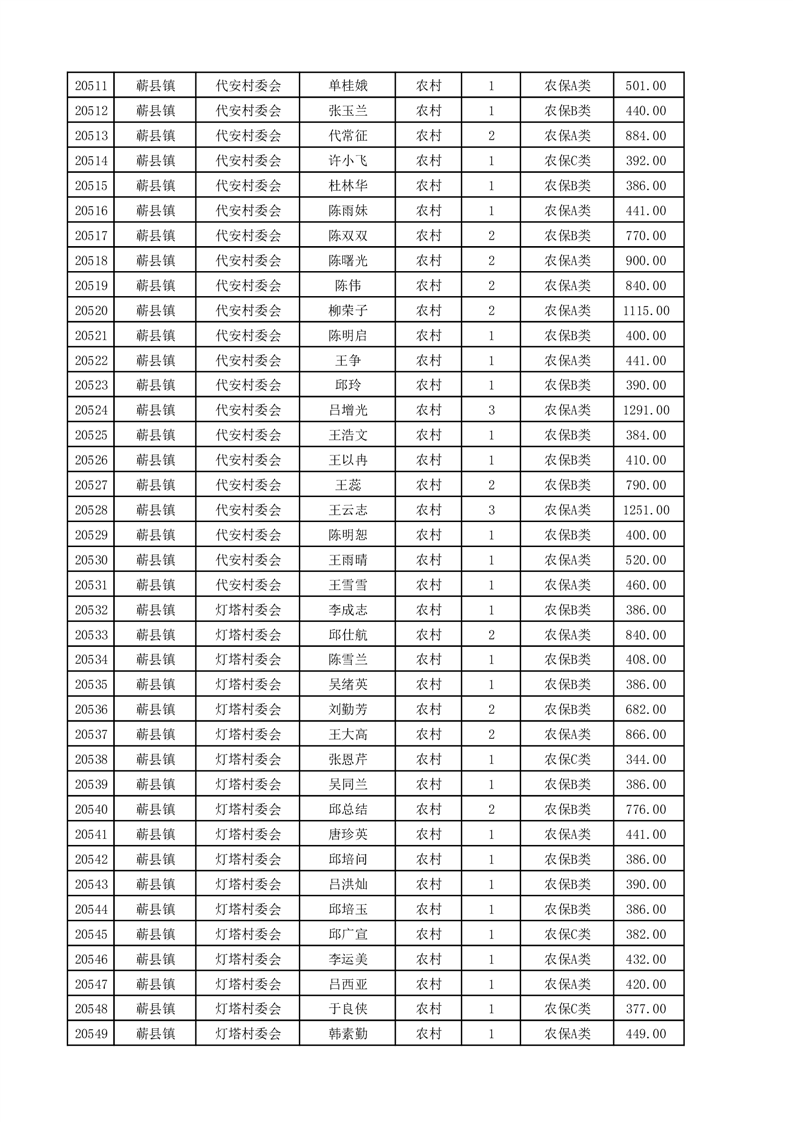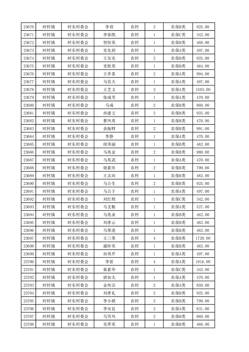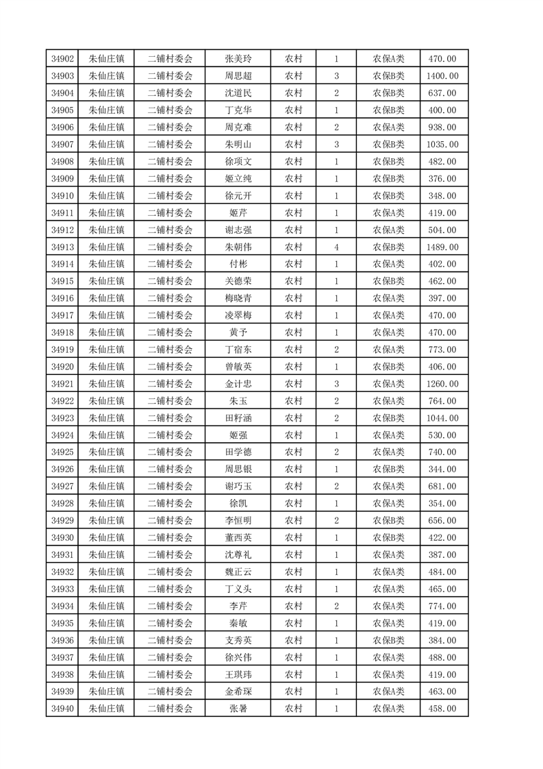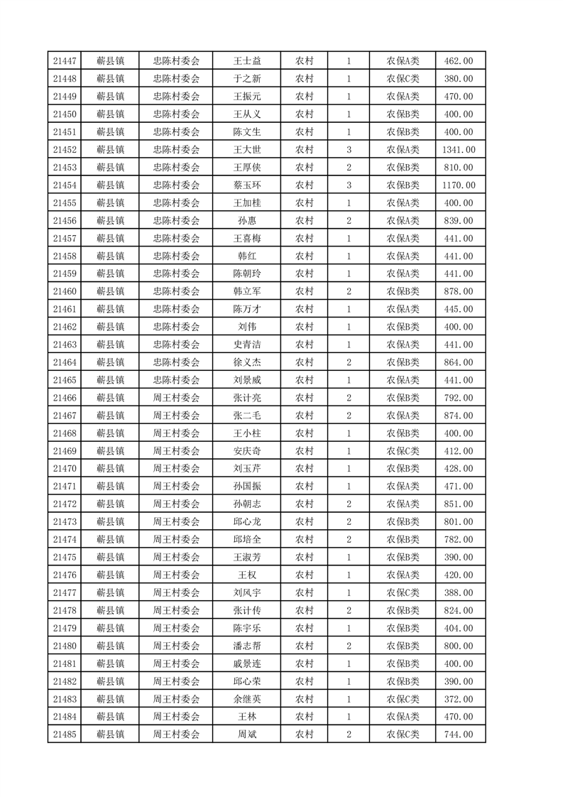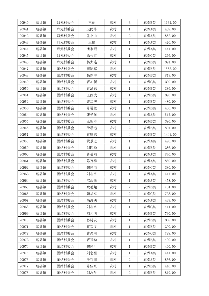 埇桥区2025年4月份农村低保花名册