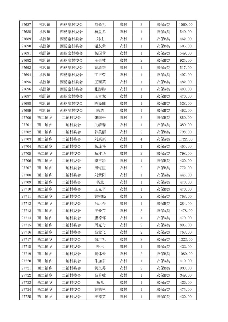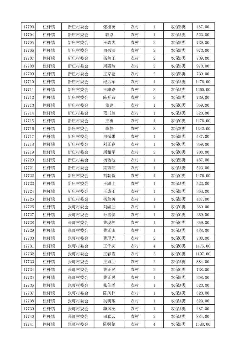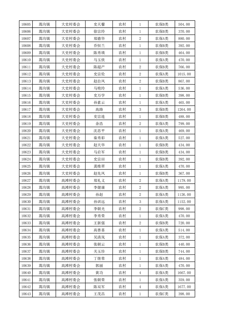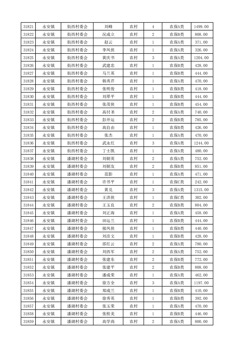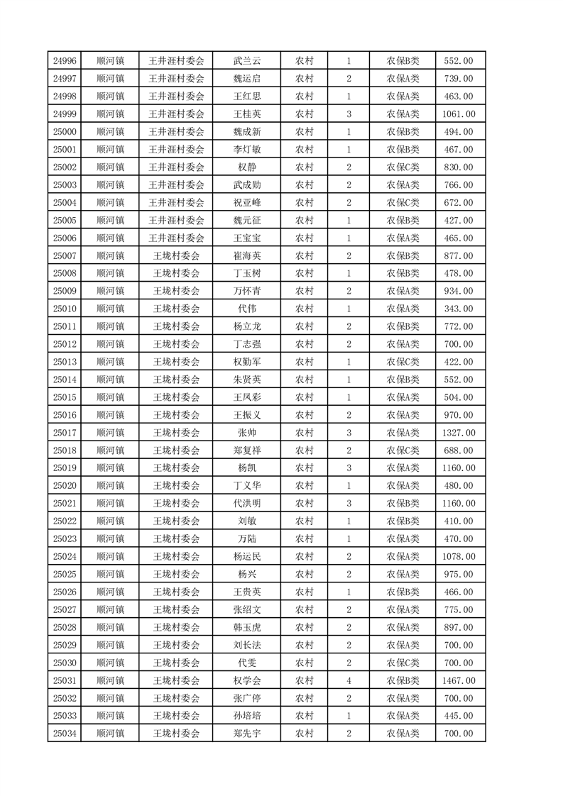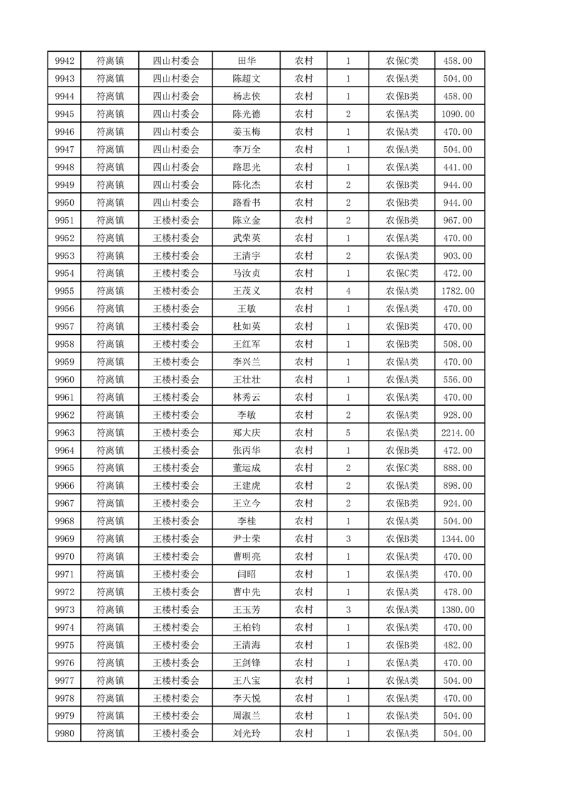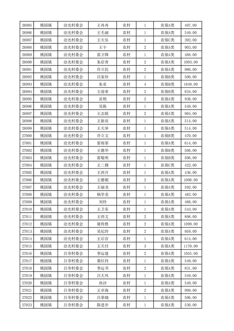 埇桥区2025年4月份农村低保花名册