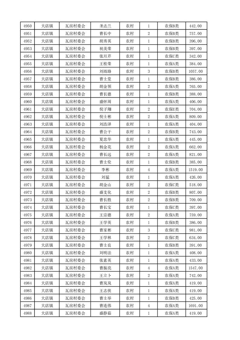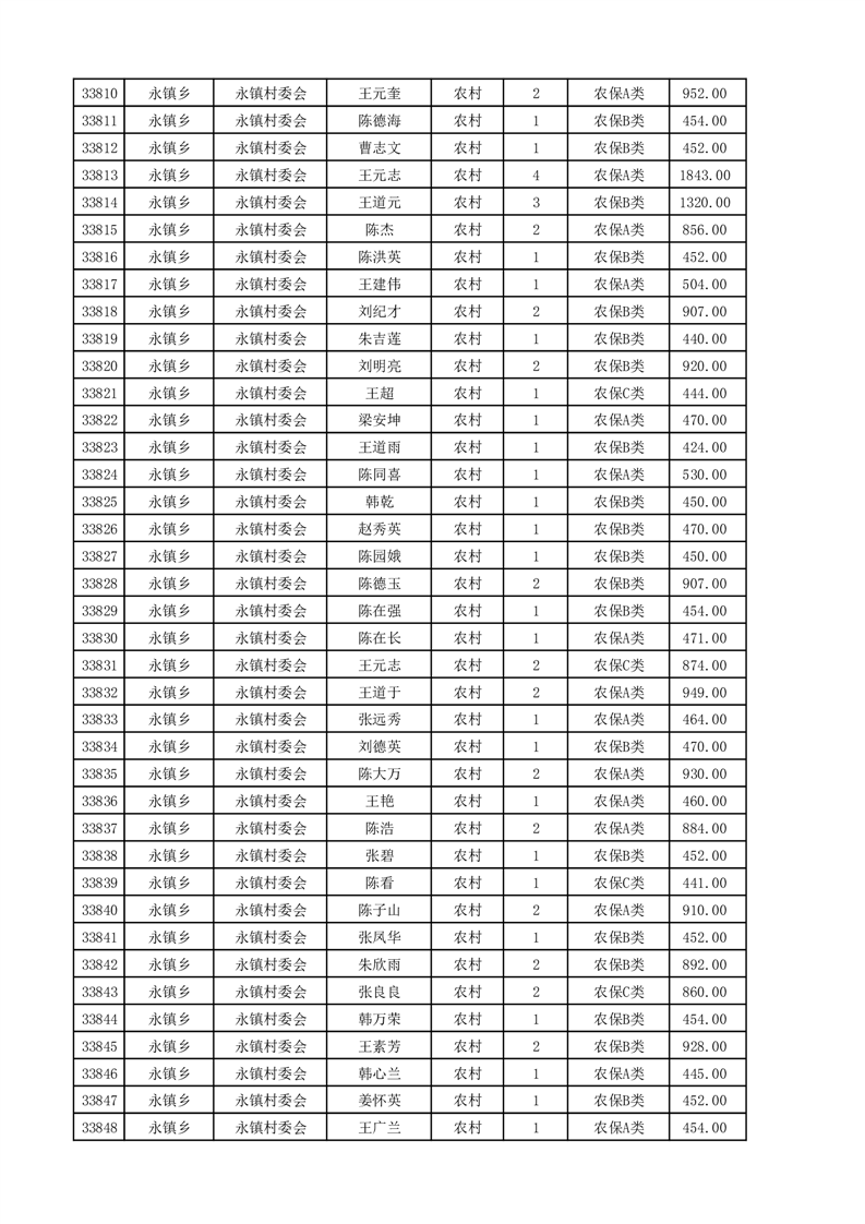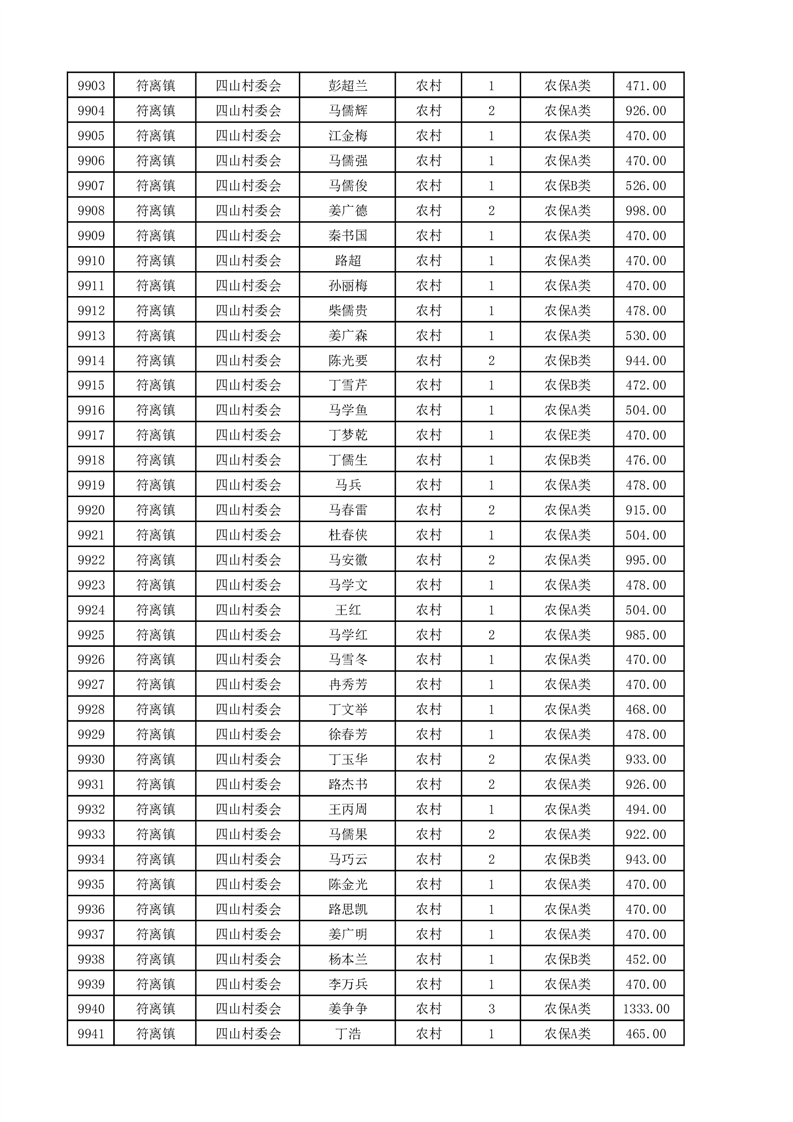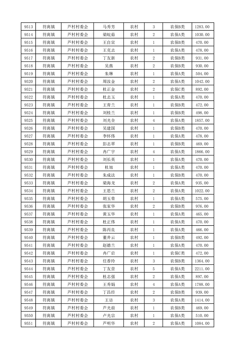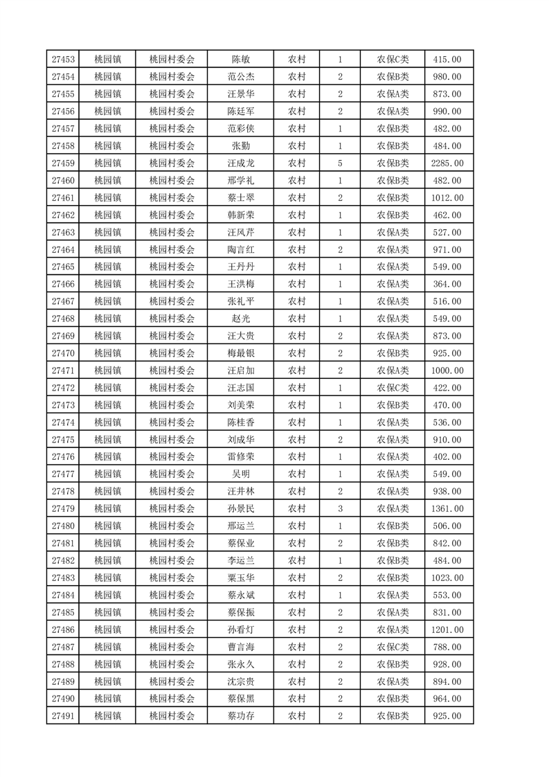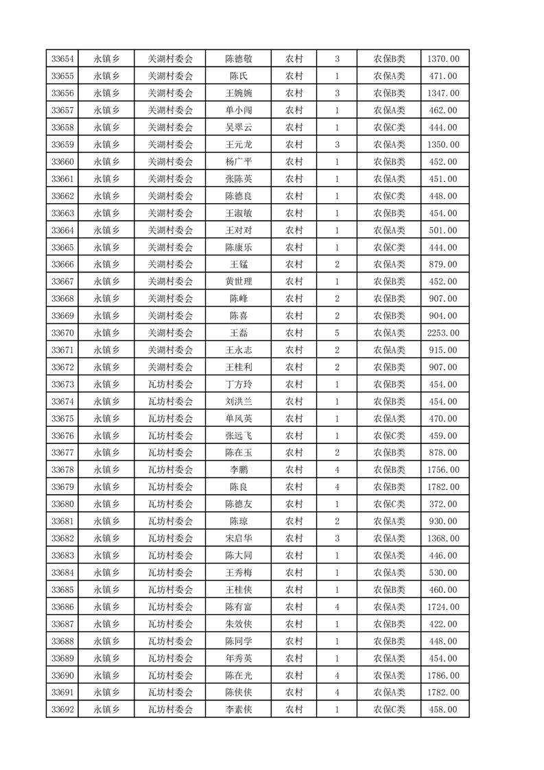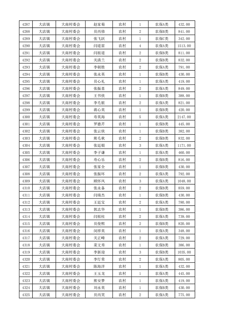 埇桥区2025年4月份农村低保花名册