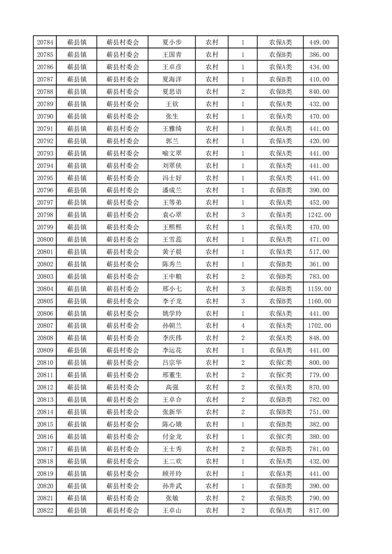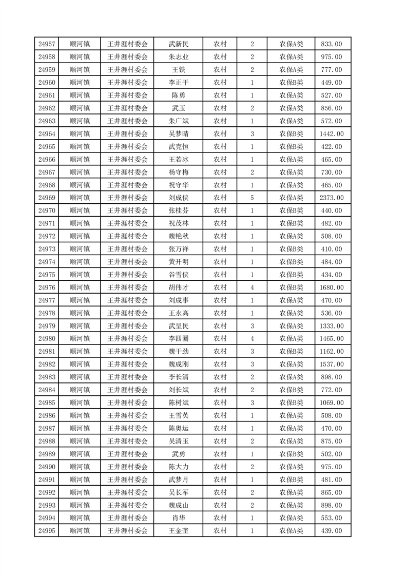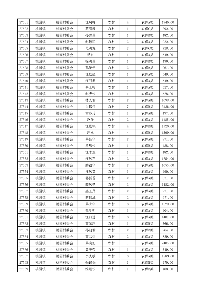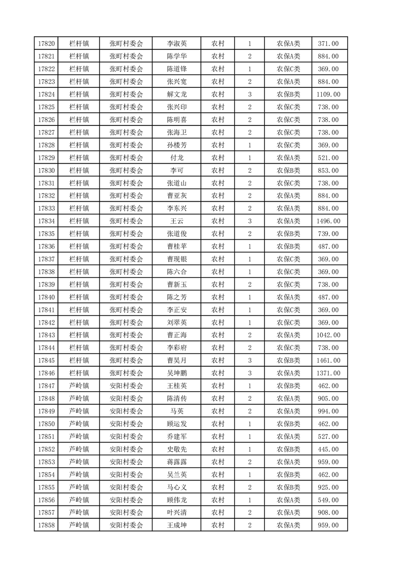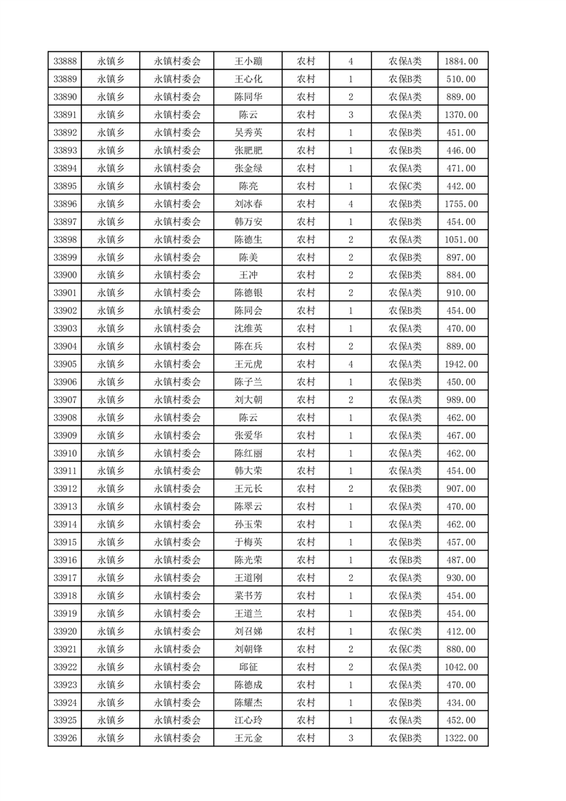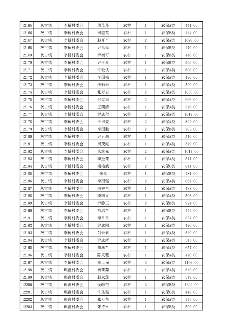 埇桥区2025年4月份农村低保花名册