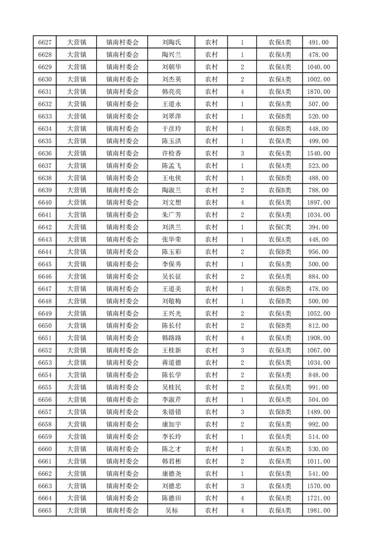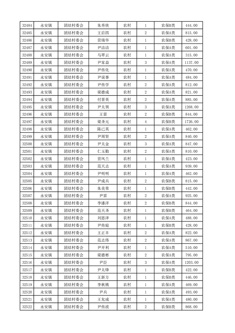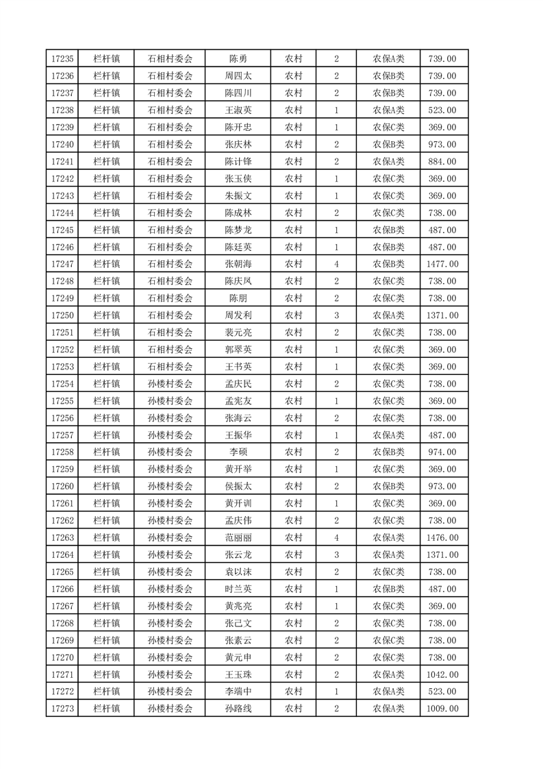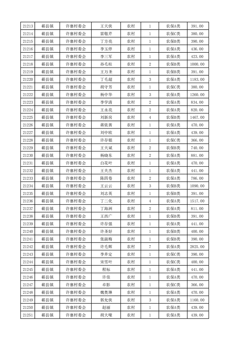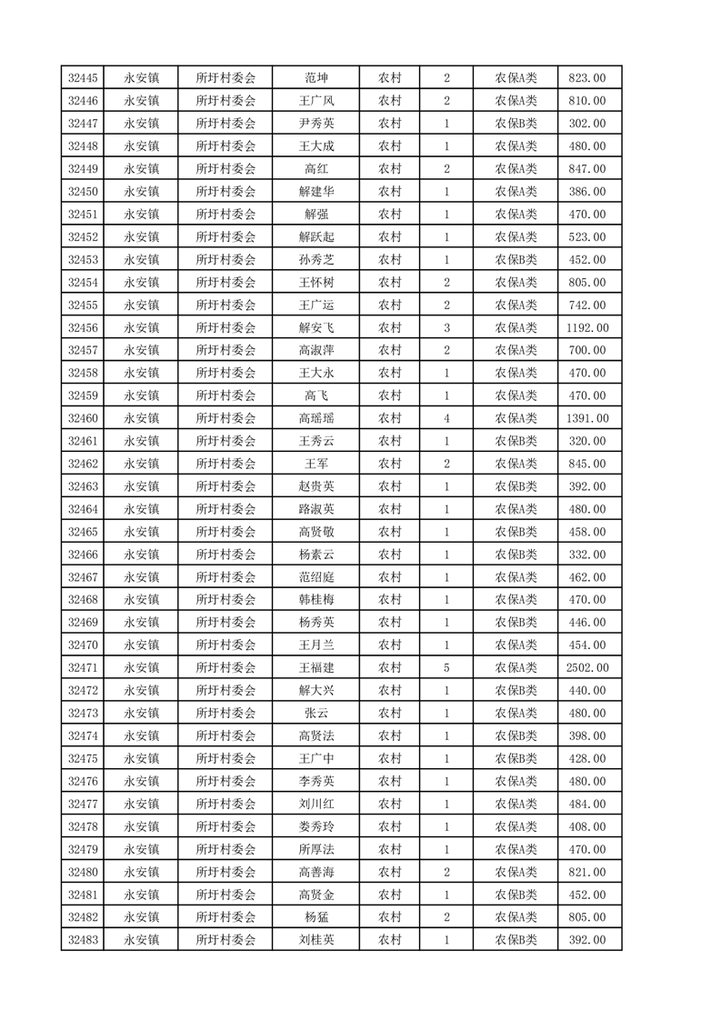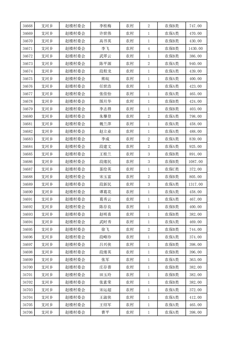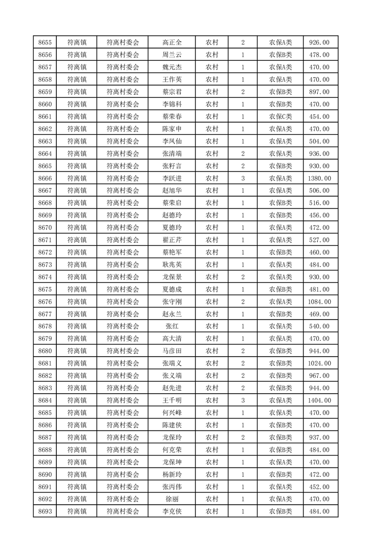 埇桥区2025年4月份农村低保花名册