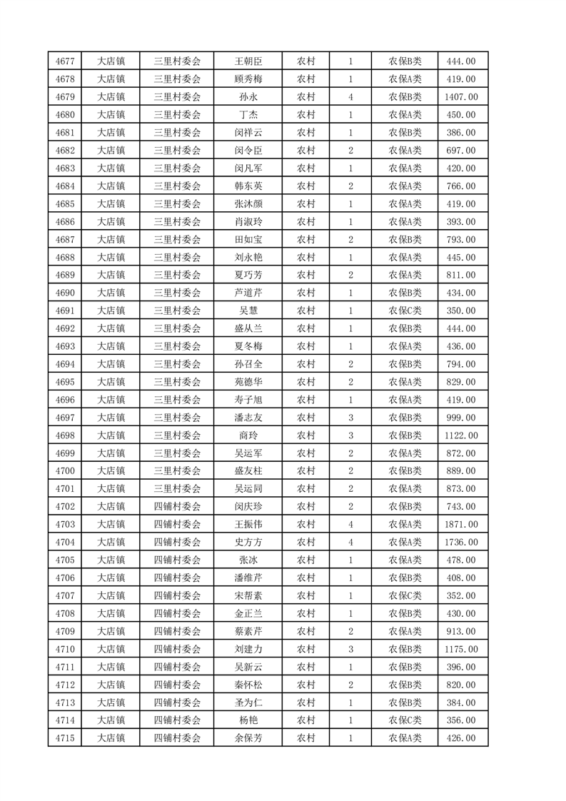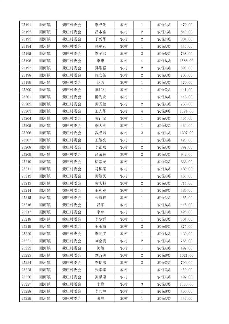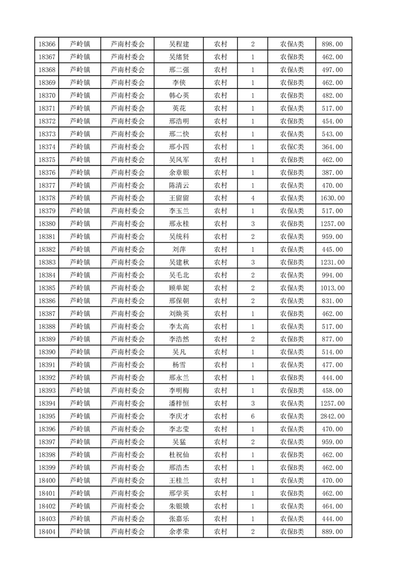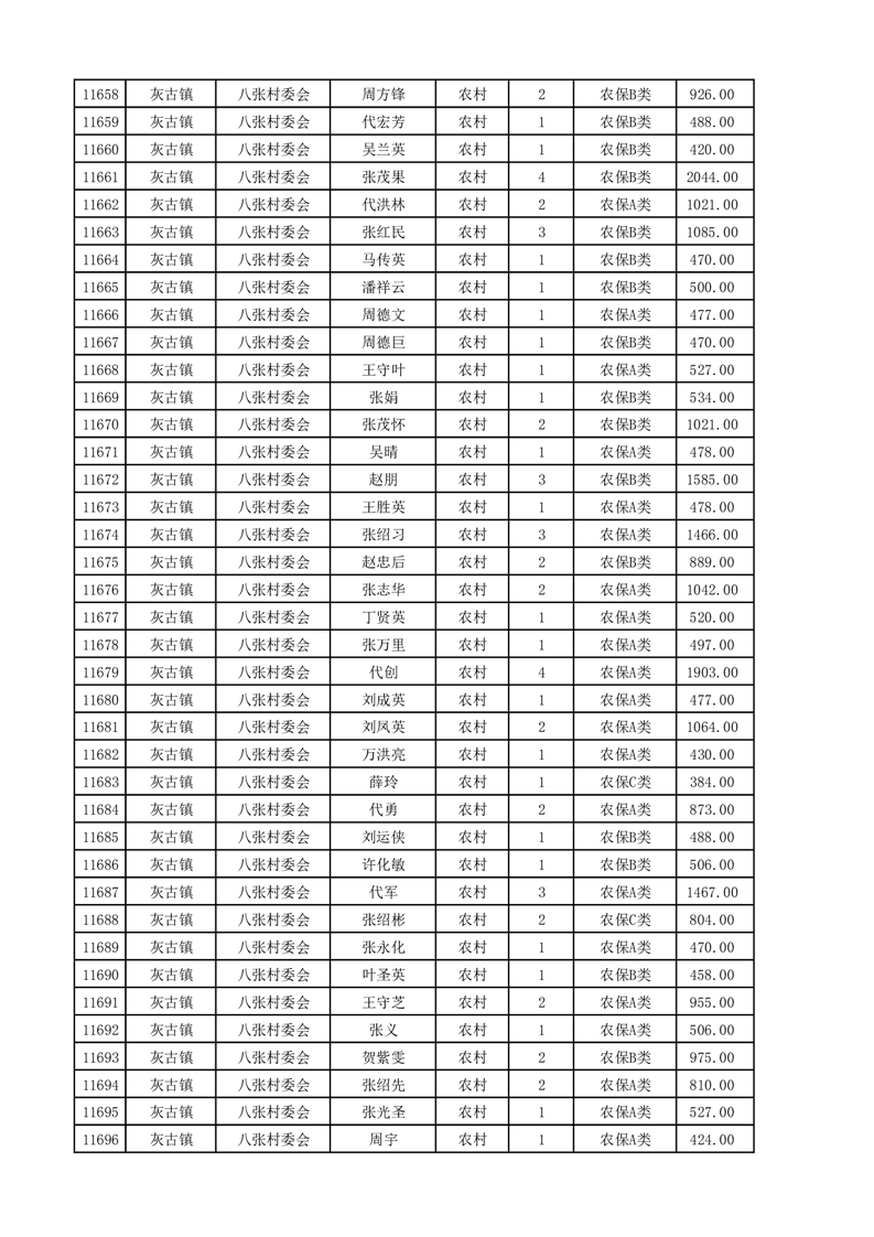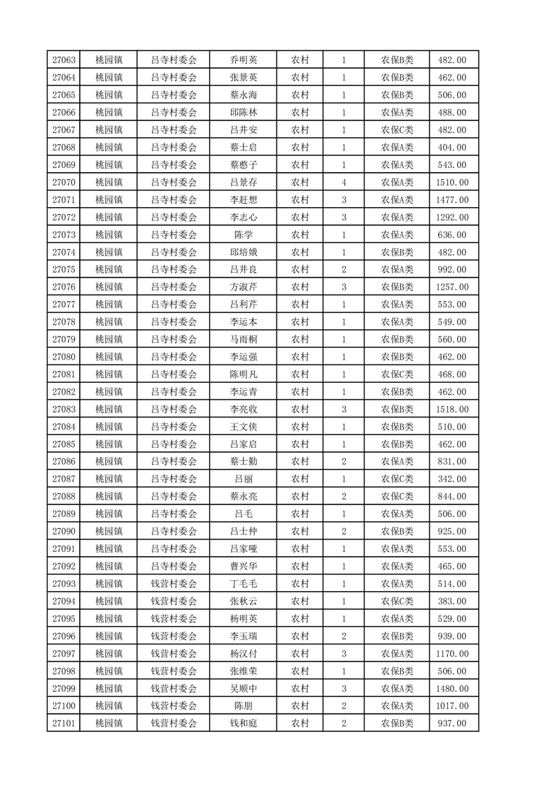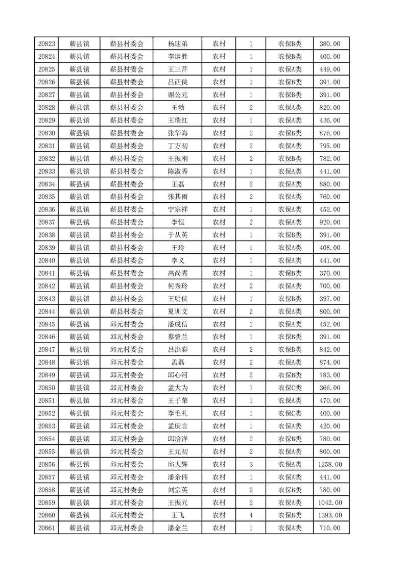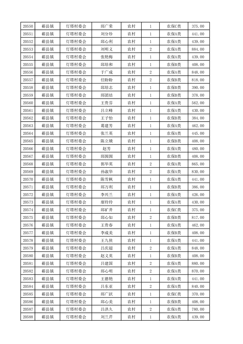 埇桥区2025年4月份农村低保花名册