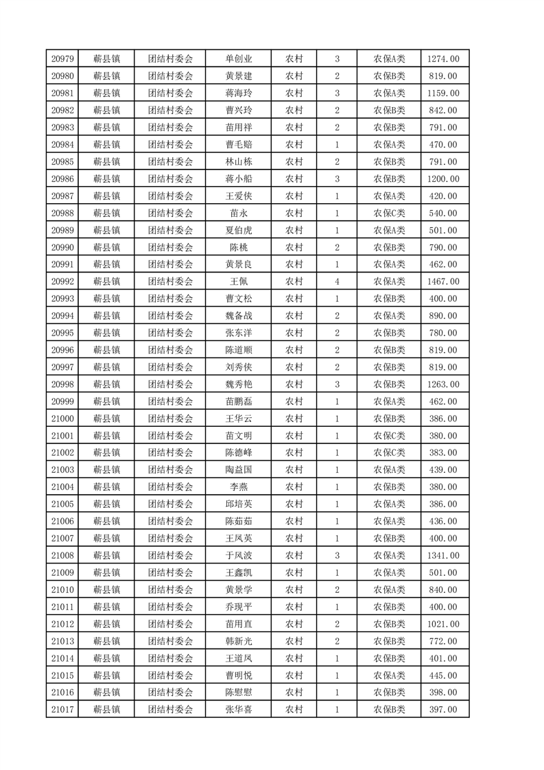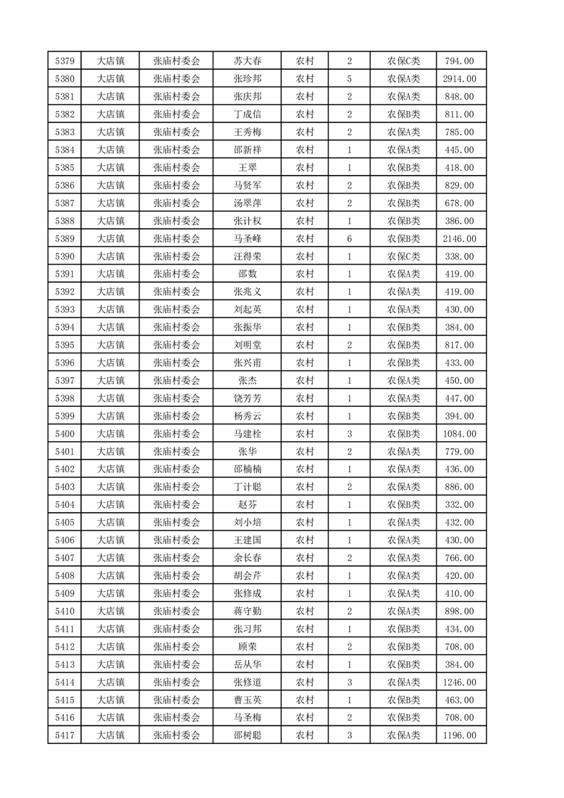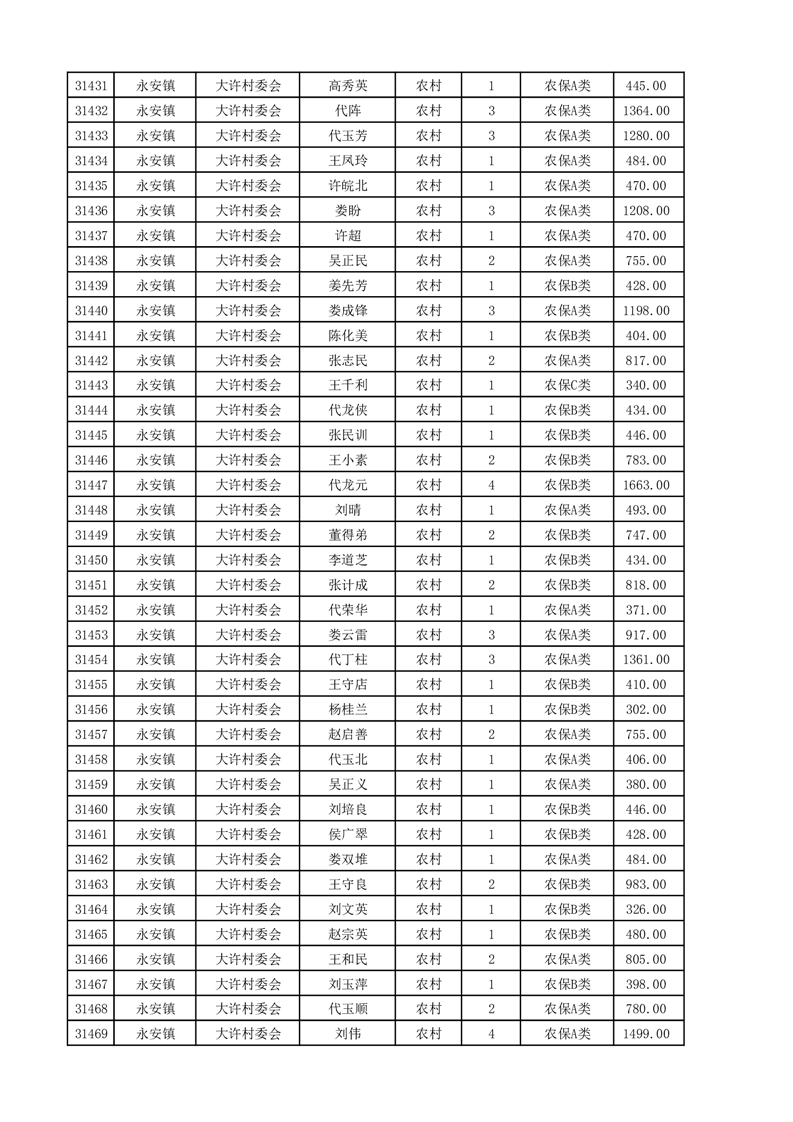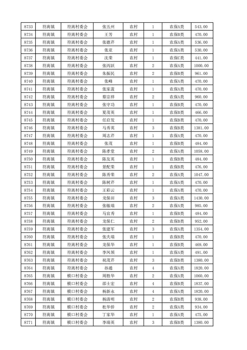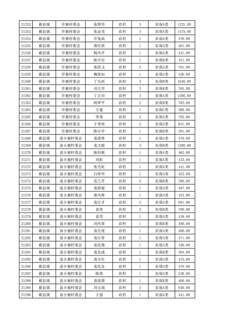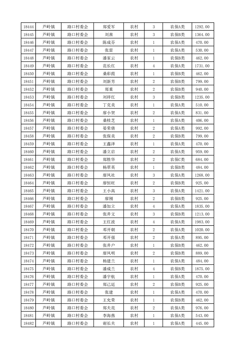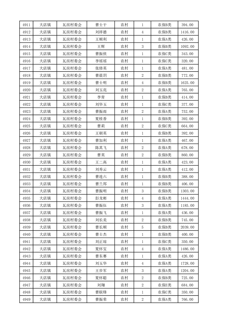 埇桥区2025年4月份农村低保花名册