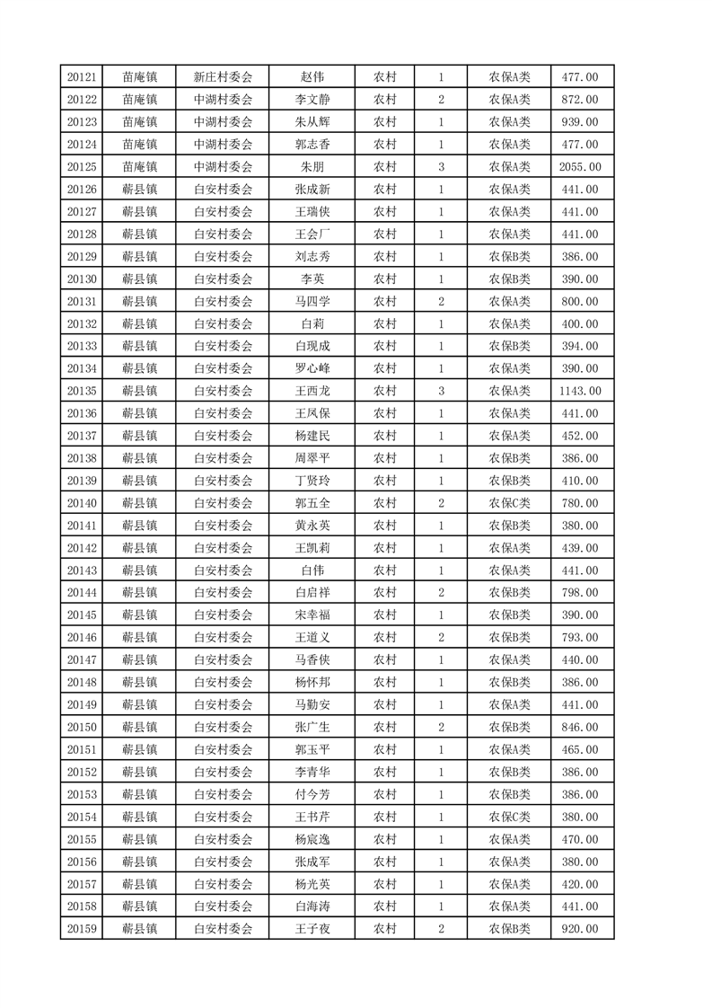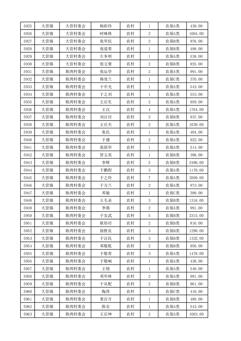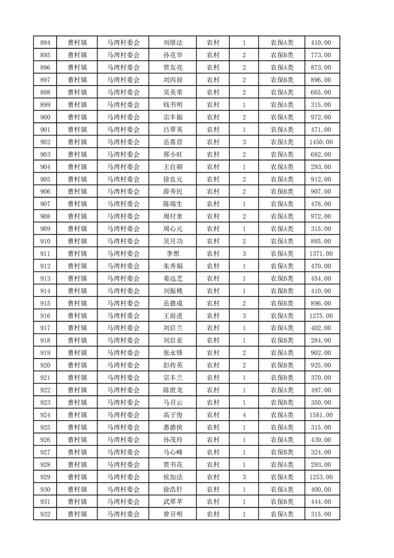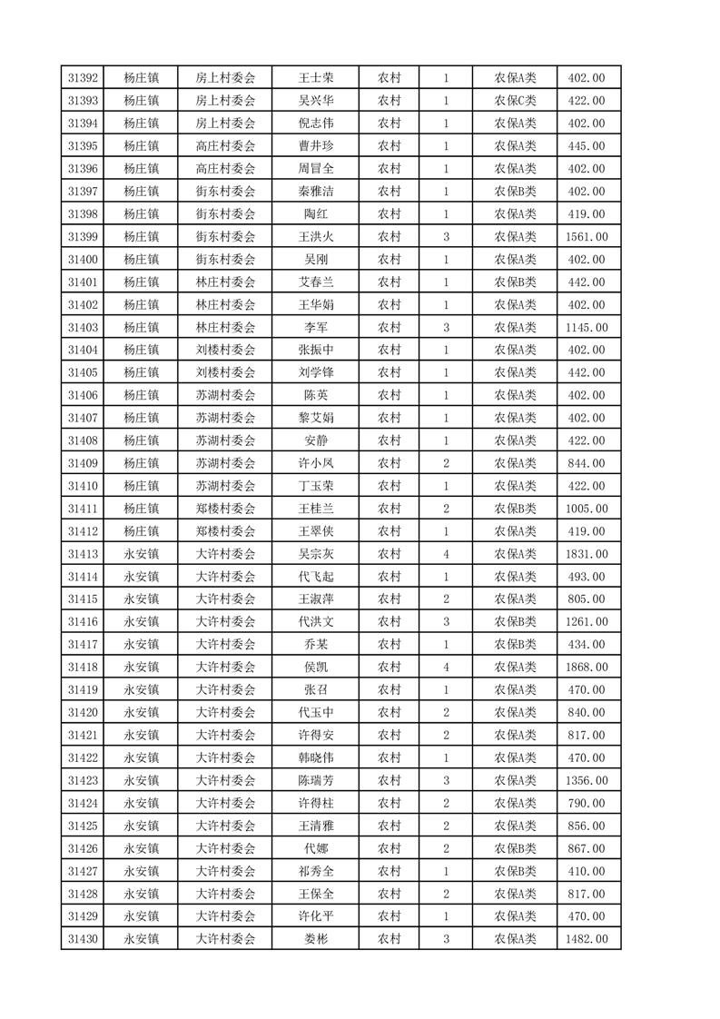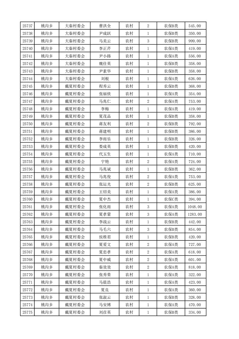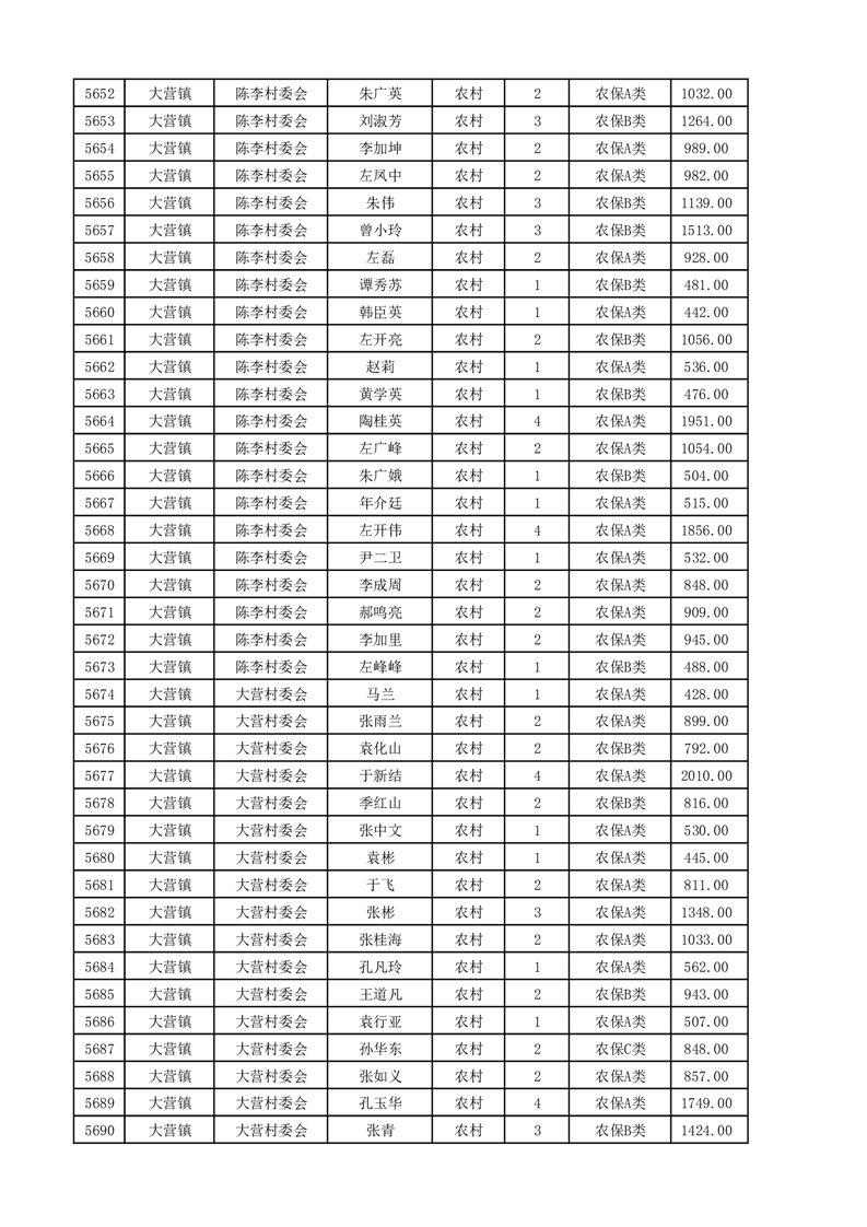 埇桥区2025年4月份农村低保花名册