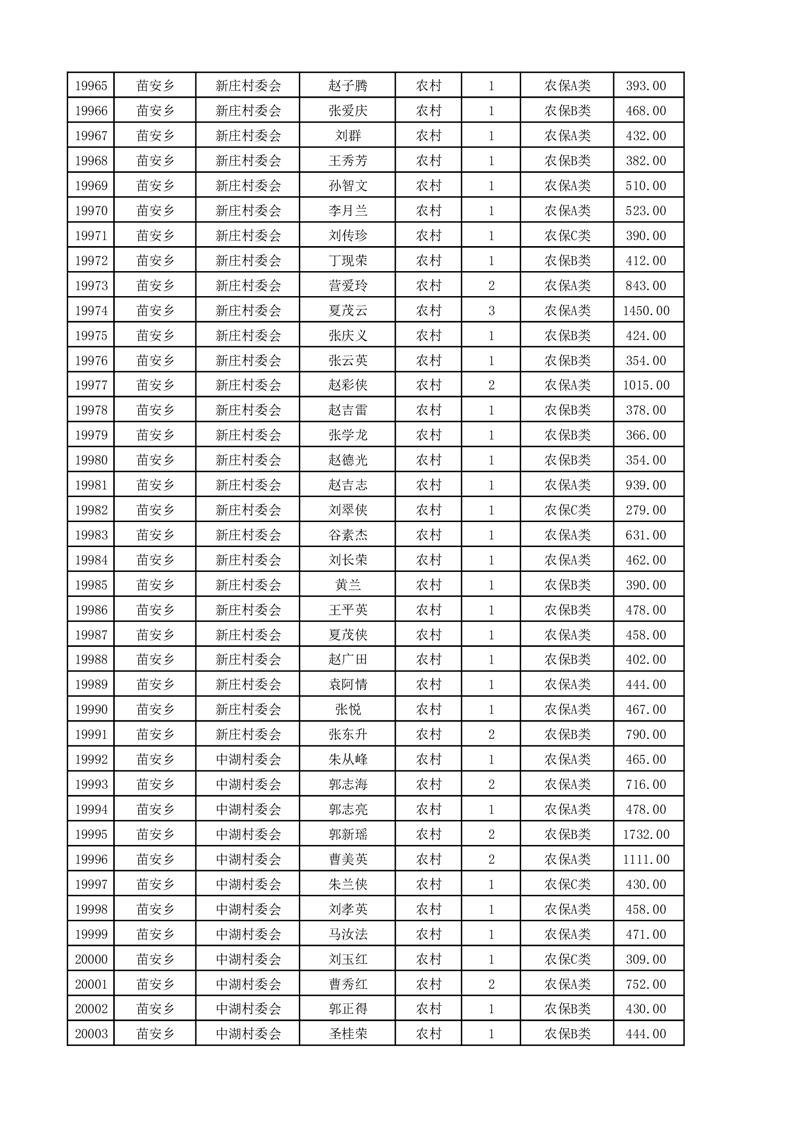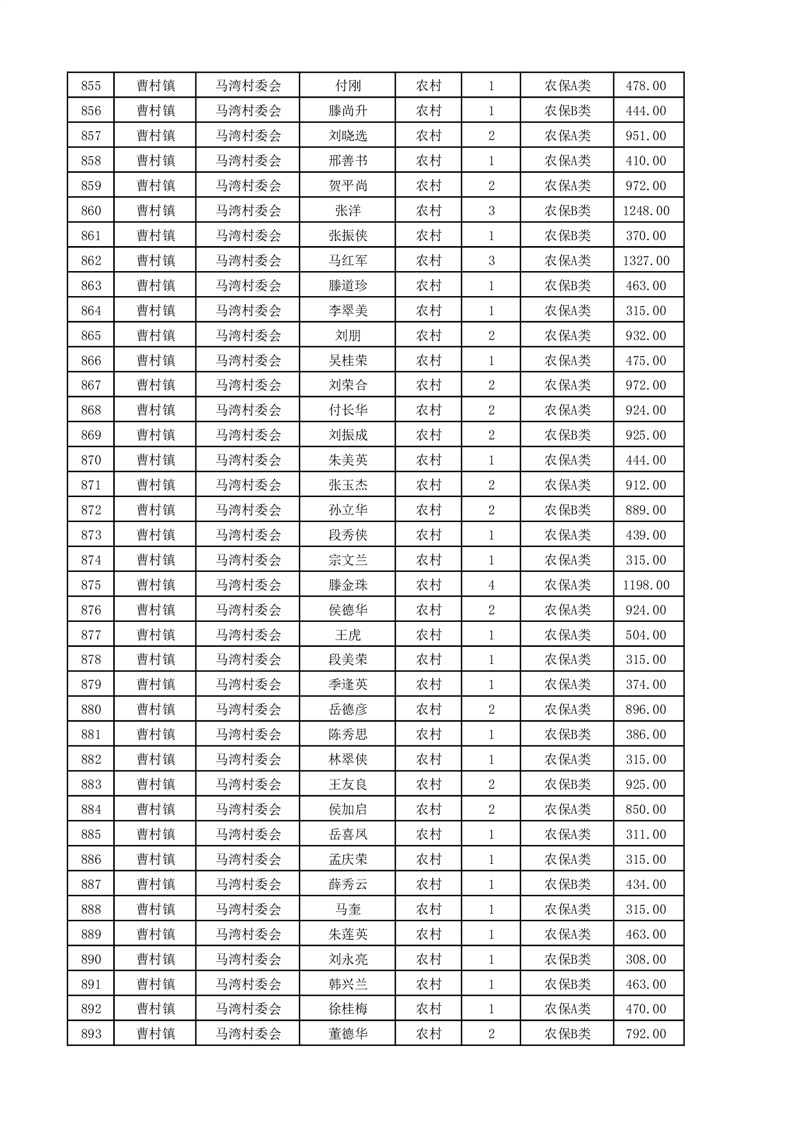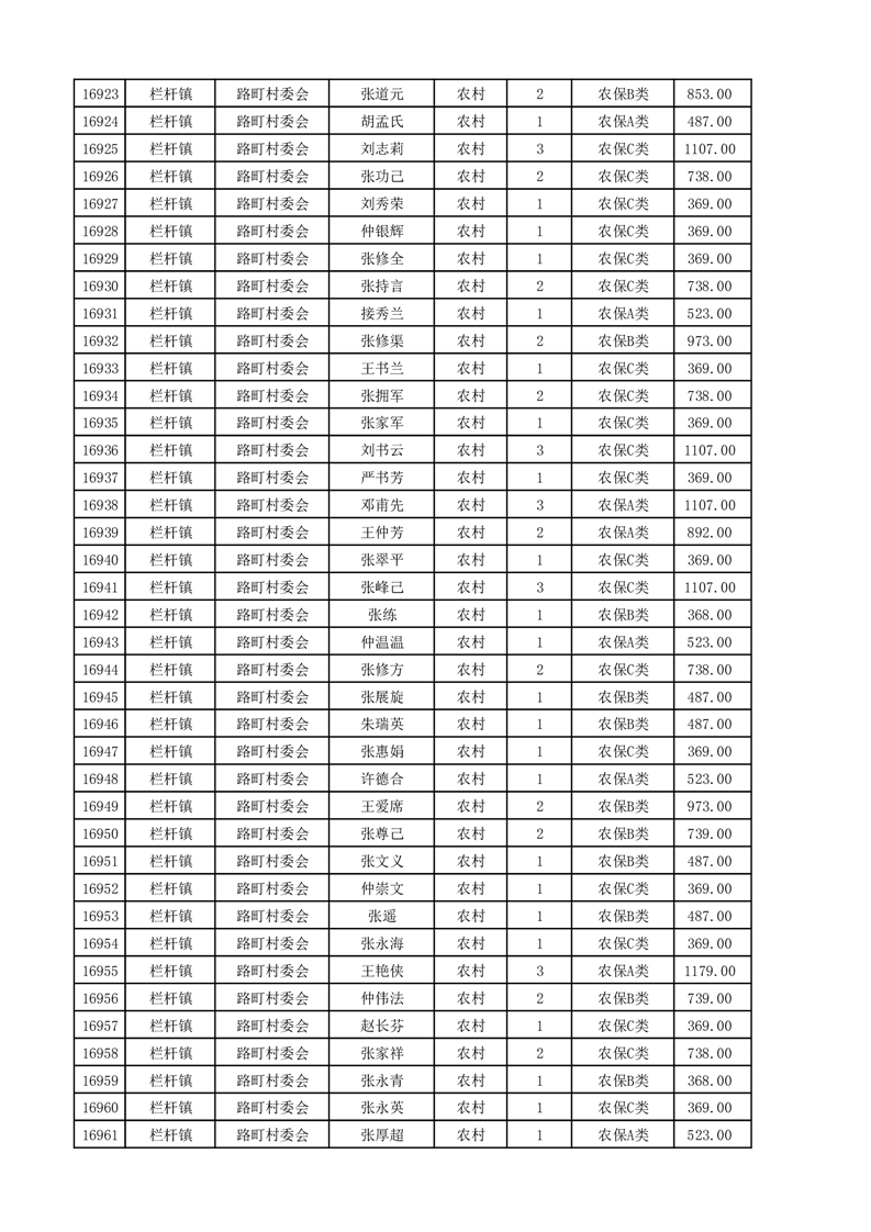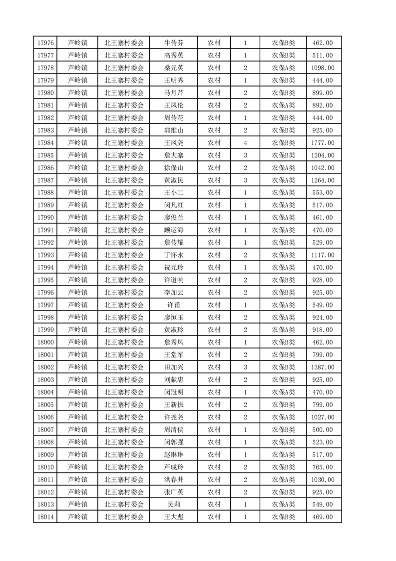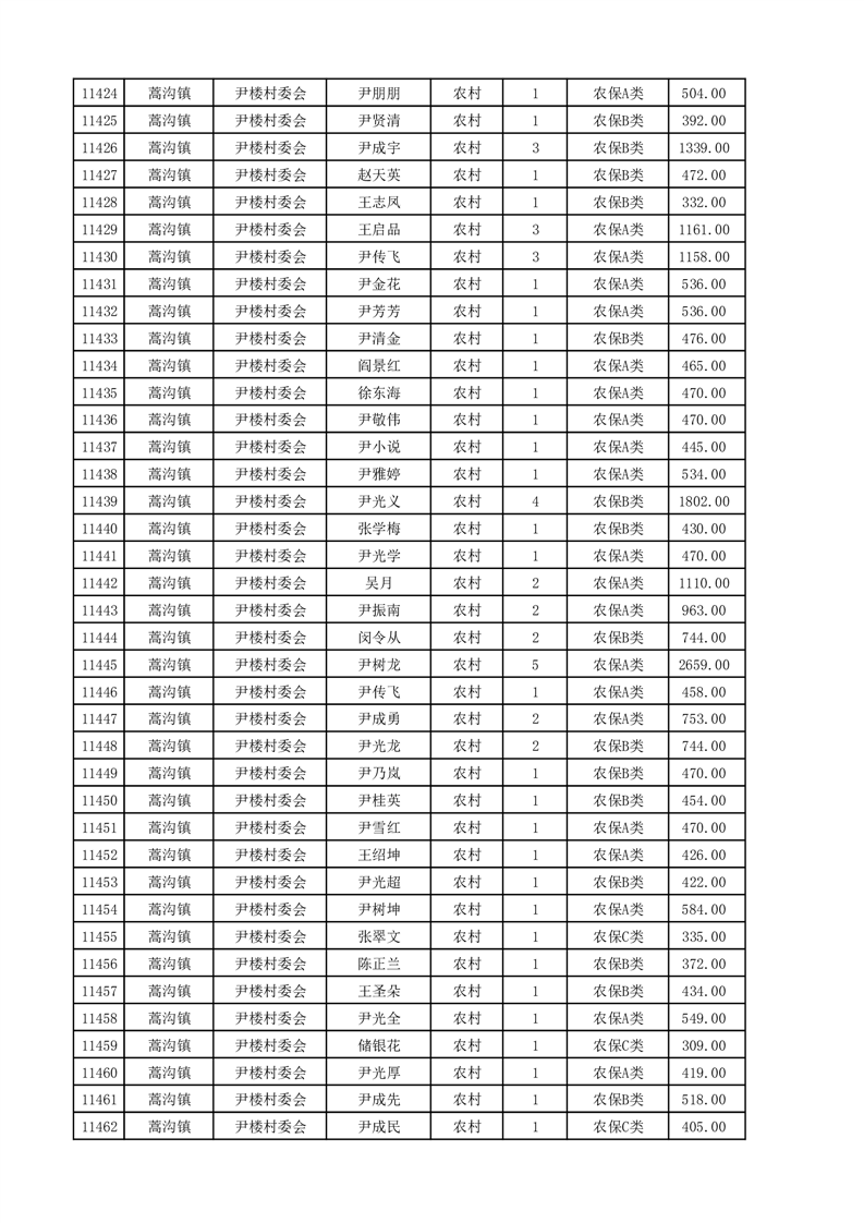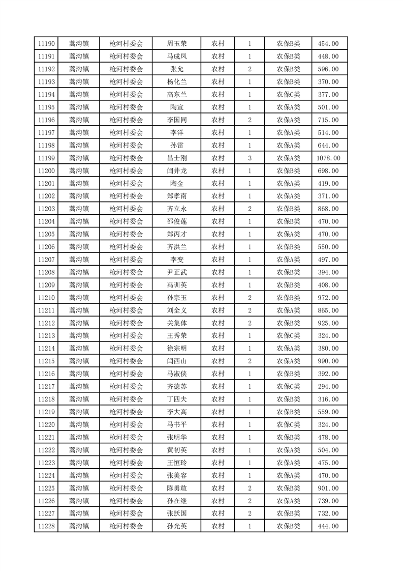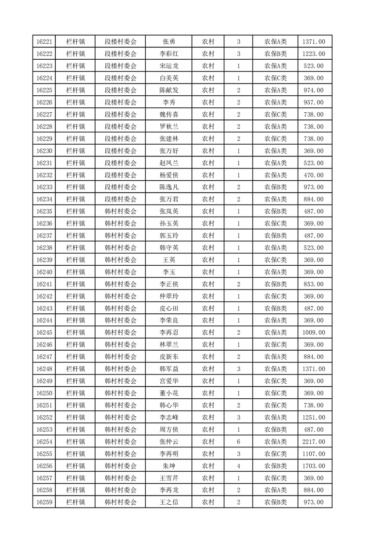 埇桥区2025年4月份农村低保花名册