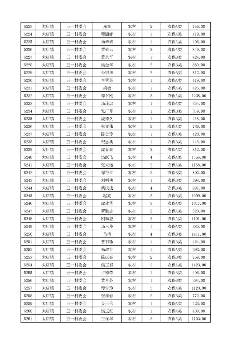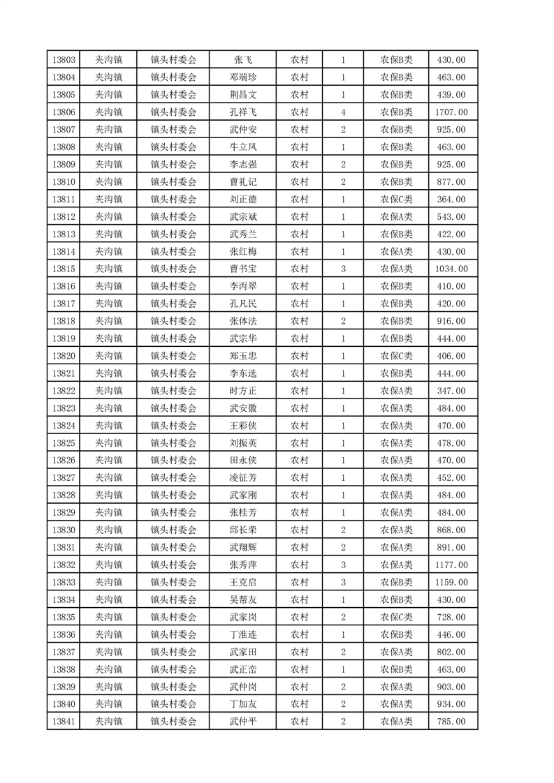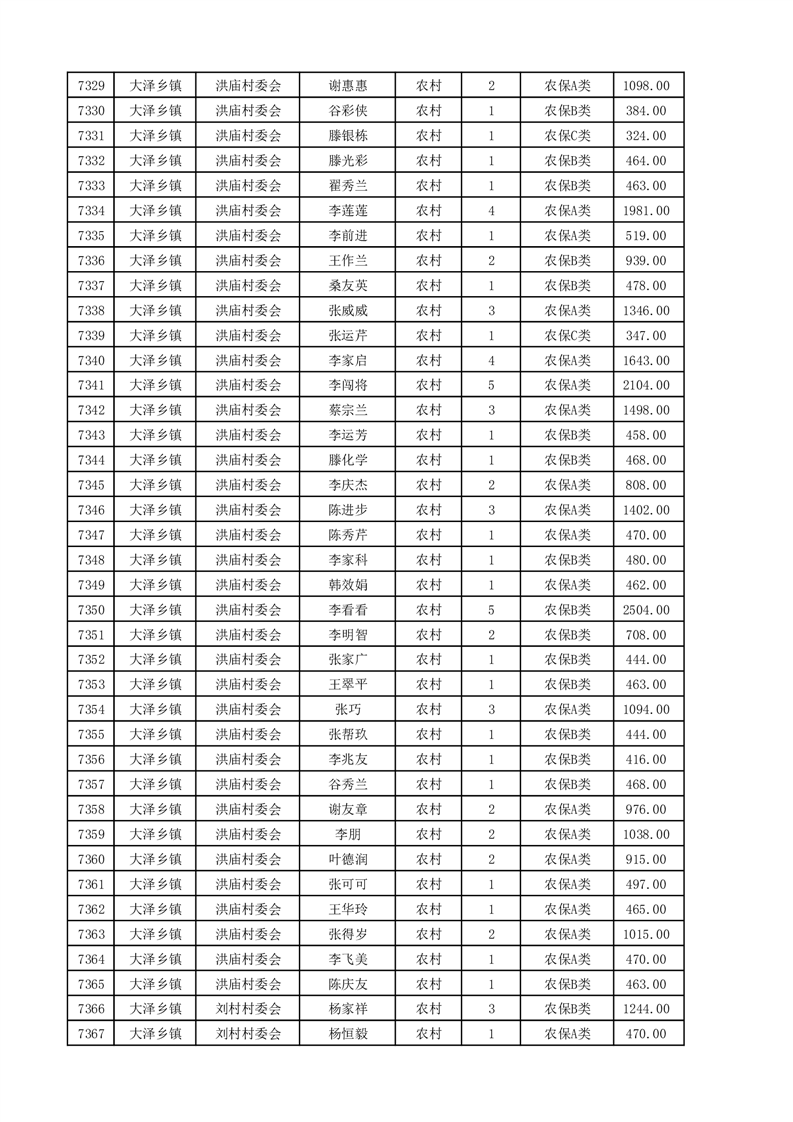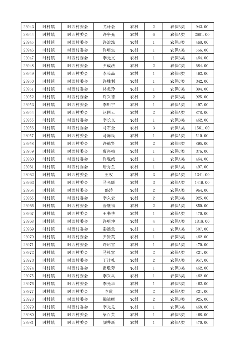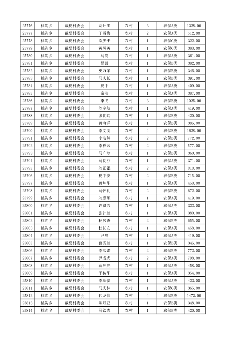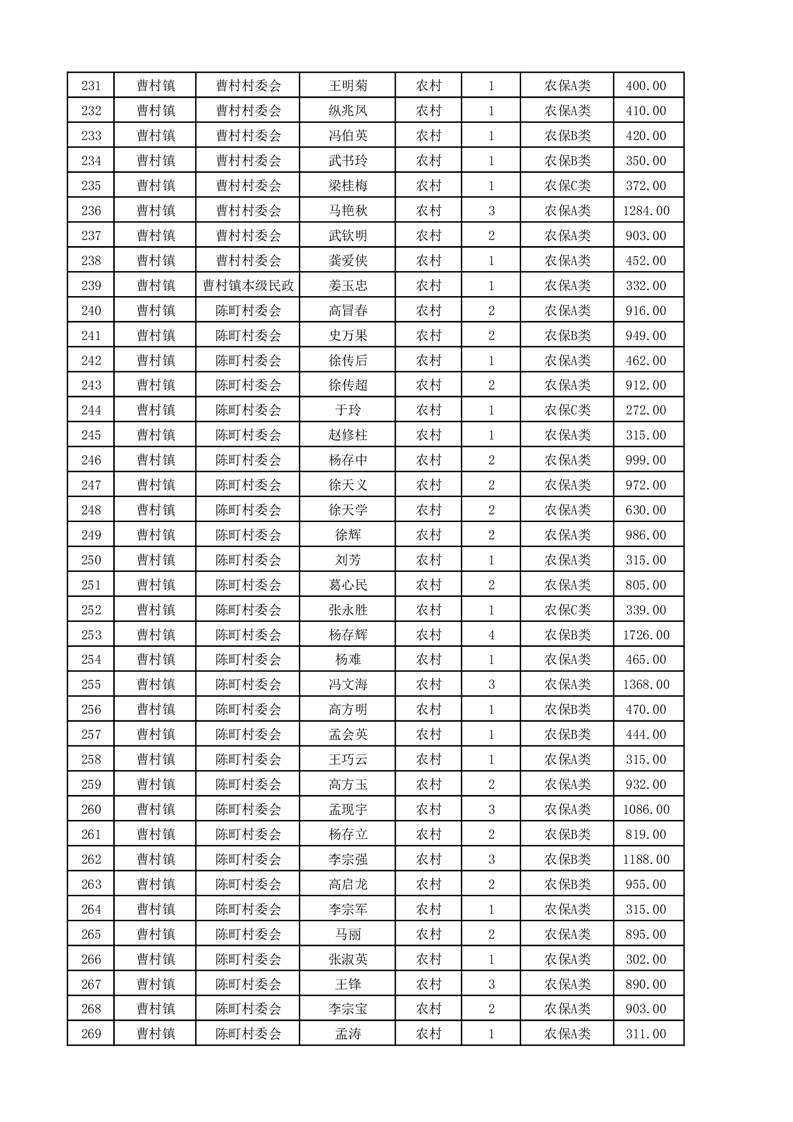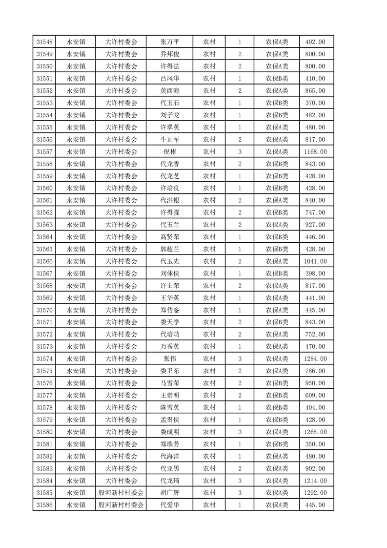埇桥区2025年4月份农村低保花名册