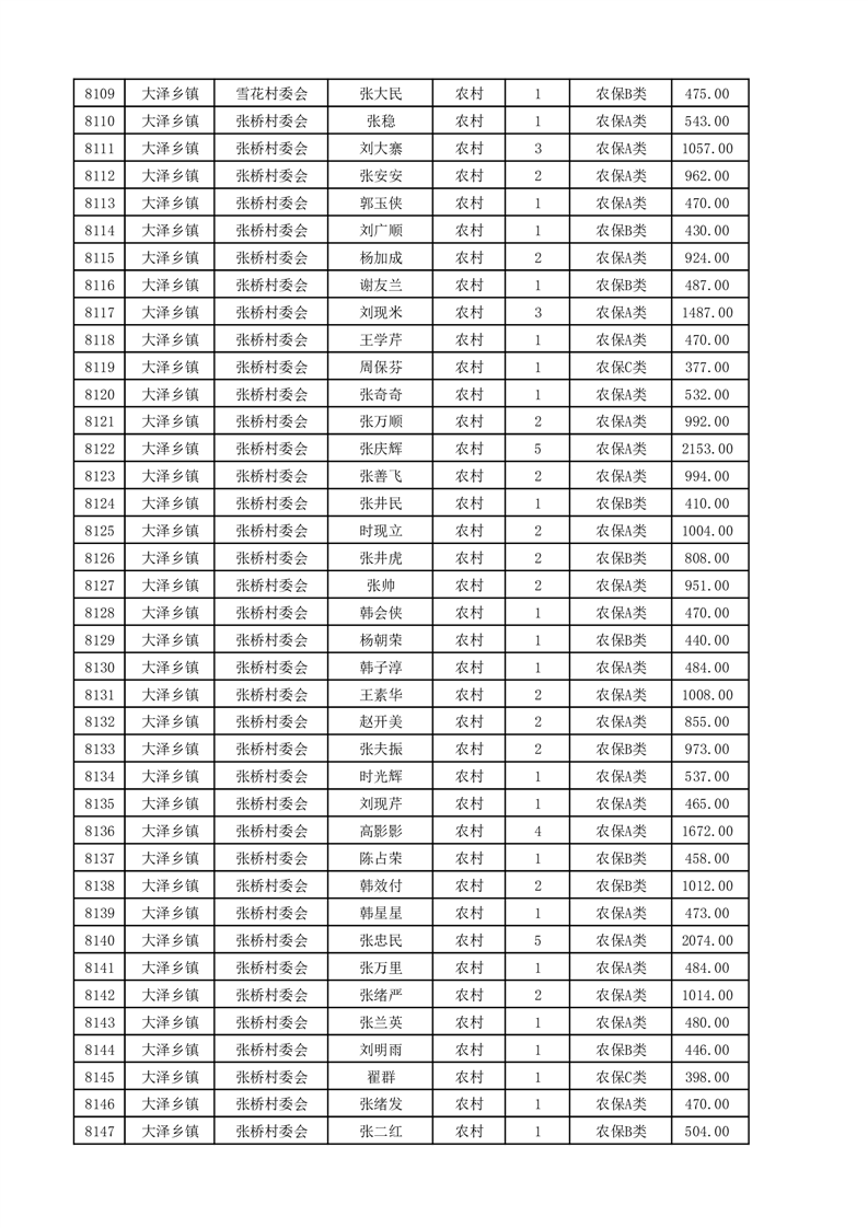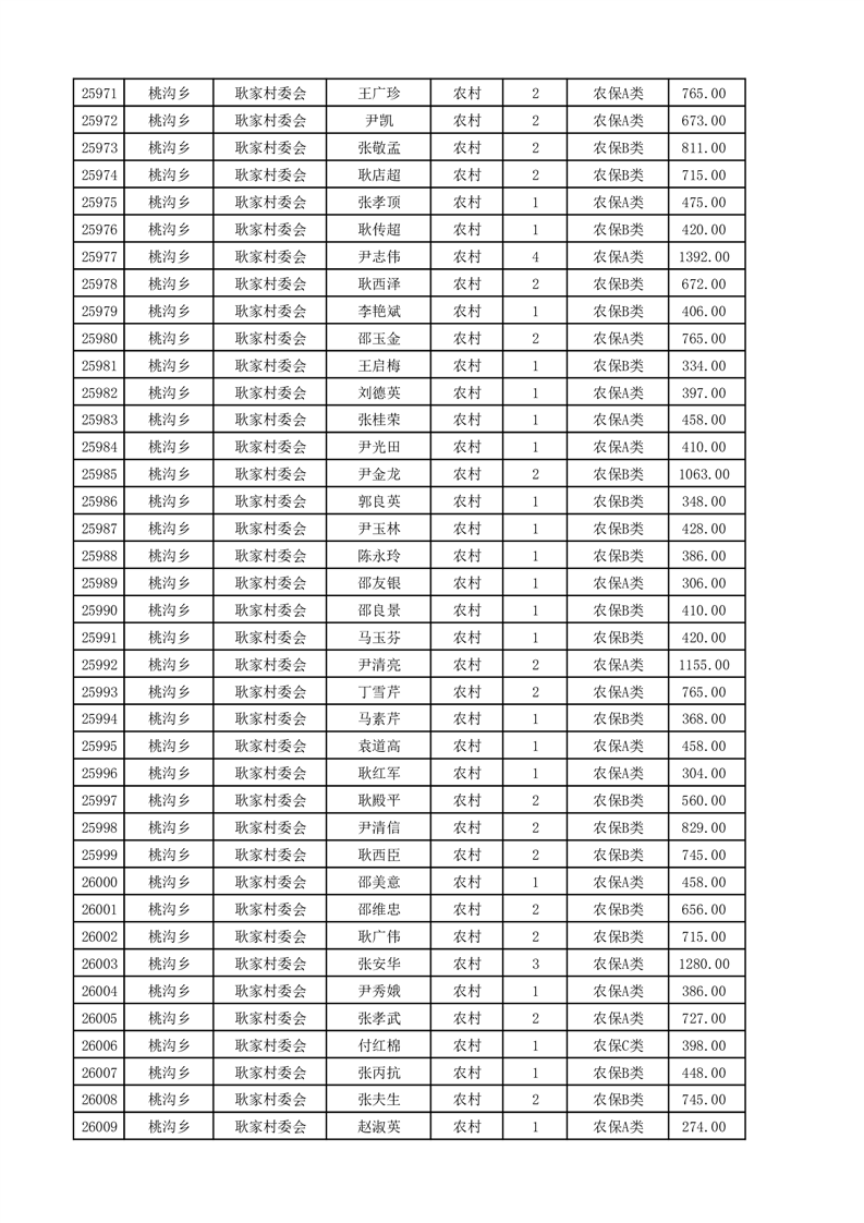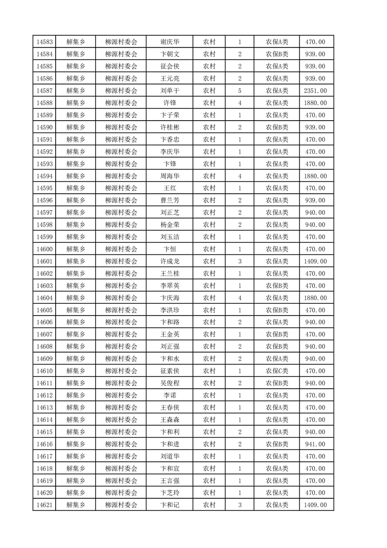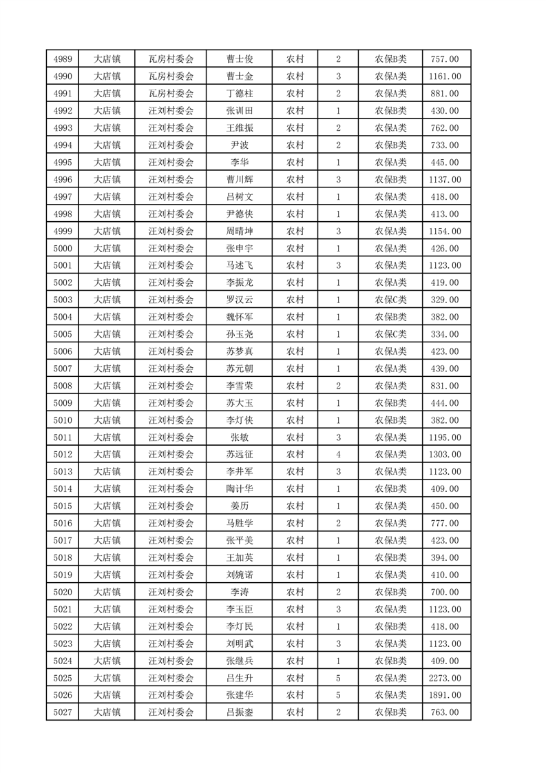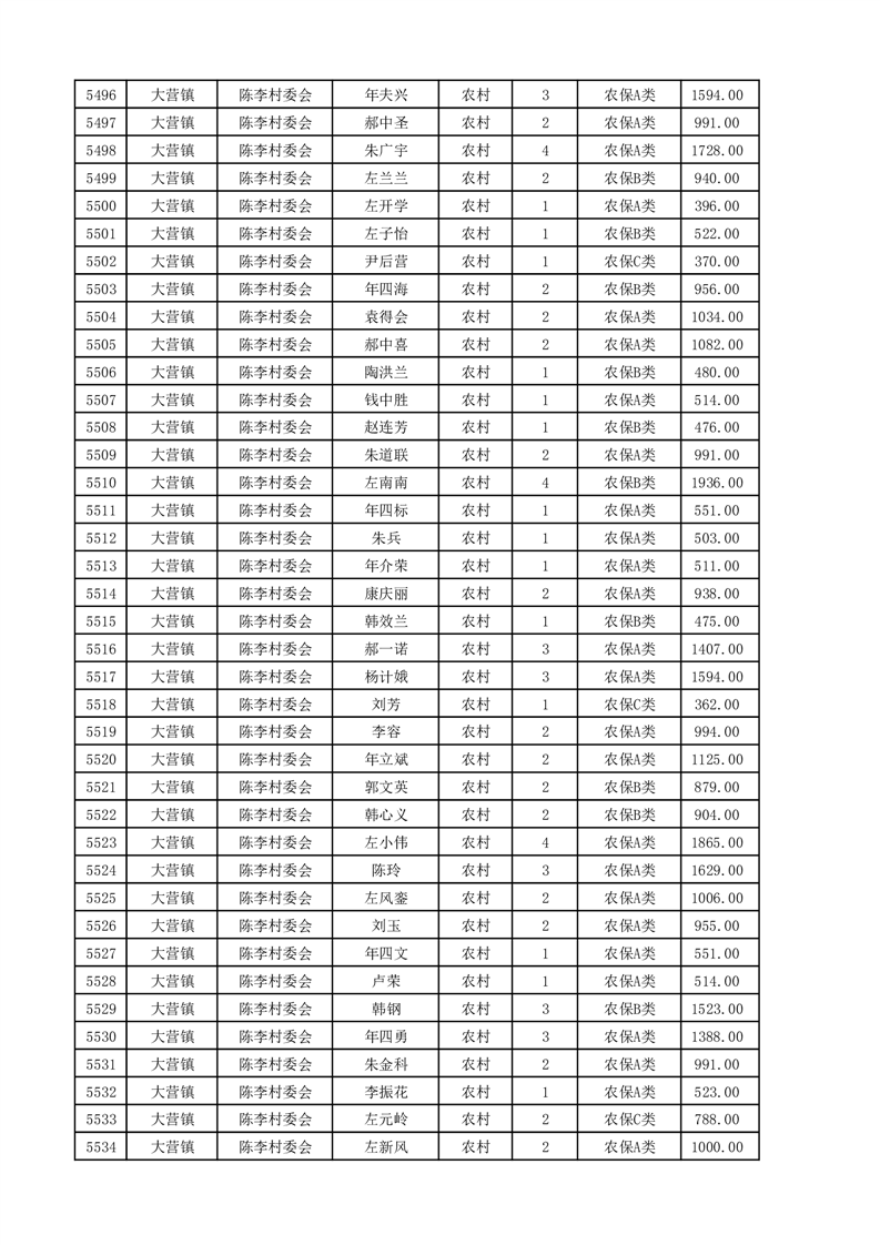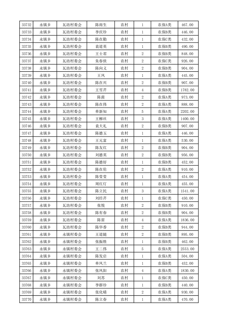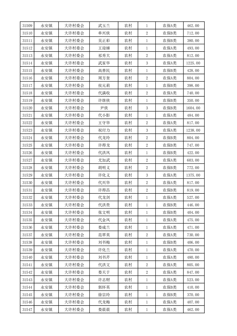 埇桥区2025年4月份农村低保花名册