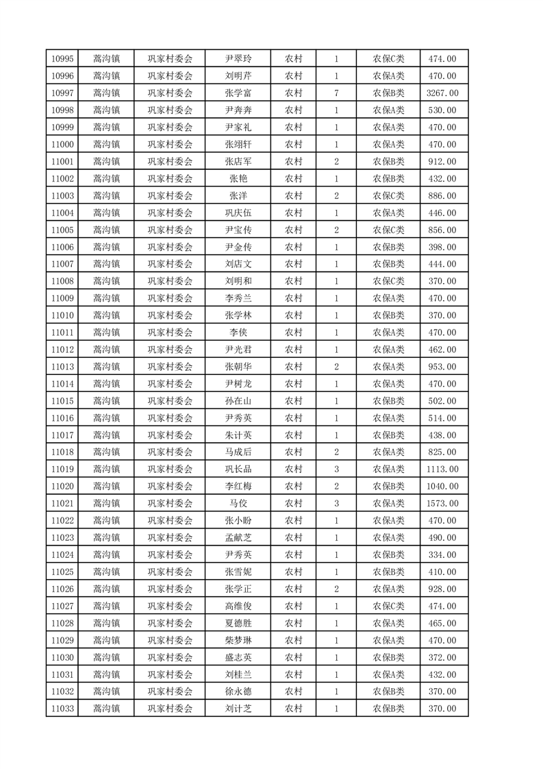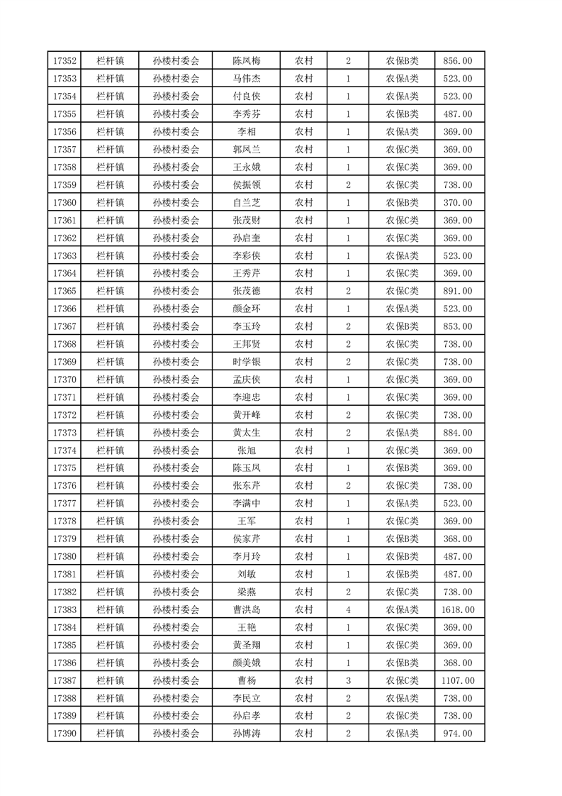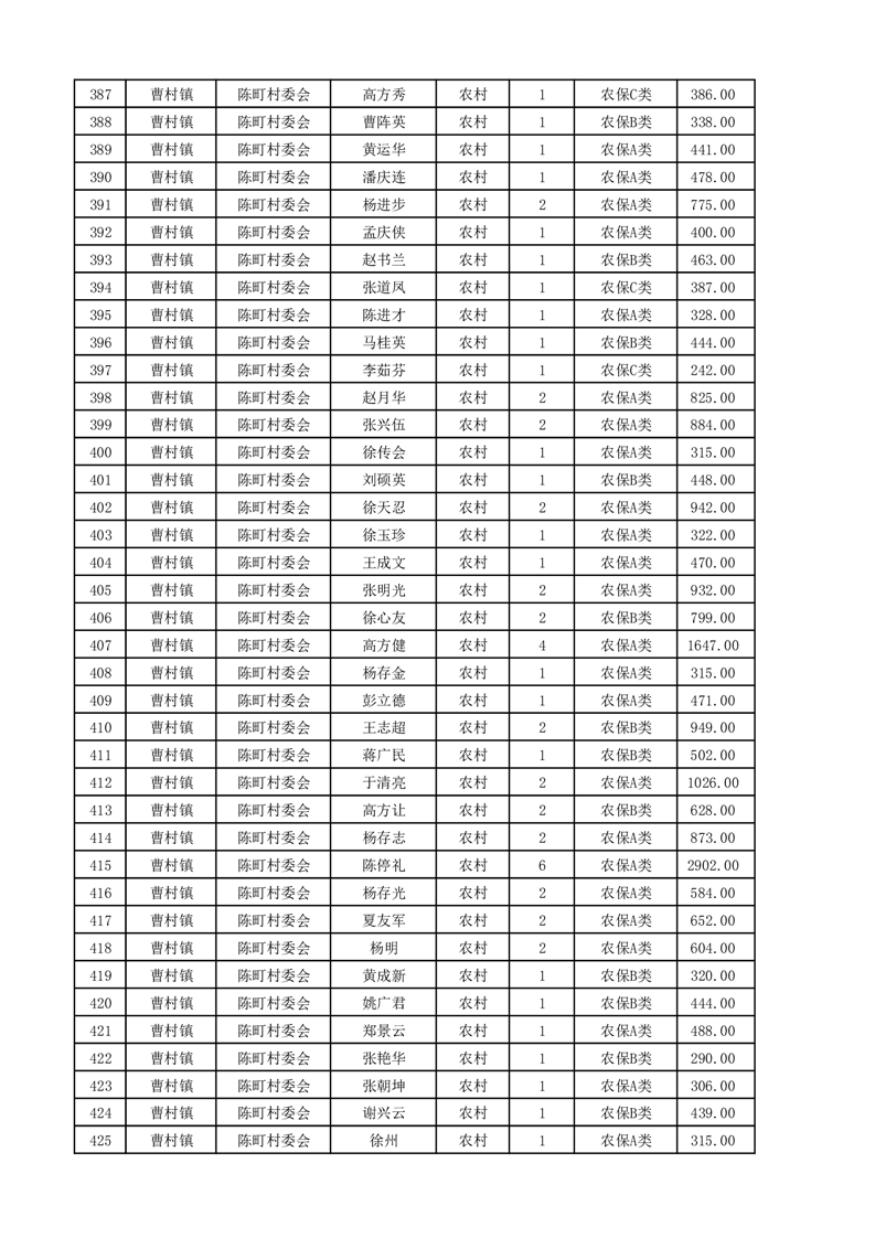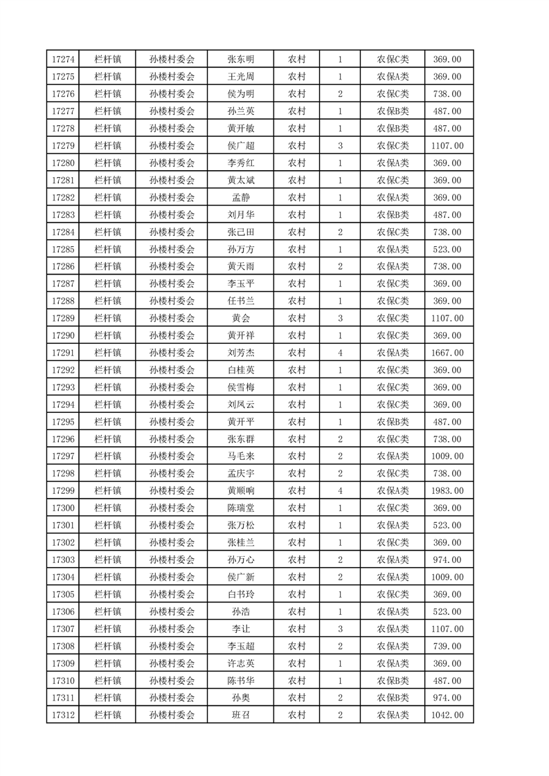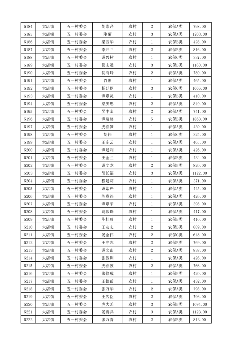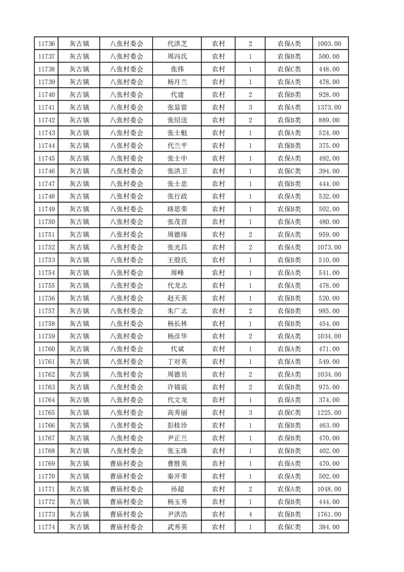 埇桥区2025年4月份农村低保花名册