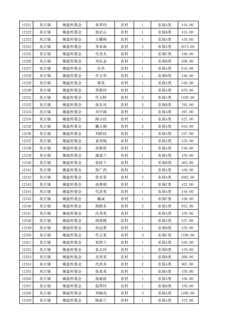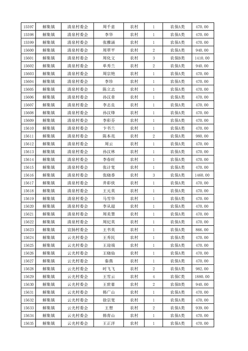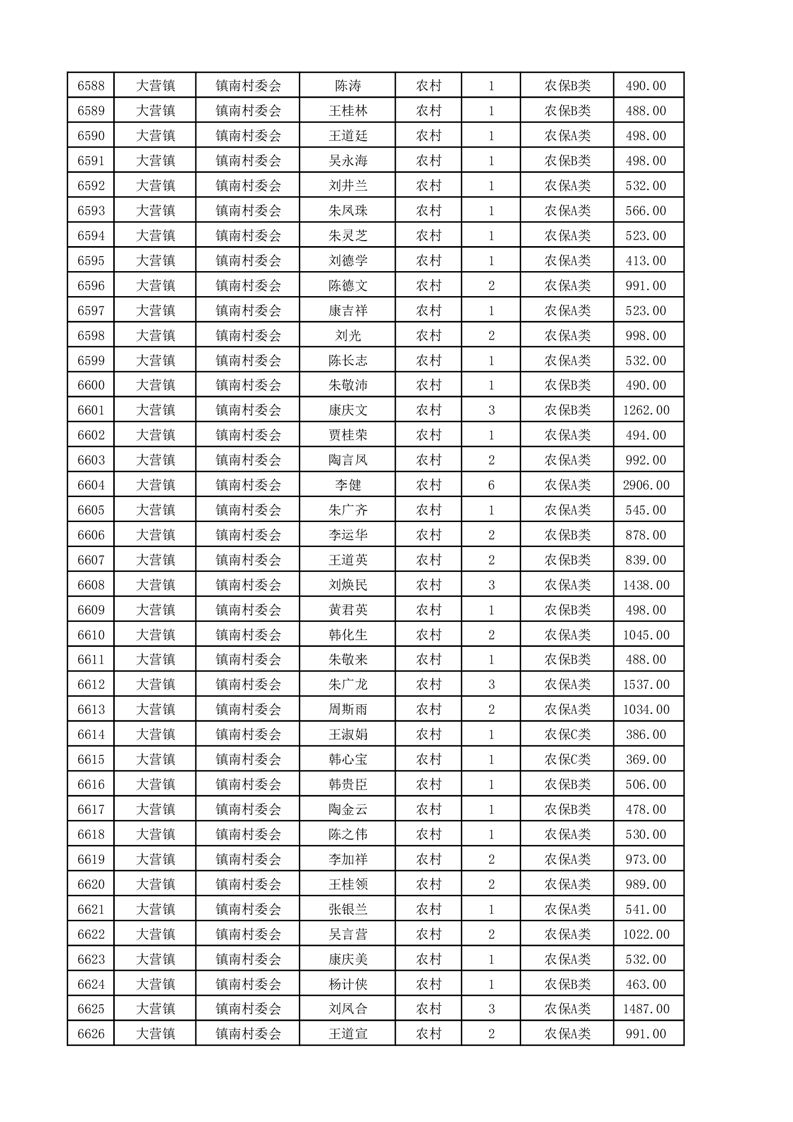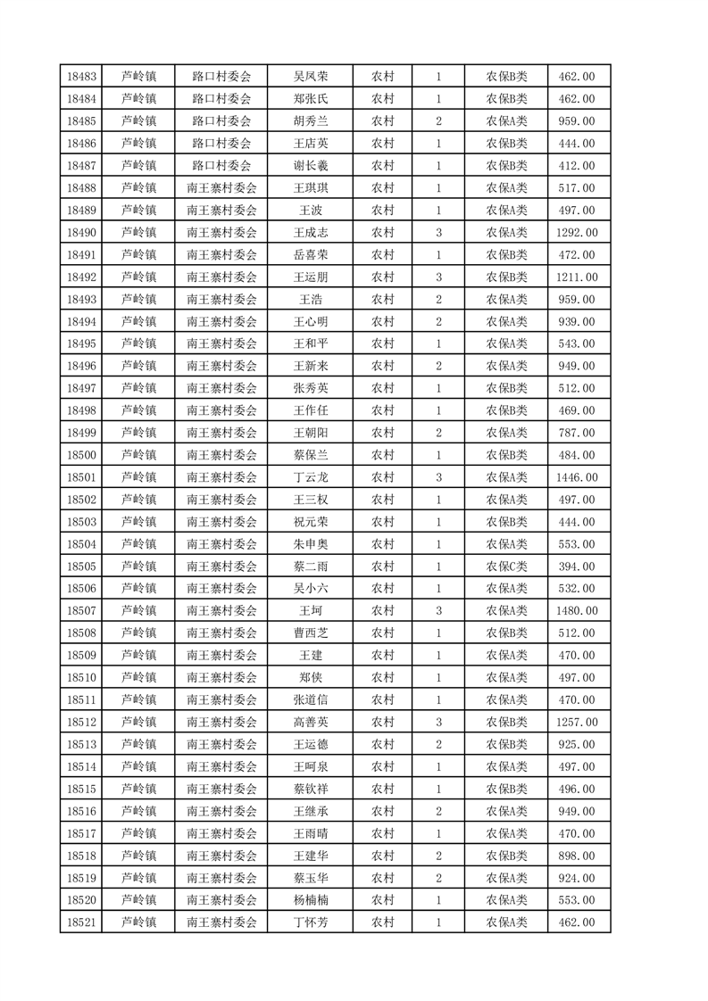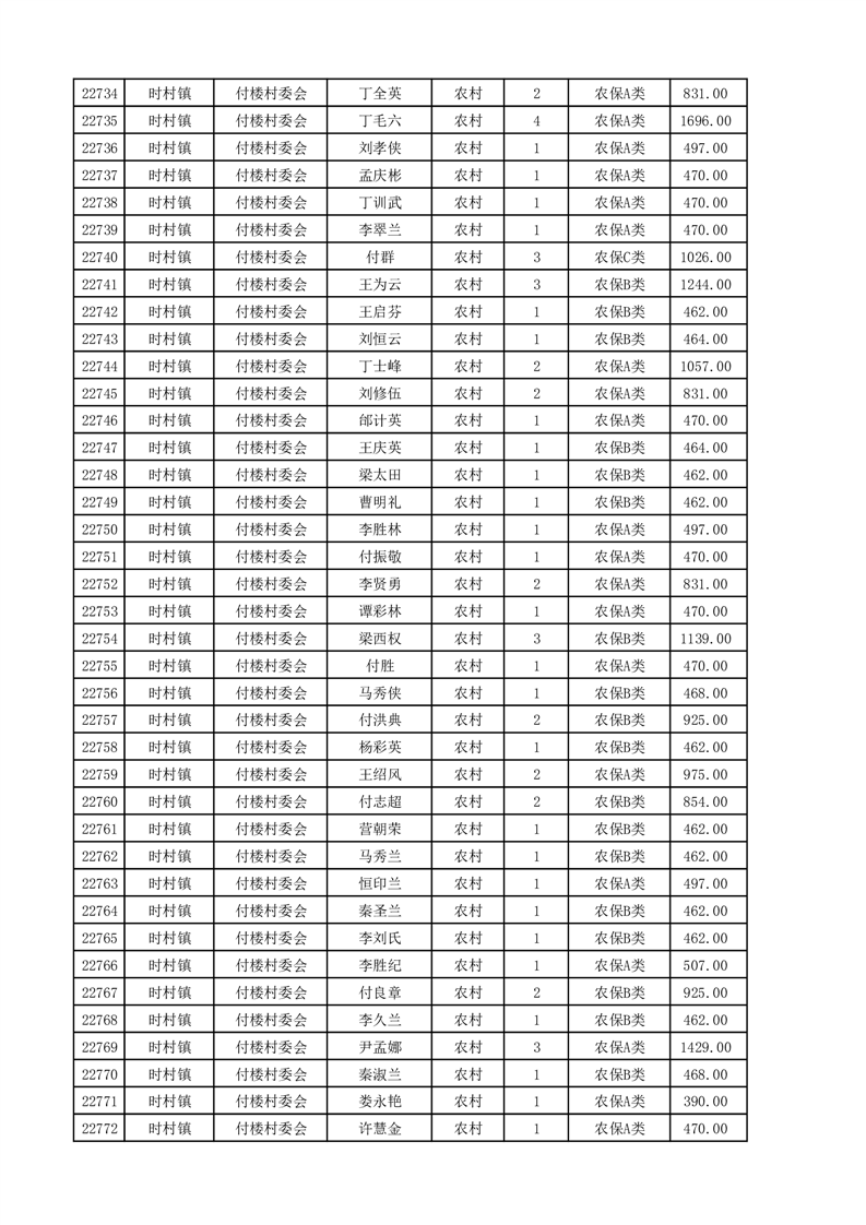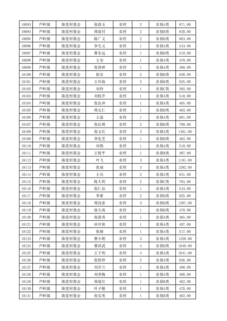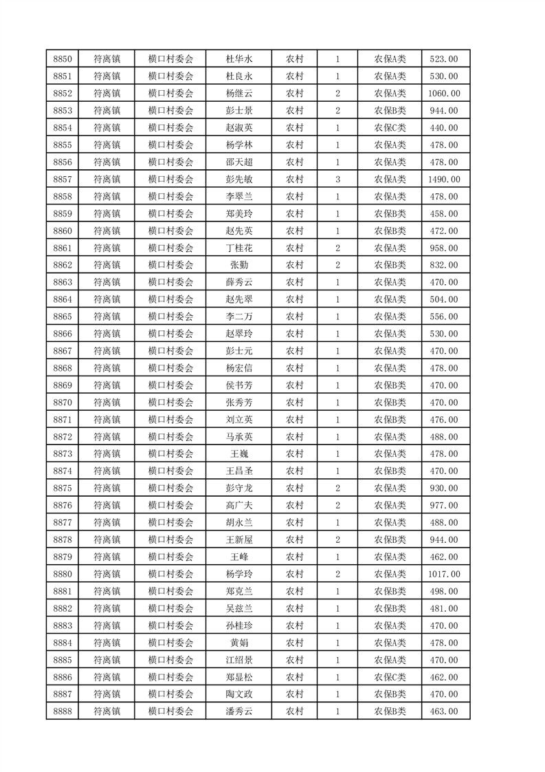 埇桥区2025年4月份农村低保花名册