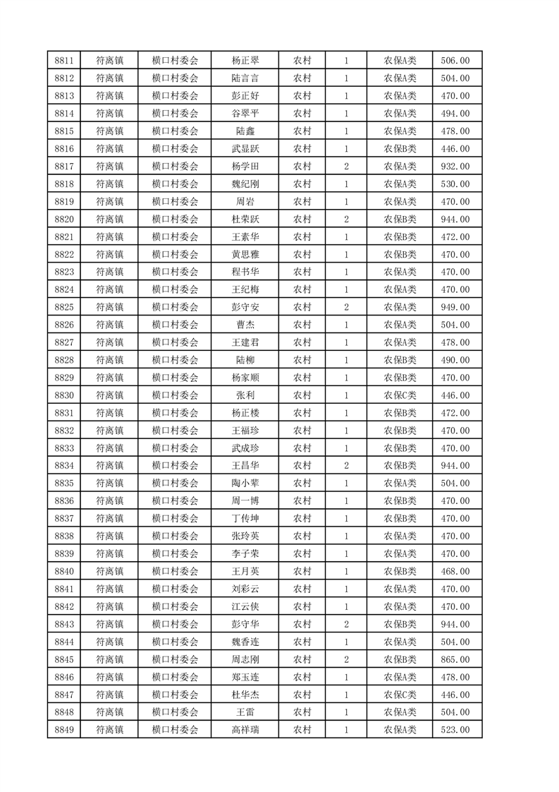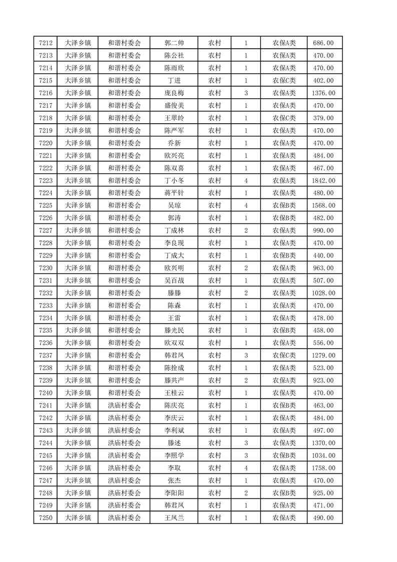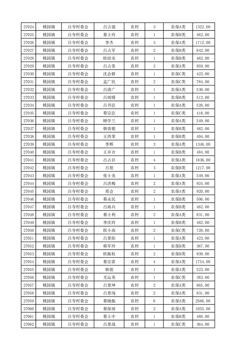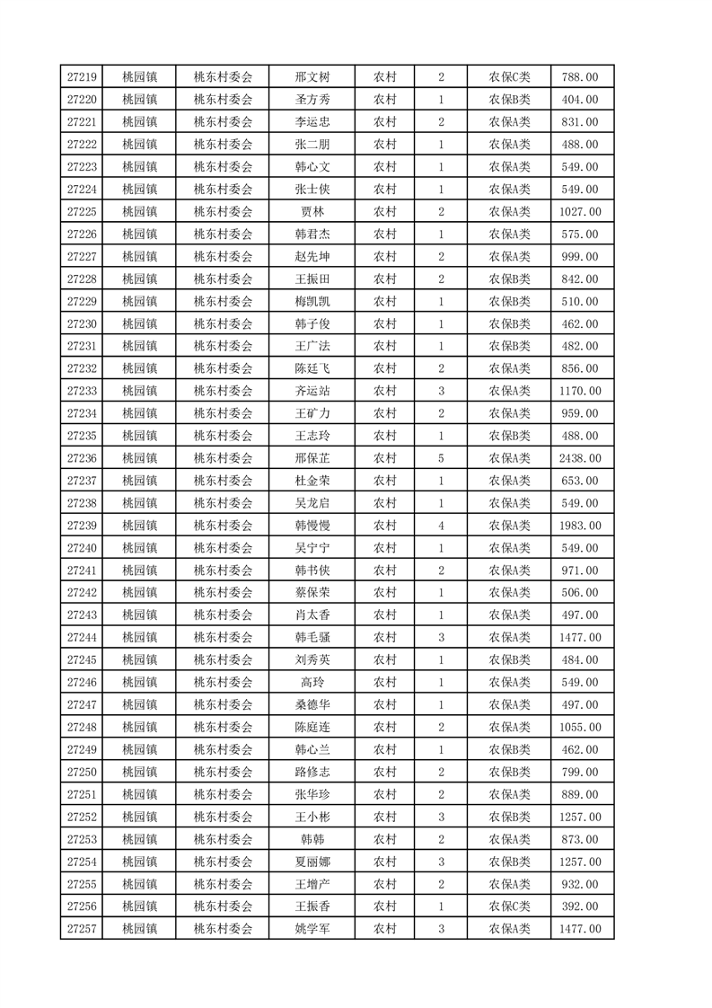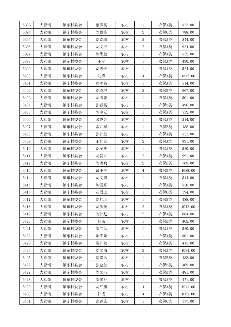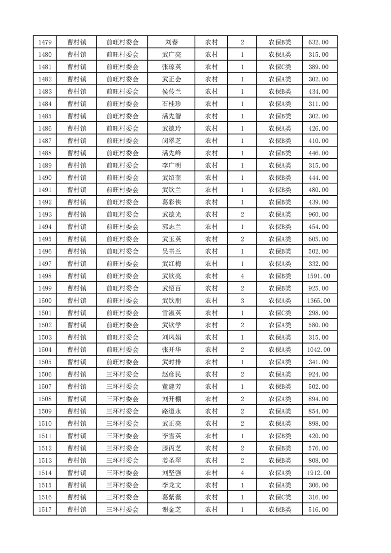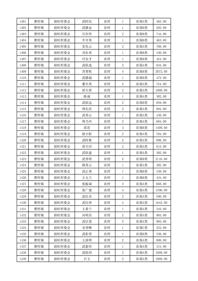 埇桥区2025年4月份农村低保花名册