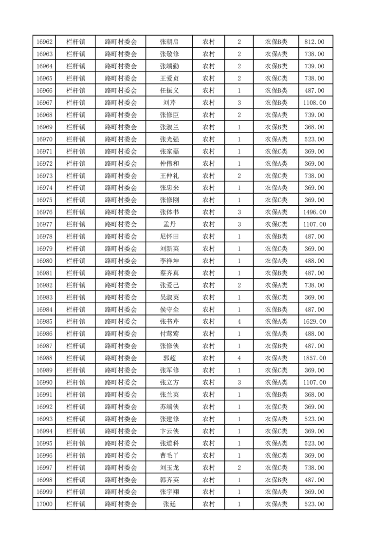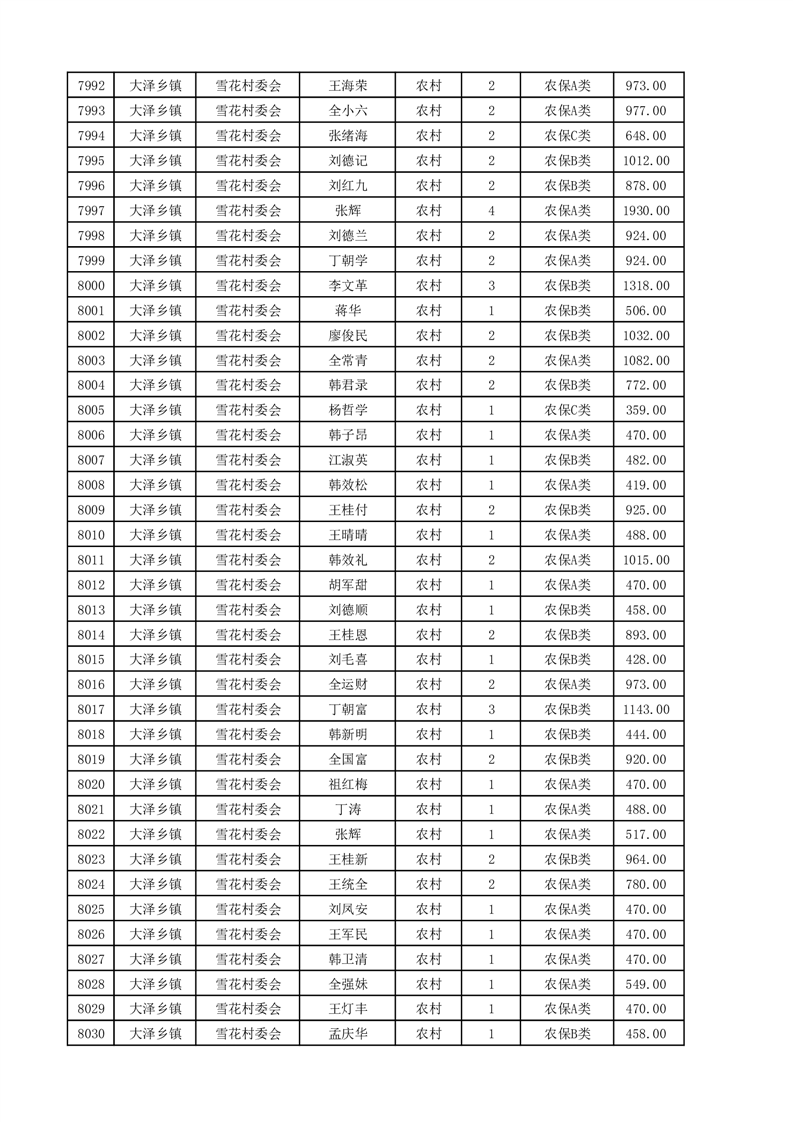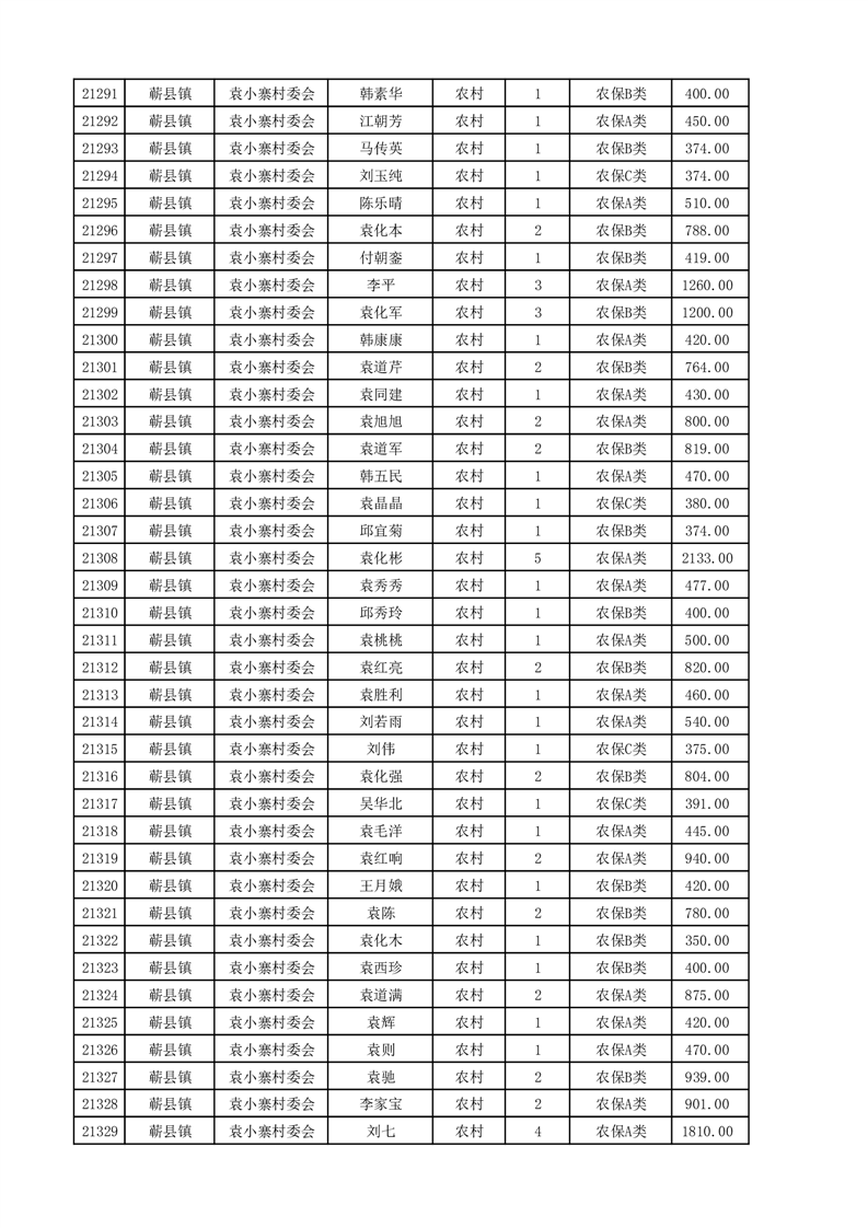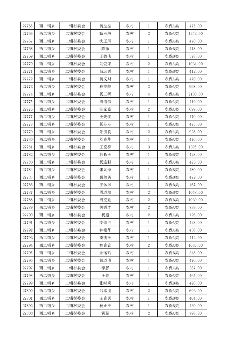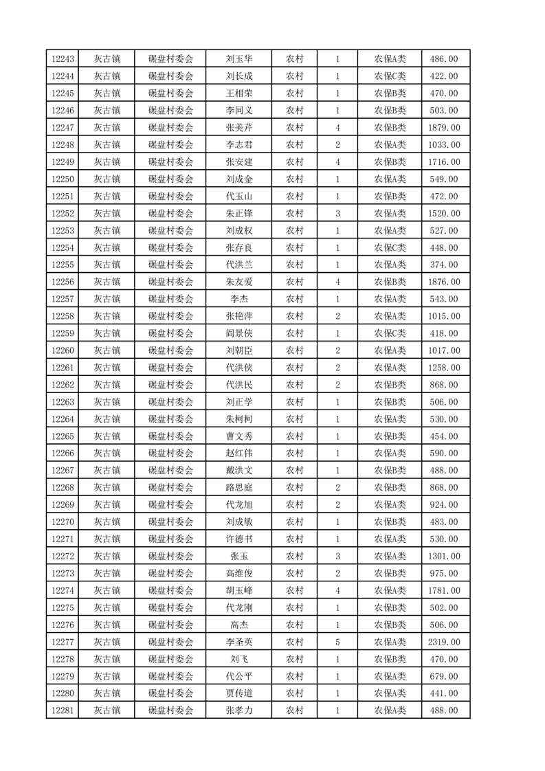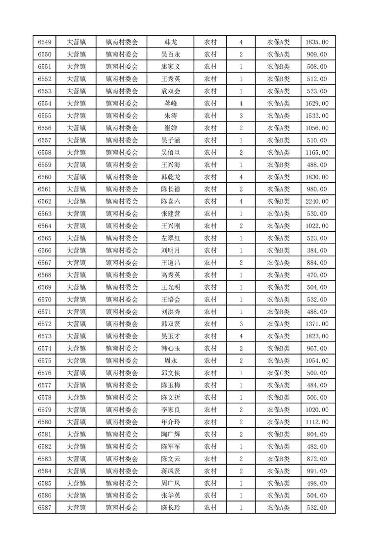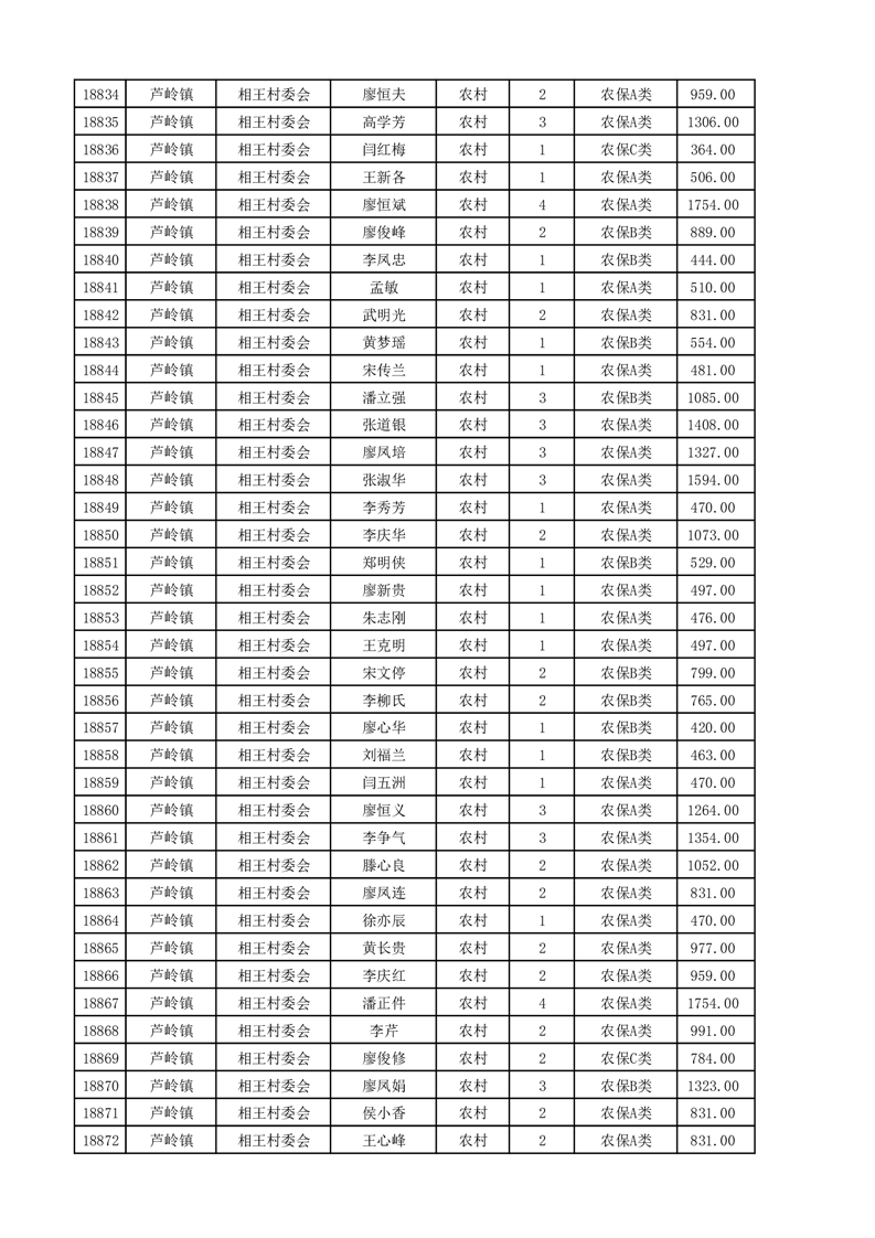 埇桥区2025年4月份农村低保花名册