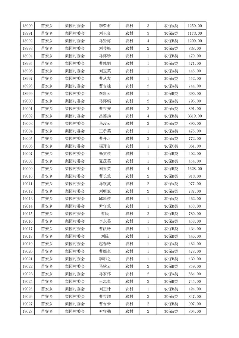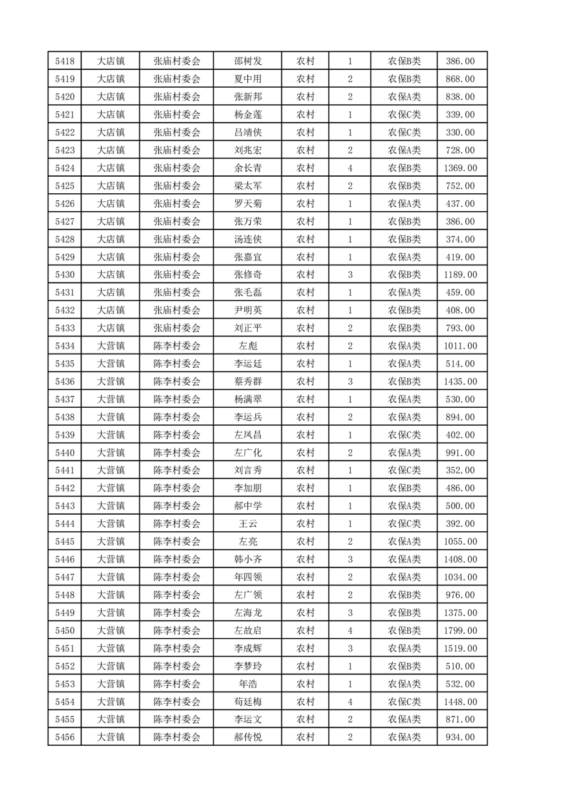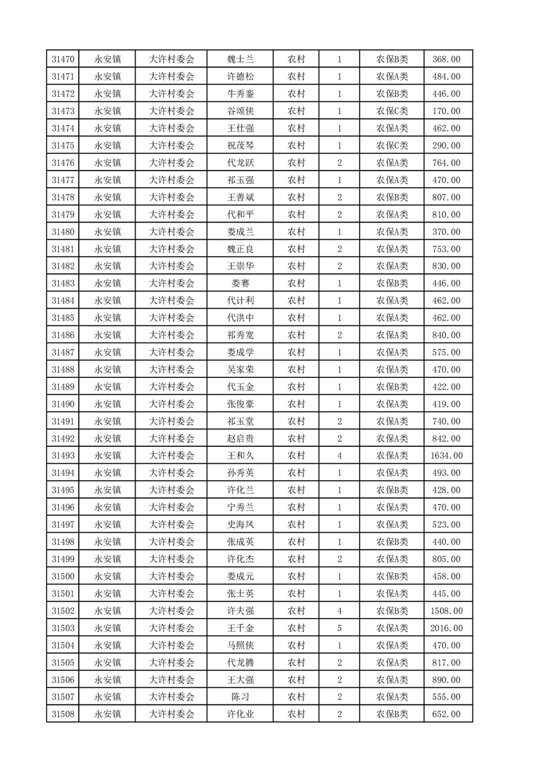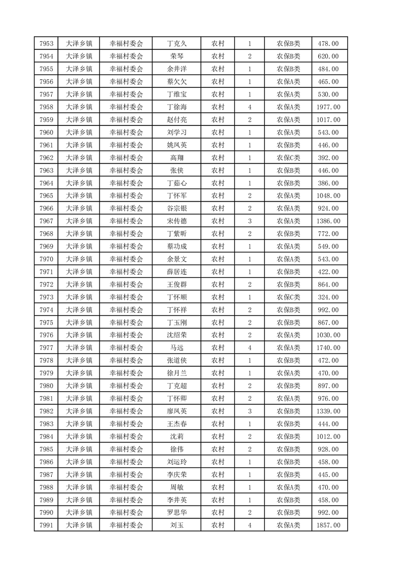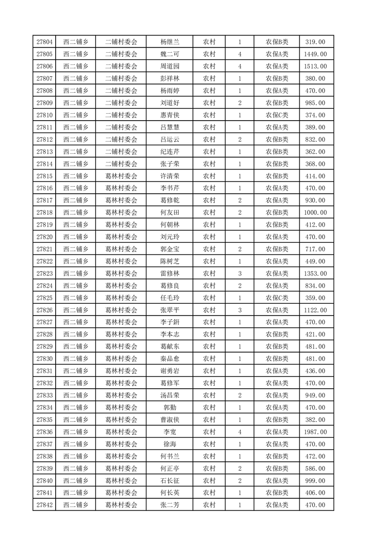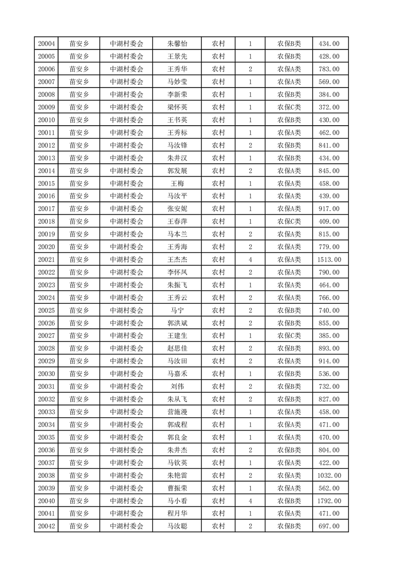 埇桥区2025年4月份农村低保花名册