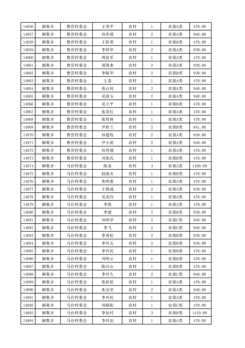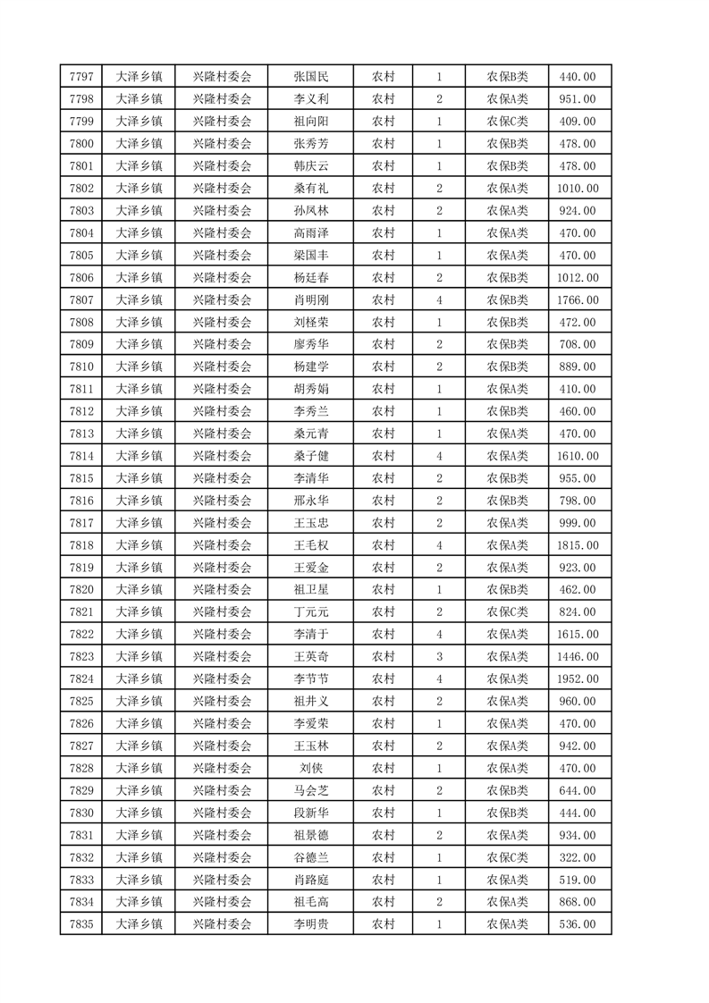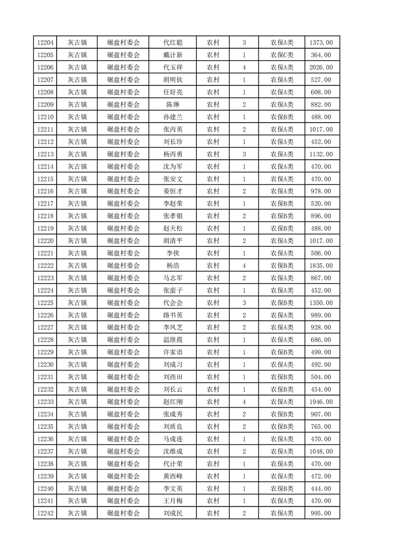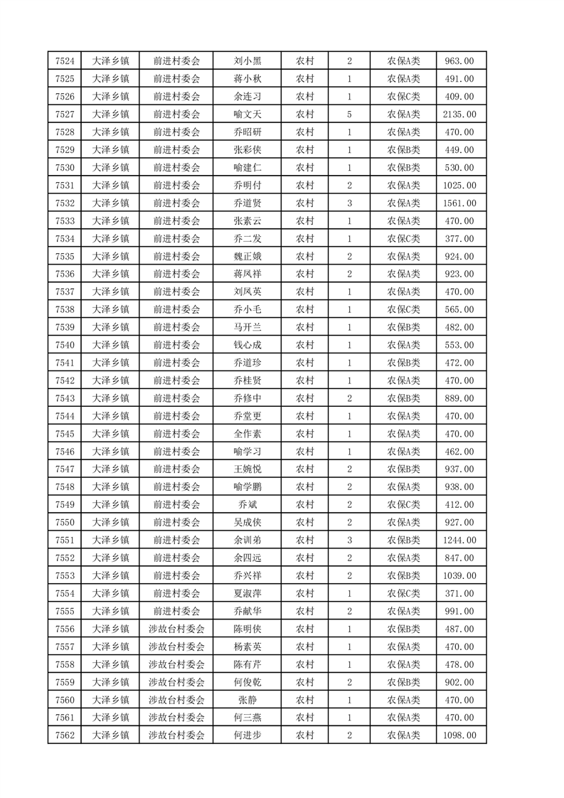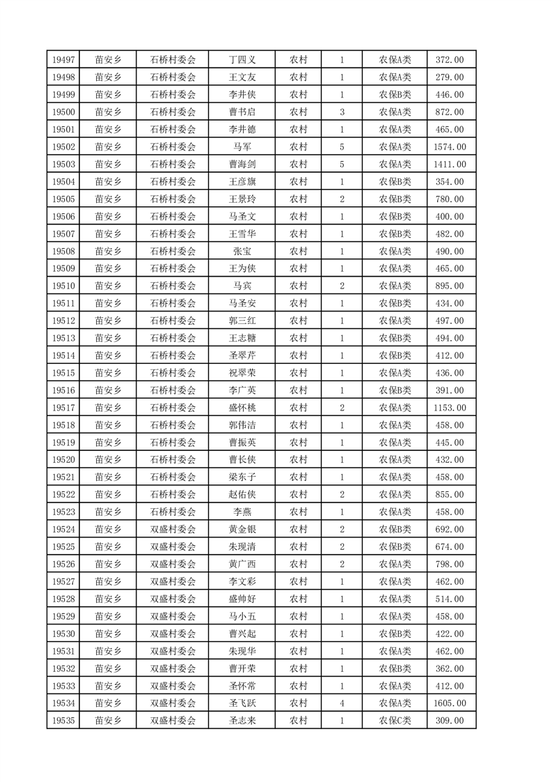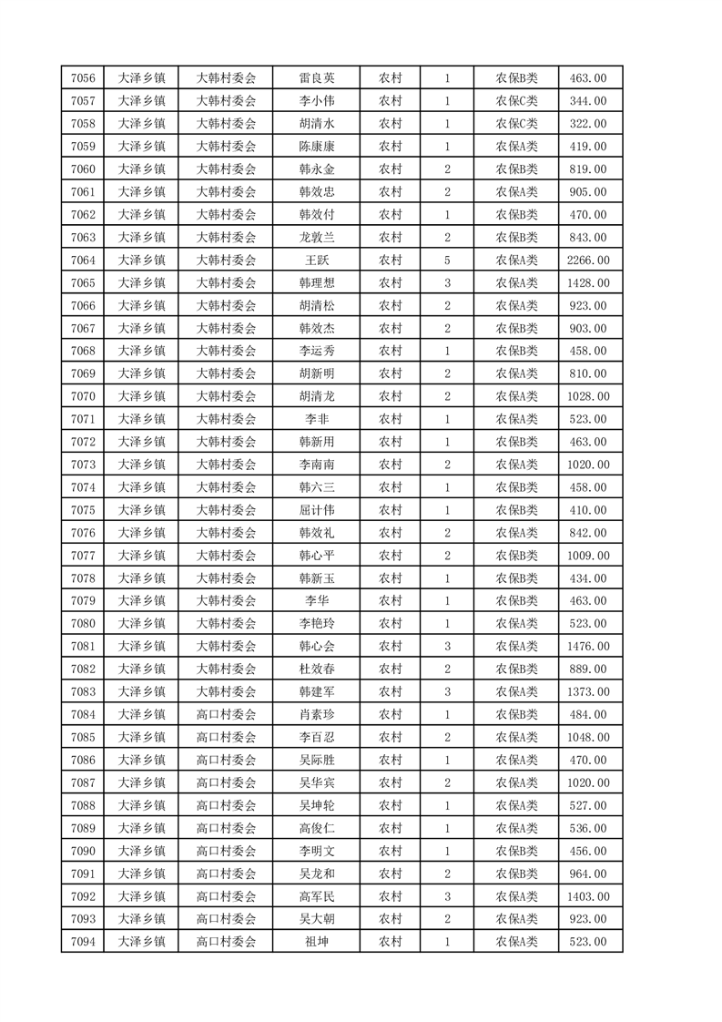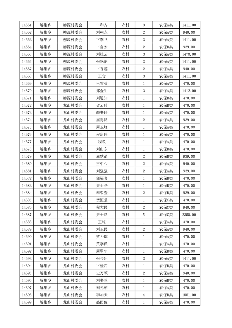 埇桥区2025年4月份农村低保花名册
