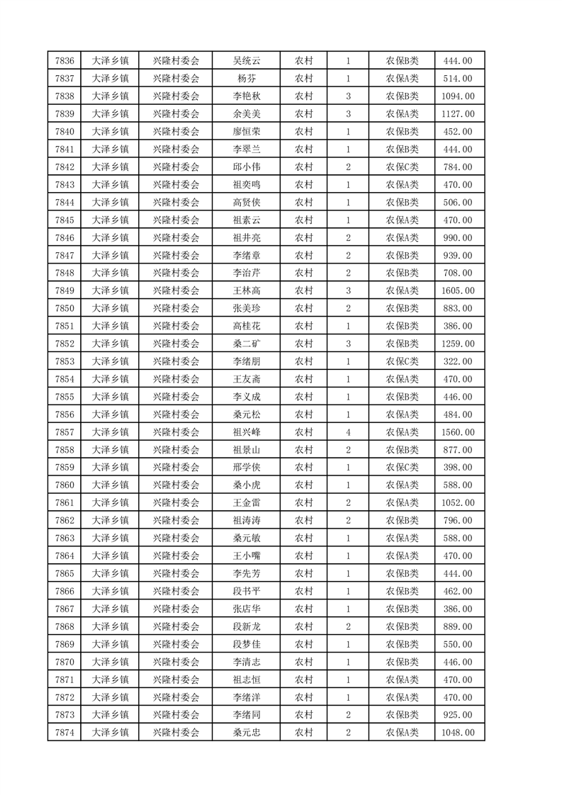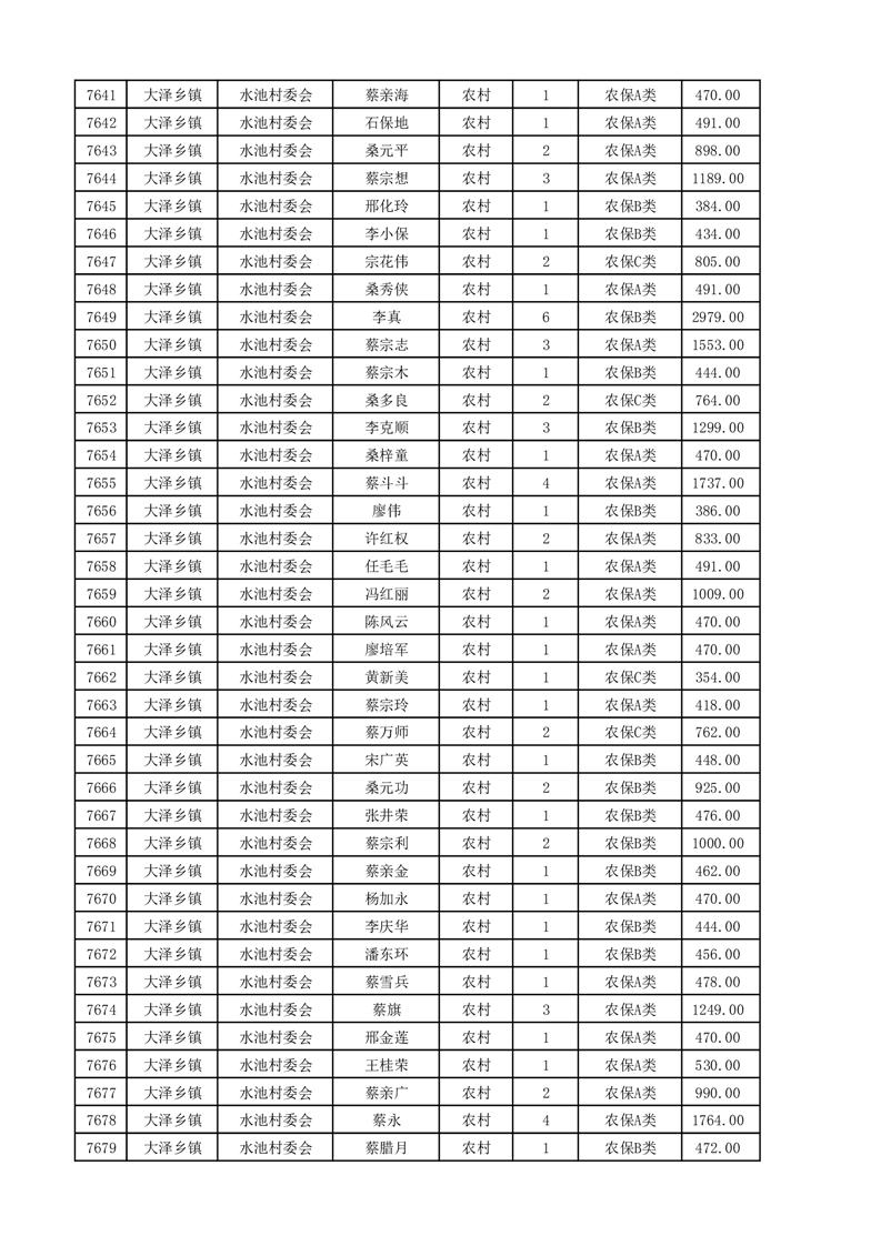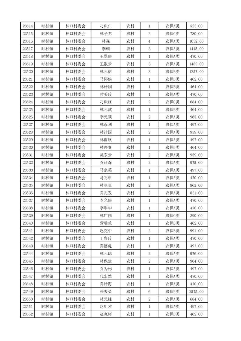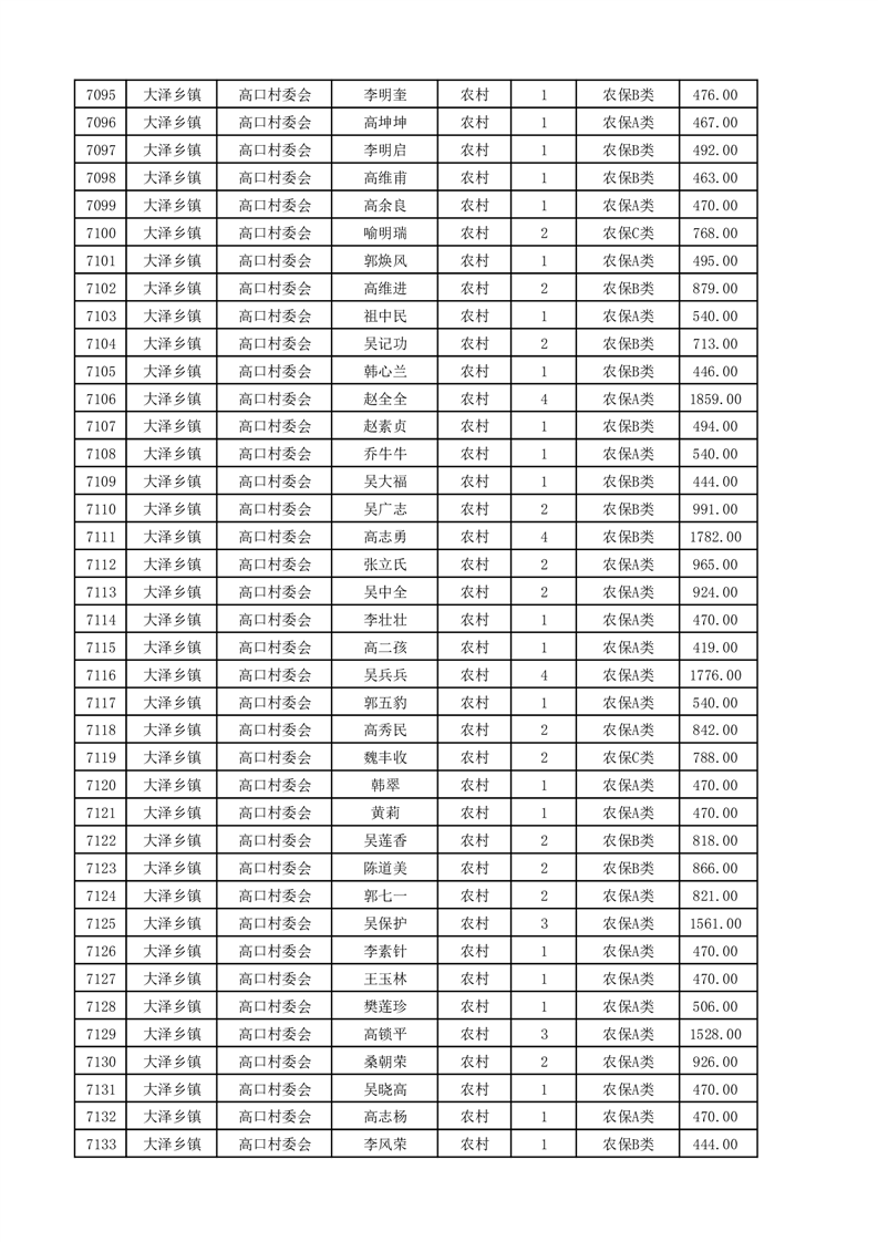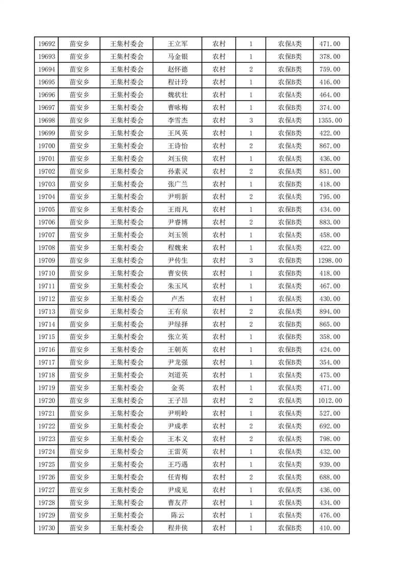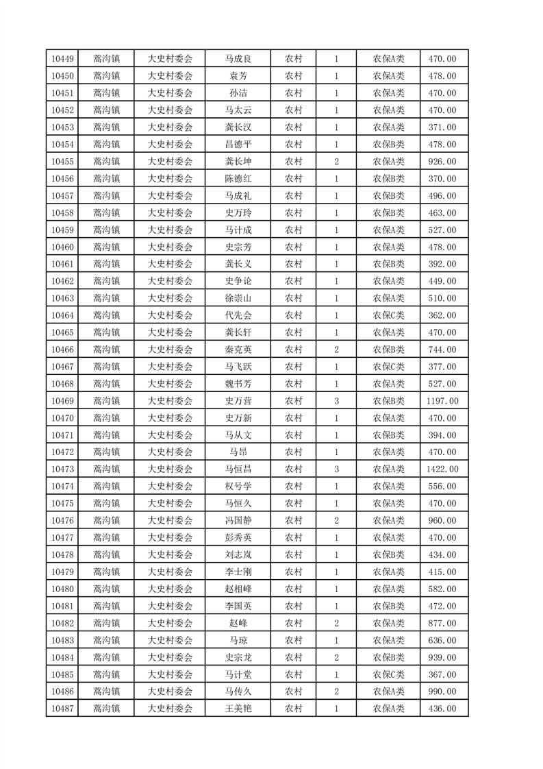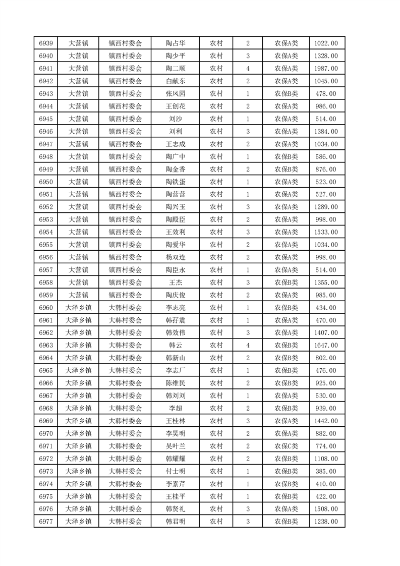 埇桥区2025年4月份农村低保花名册