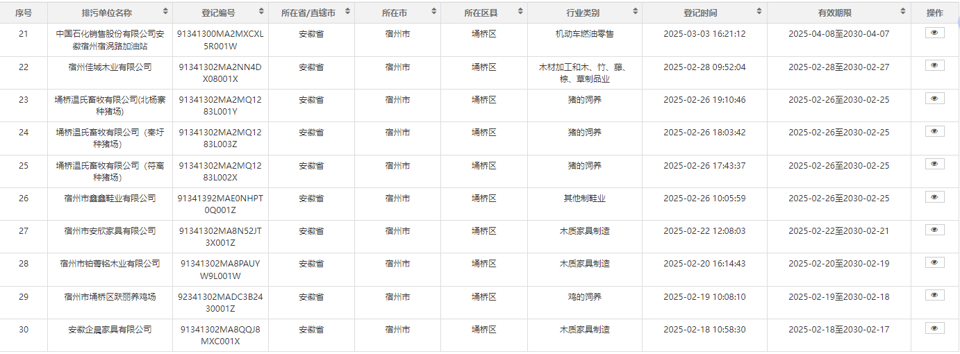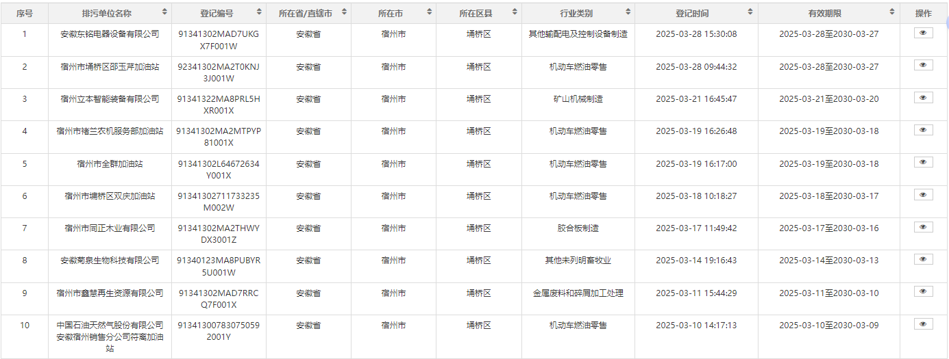 2025年埇桥区生态环境分局第一季度排污名单