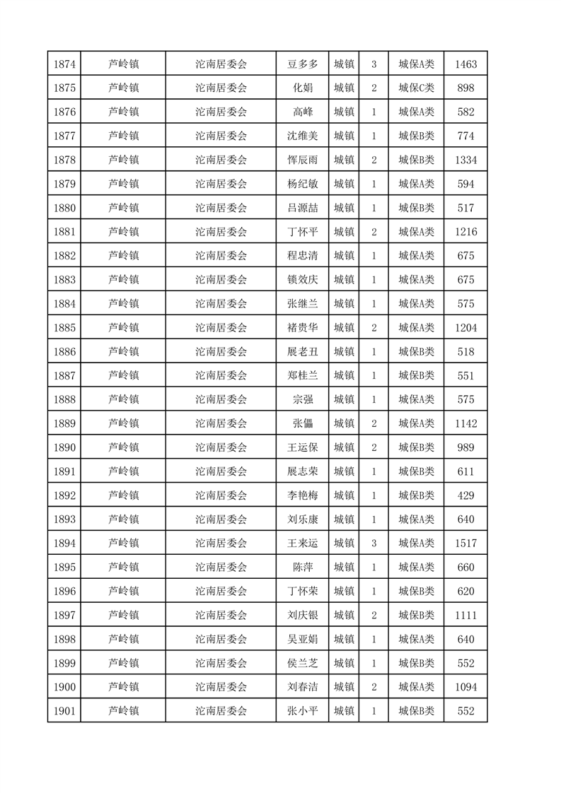 埇桥区2025年6月份城镇低保花名册
