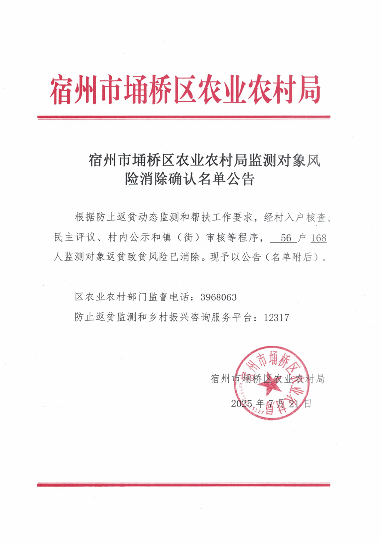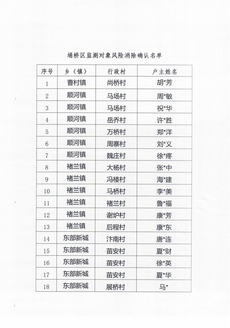 埇桥区监测对象风险消除确认名单公告
