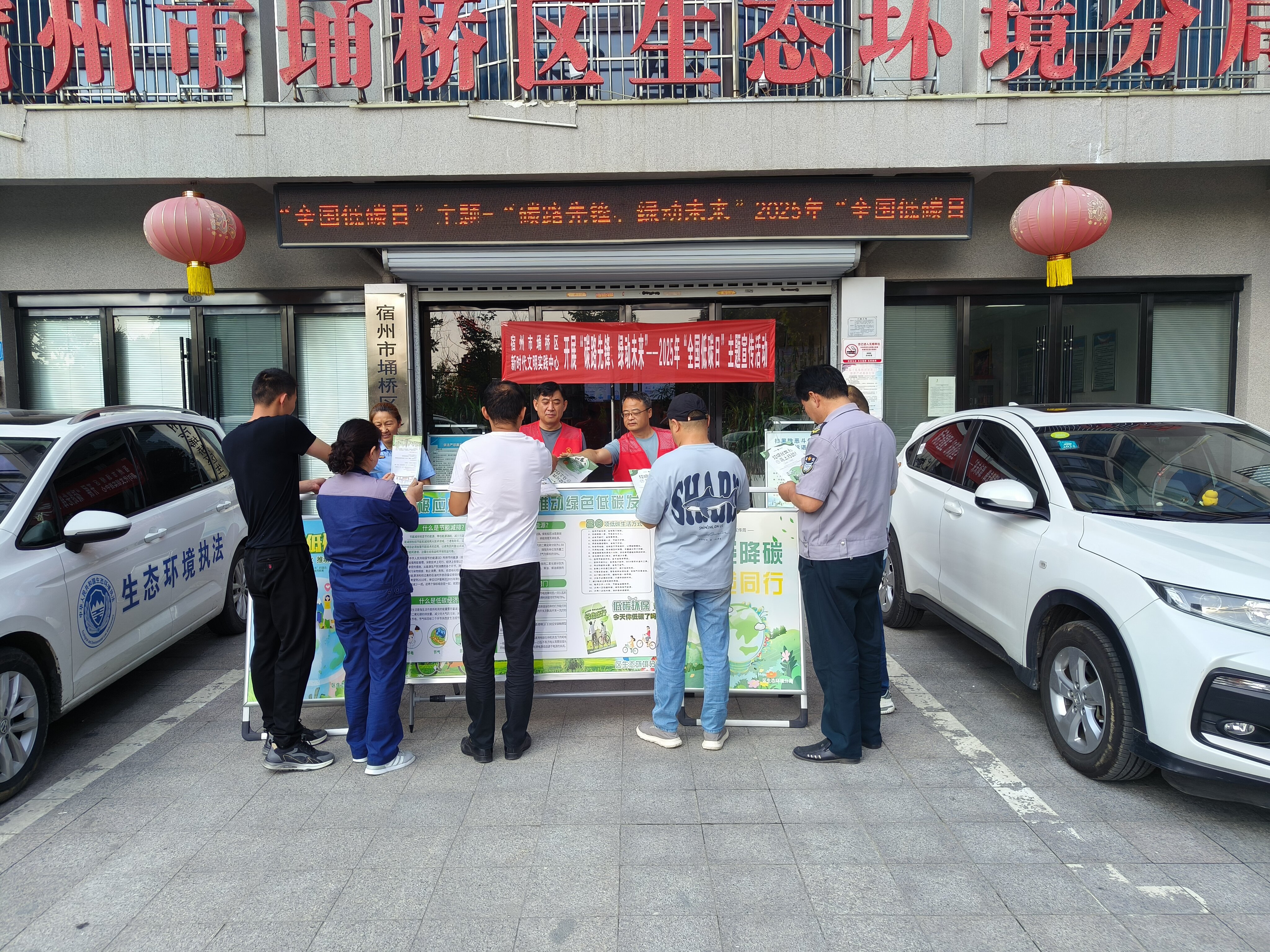 2025年6月24日下午,区生态环境分局宣传人员在沱河街道宿东社区区生态环境分局门前开展“碳路先锋、绿动未来”_2025年“全国低碳日”主题宣传活动