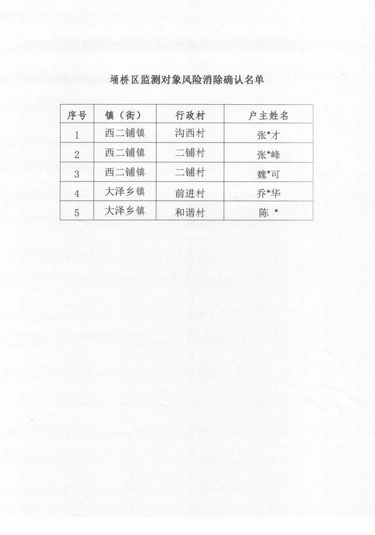 宿州市埇桥区风险消除确认名单公告