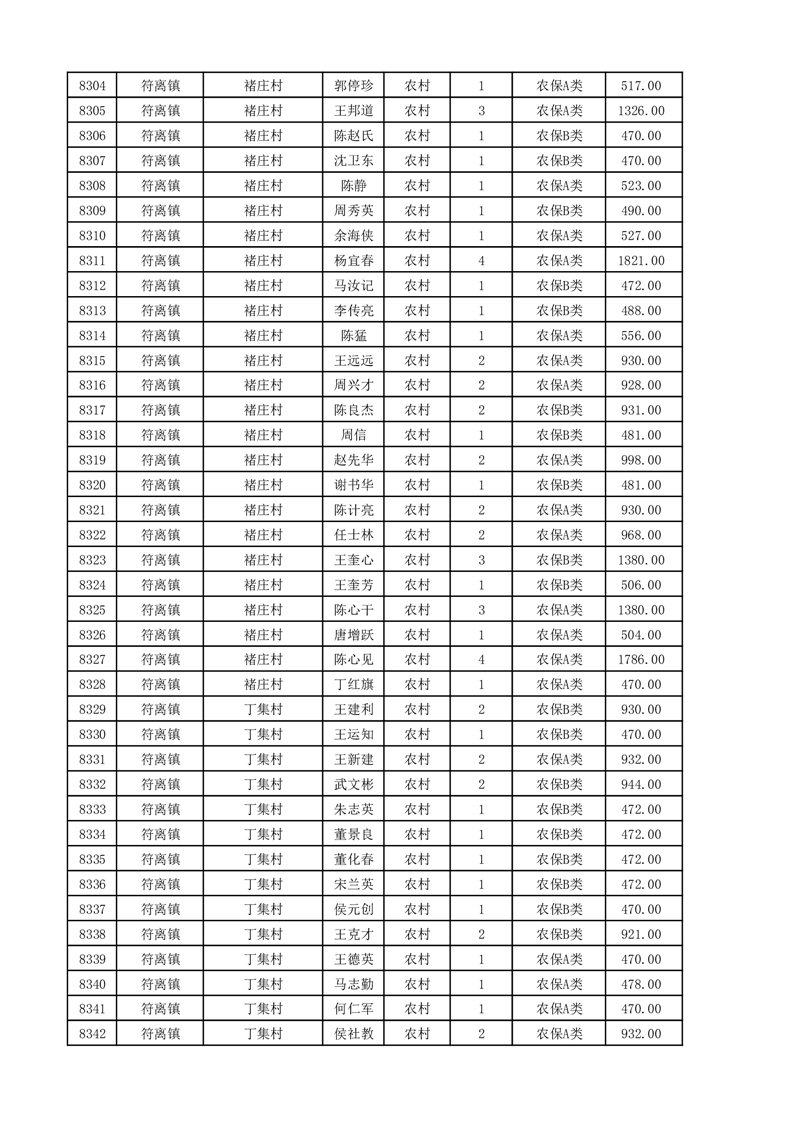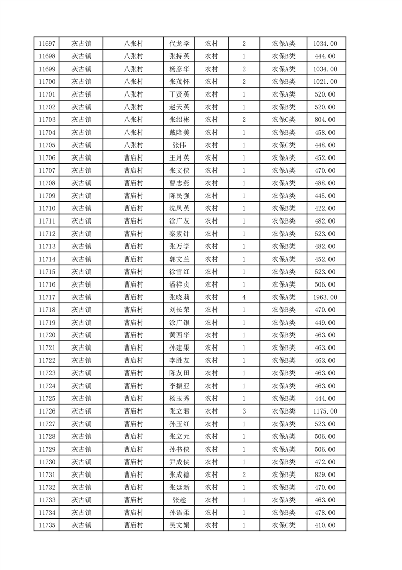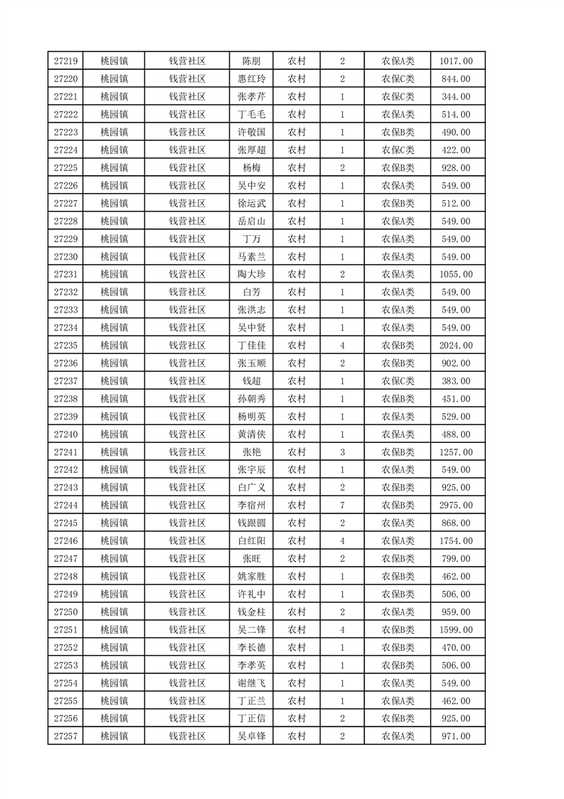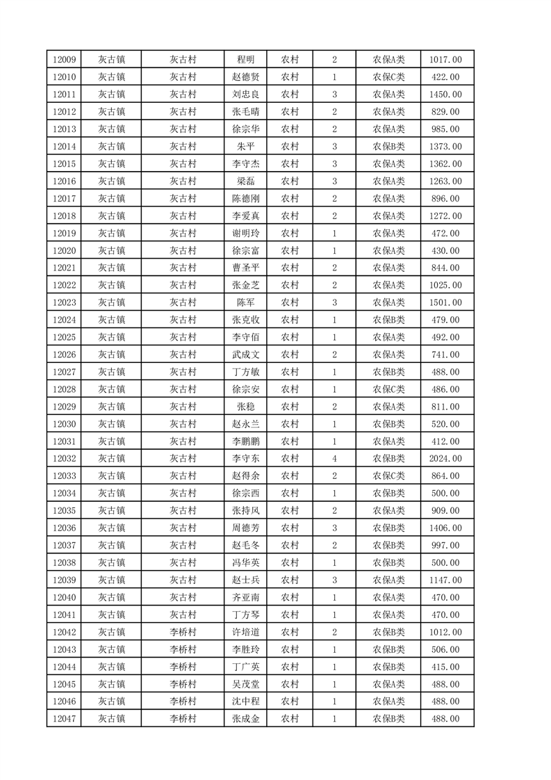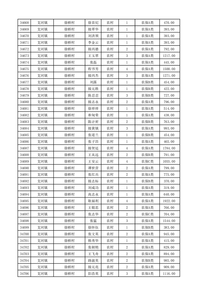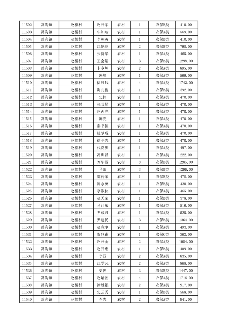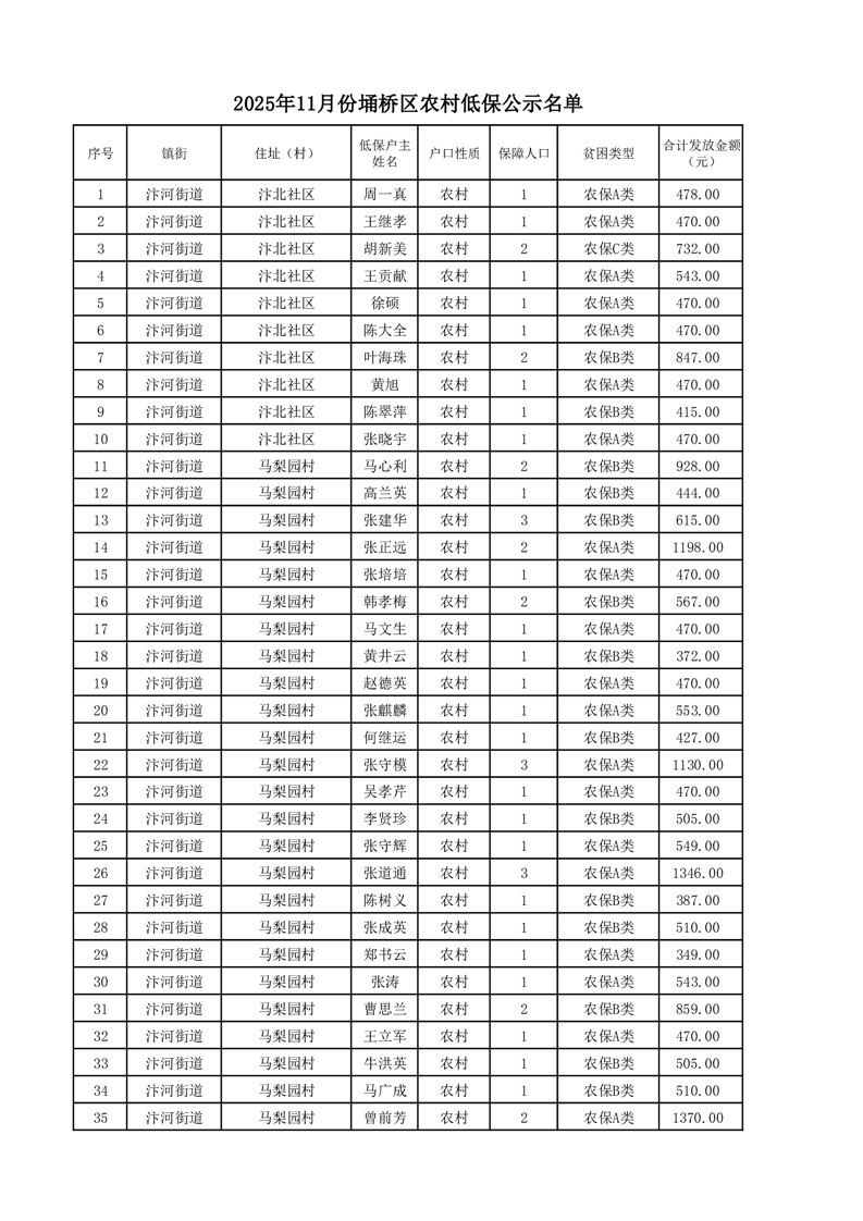 埇桥区2025年11月份农村低保花名册