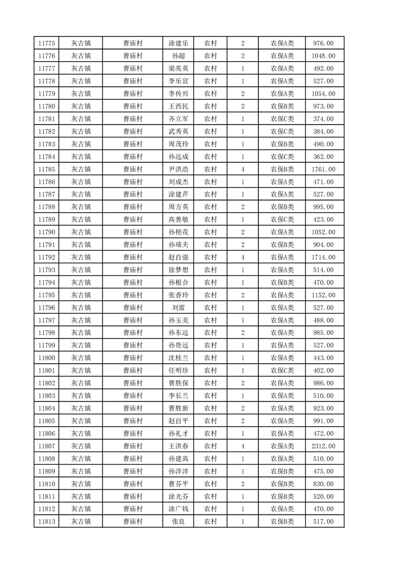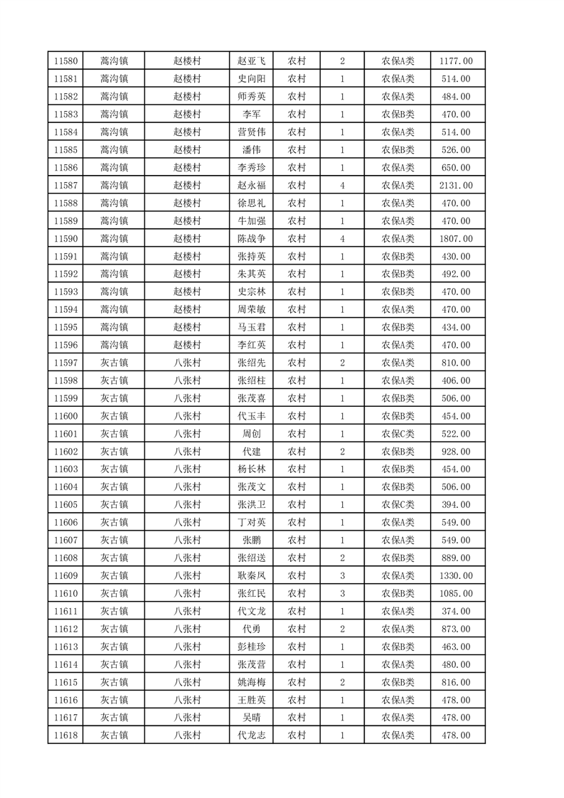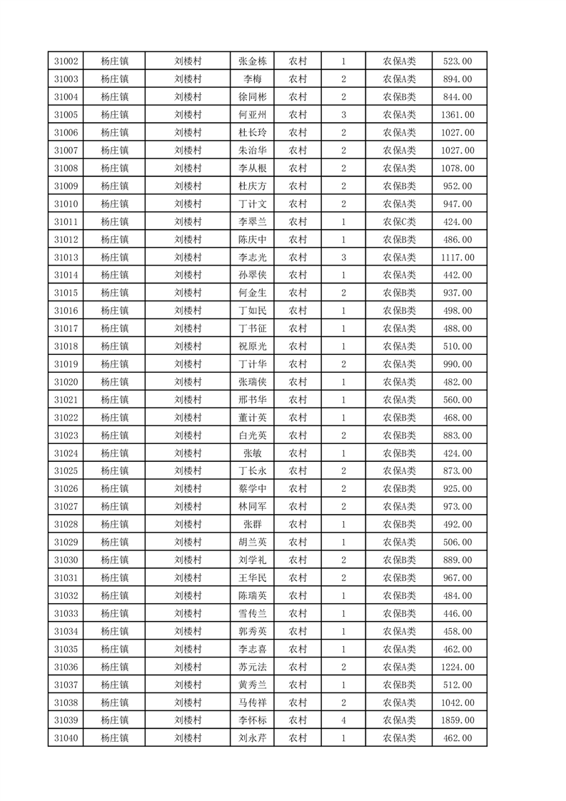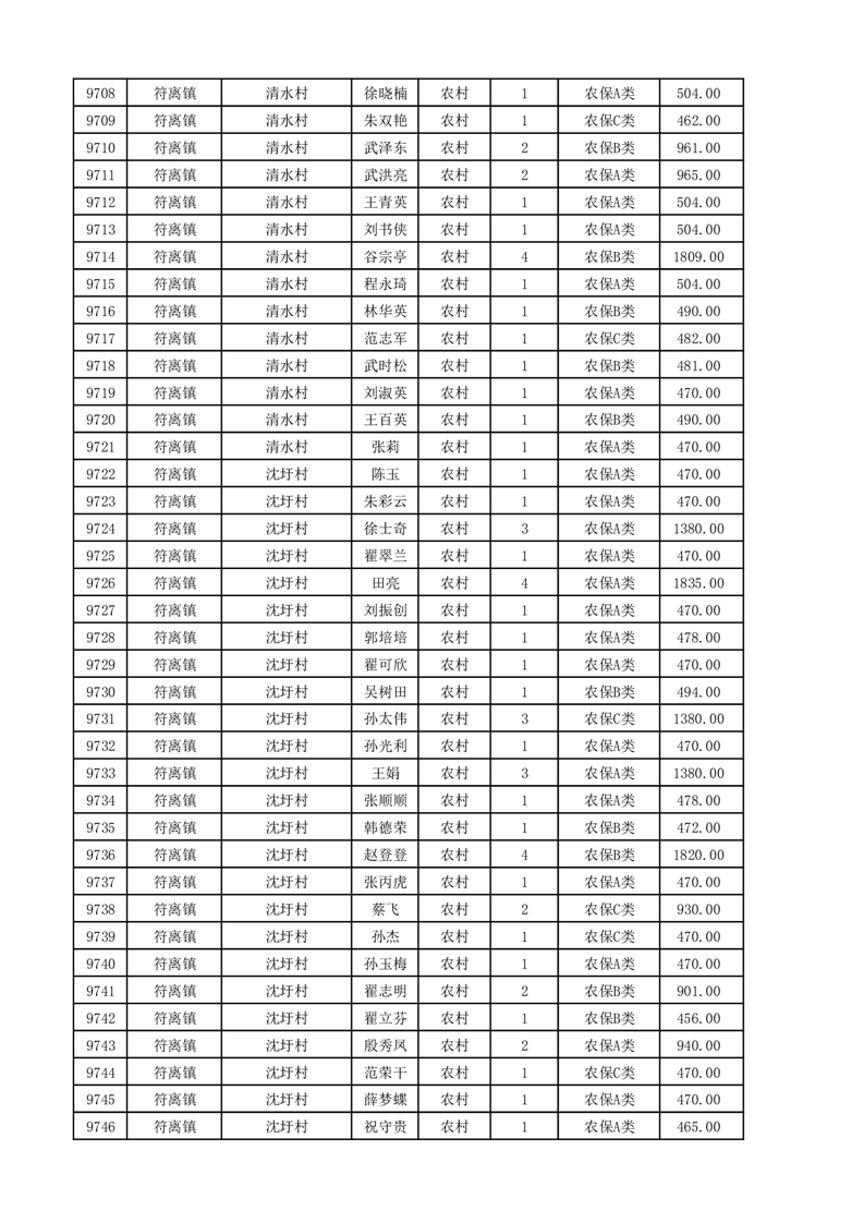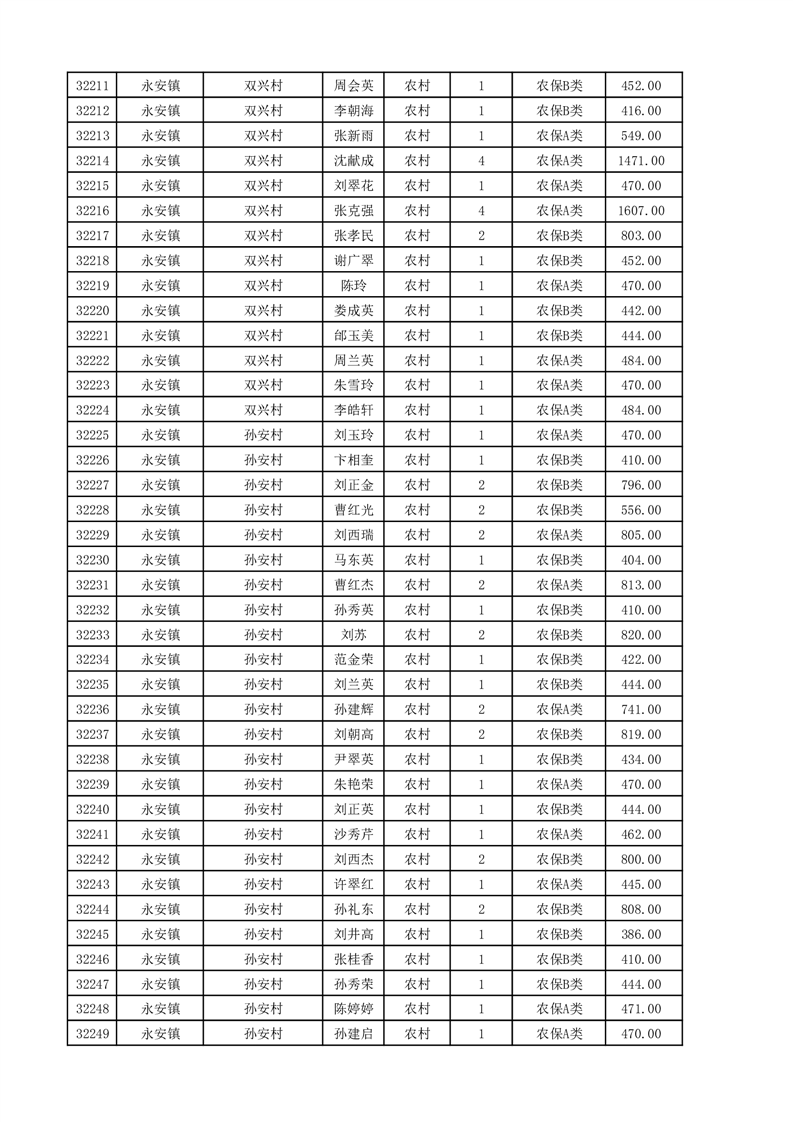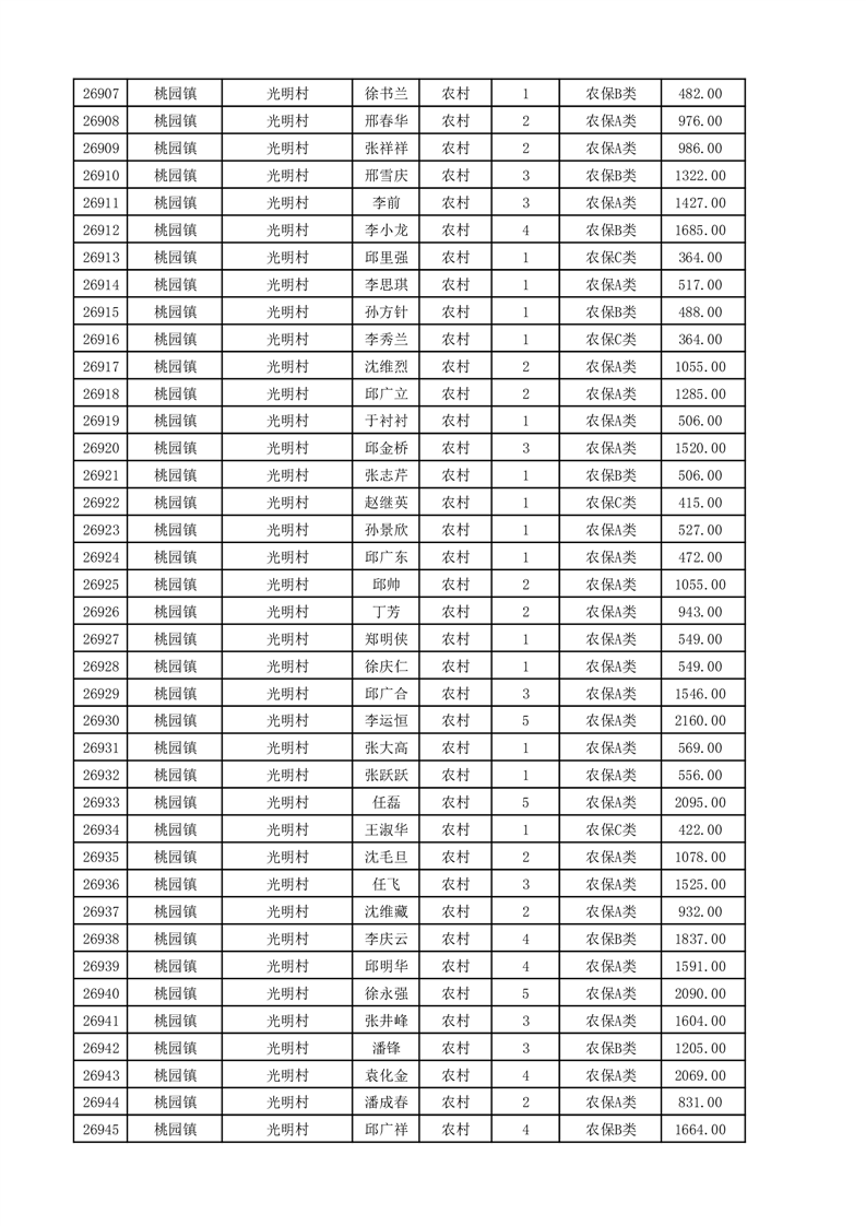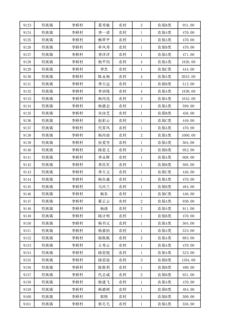 埇桥区2025年11月份农村低保花名册