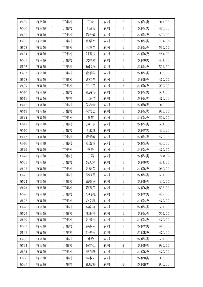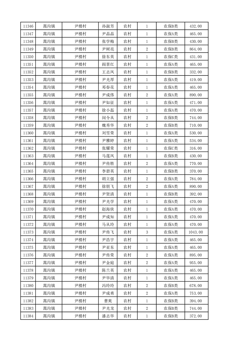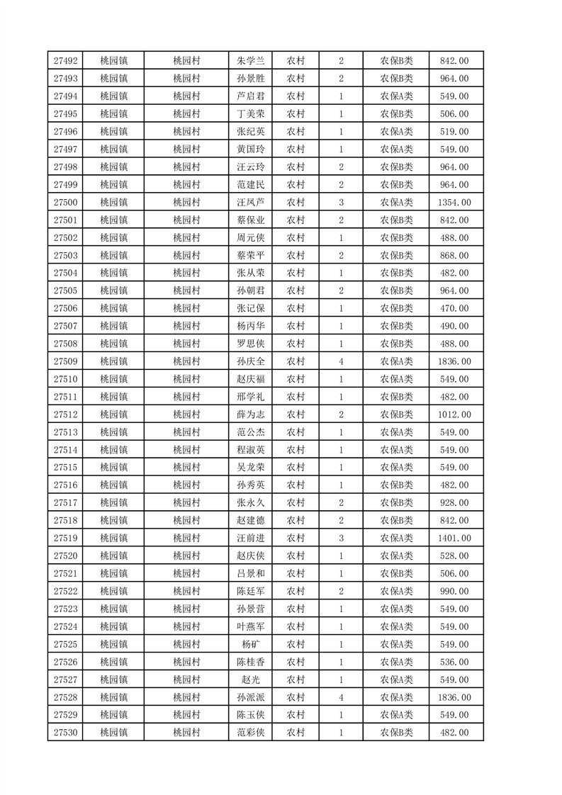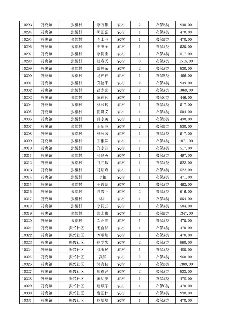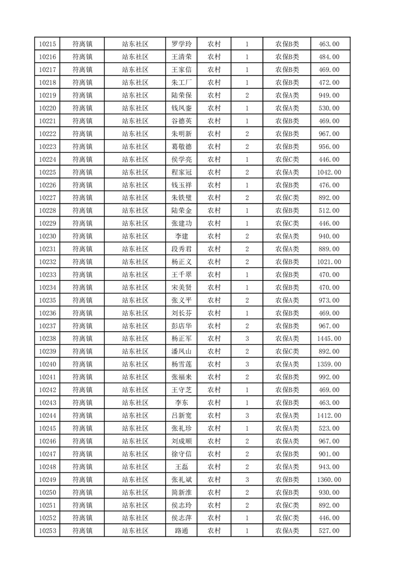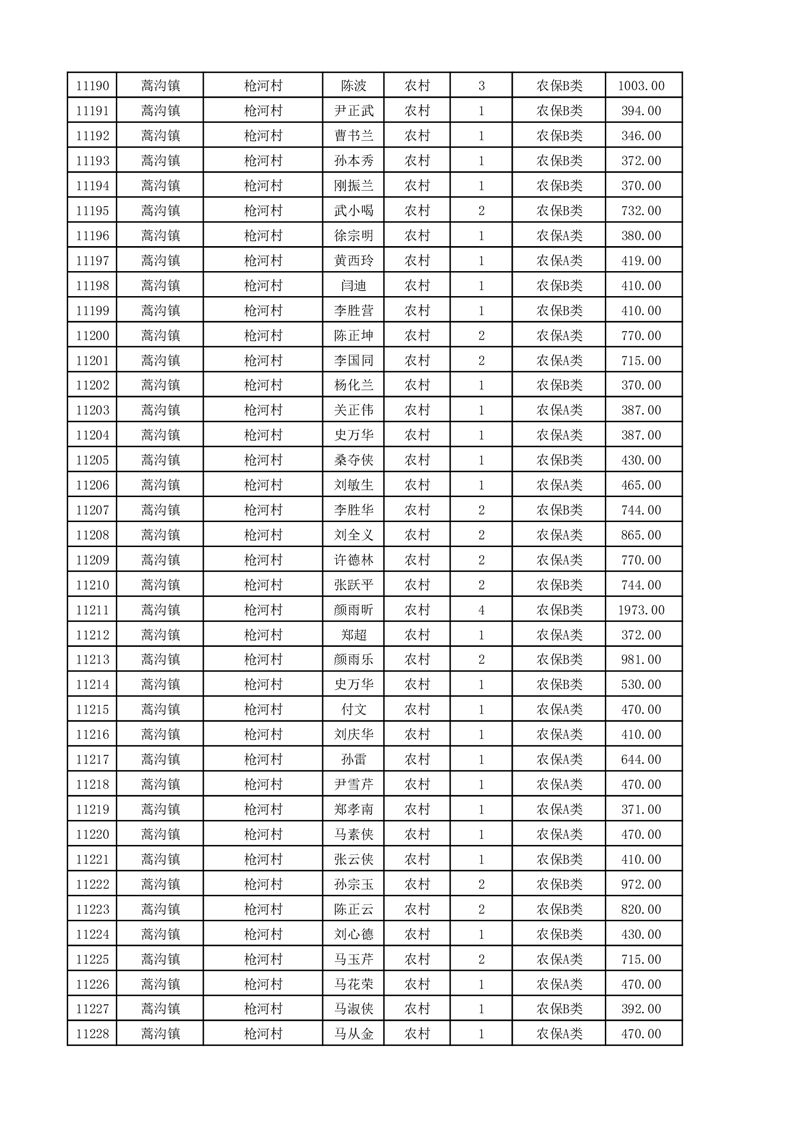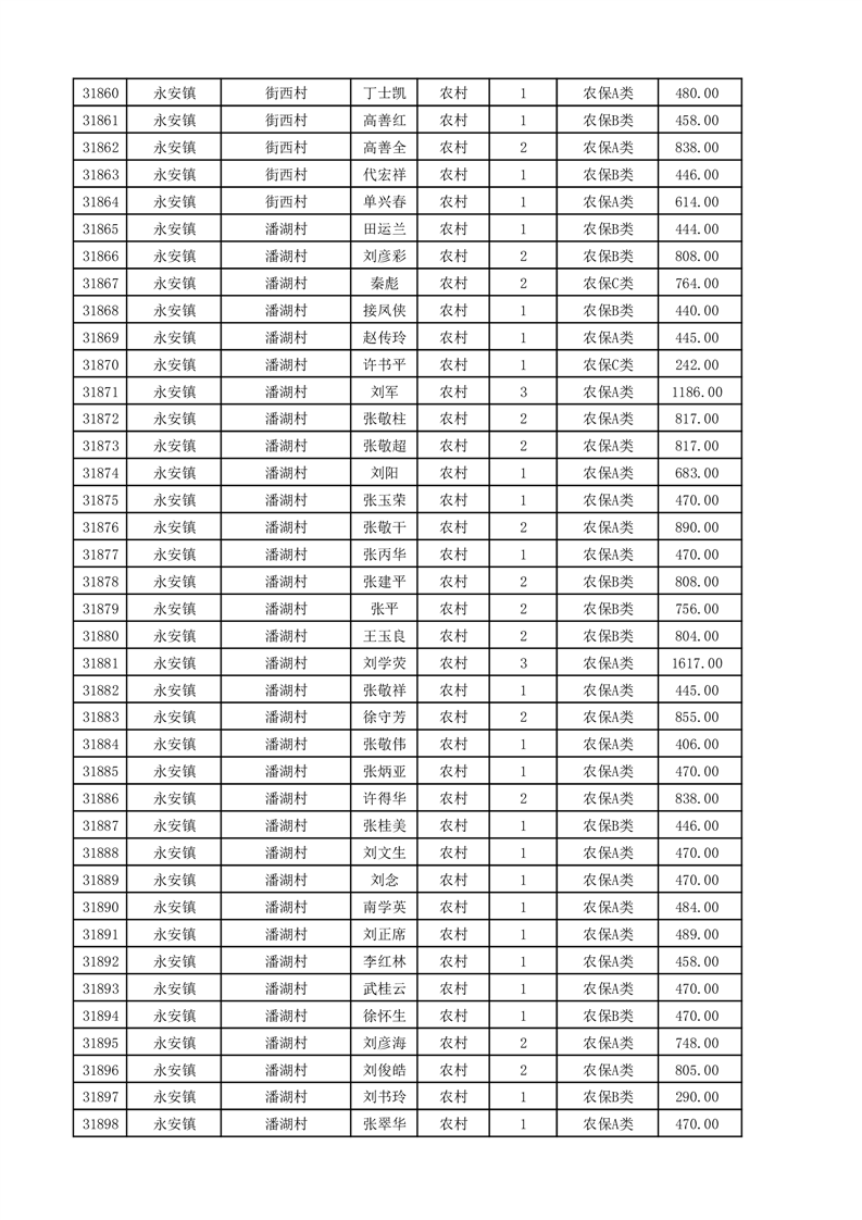 埇桥区2025年11月份农村低保花名册