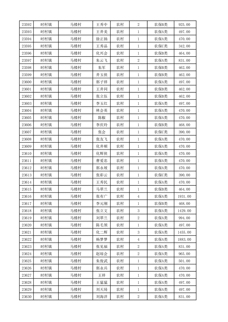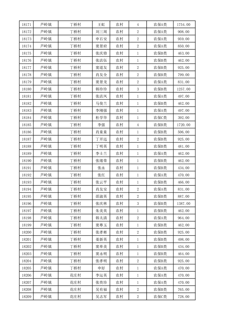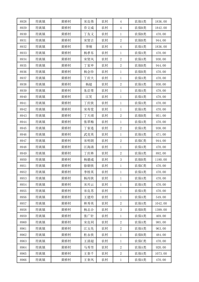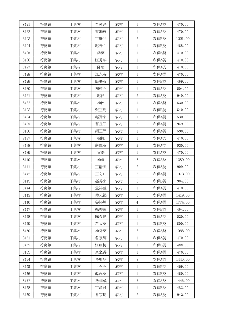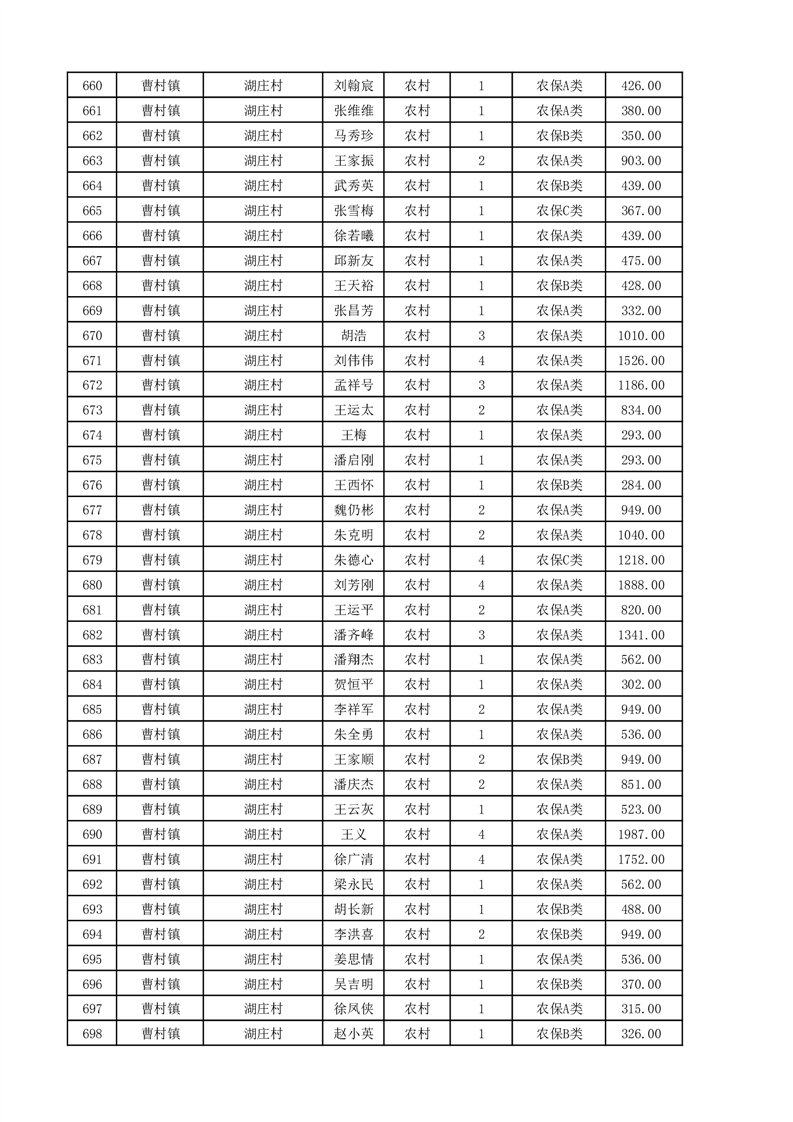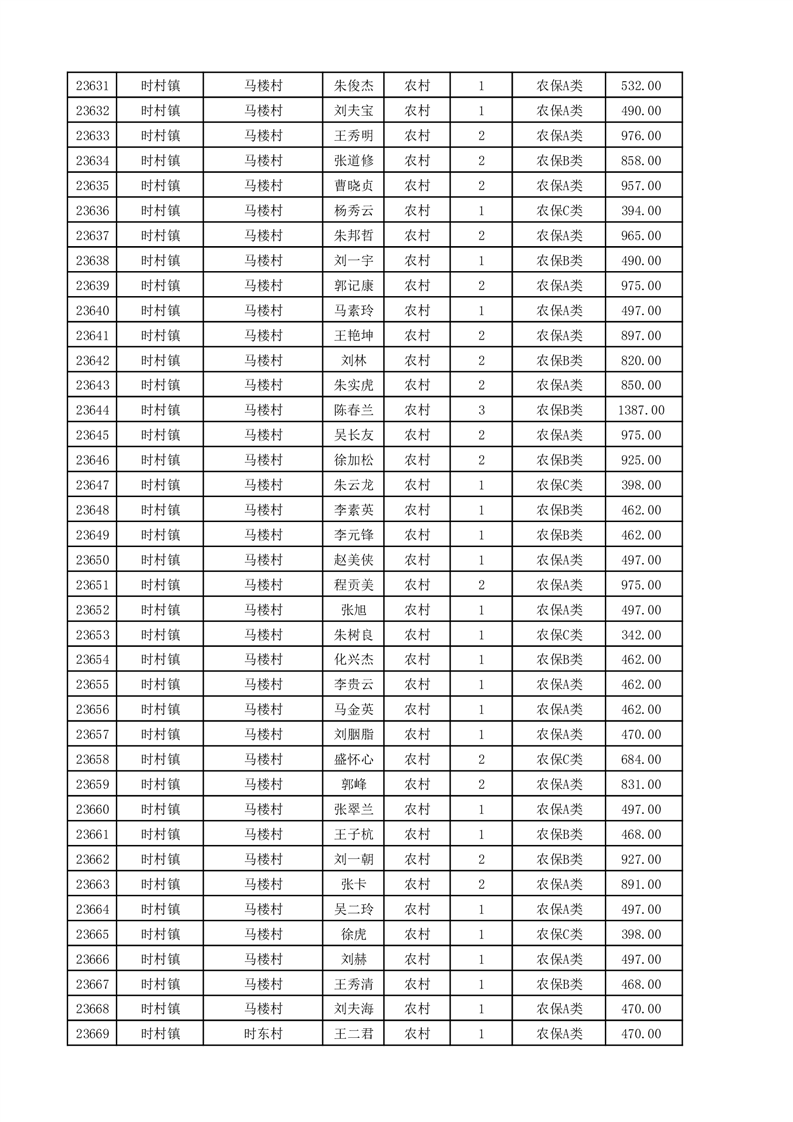 埇桥区2025年11月份农村低保花名册