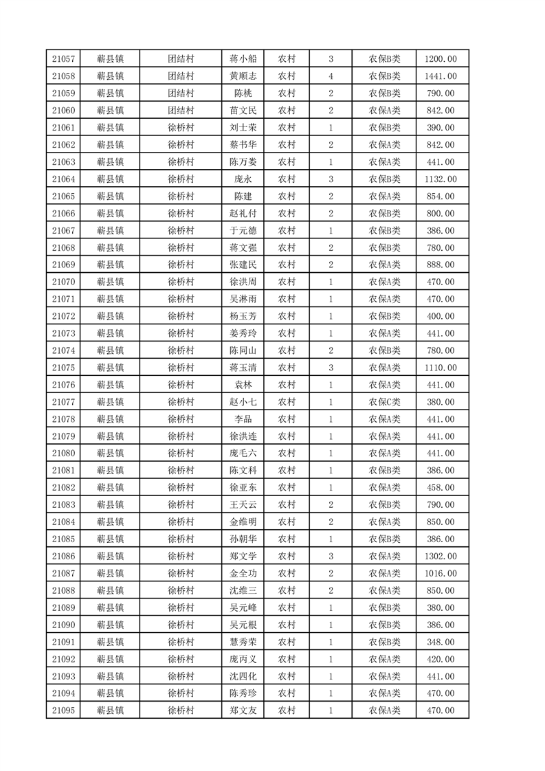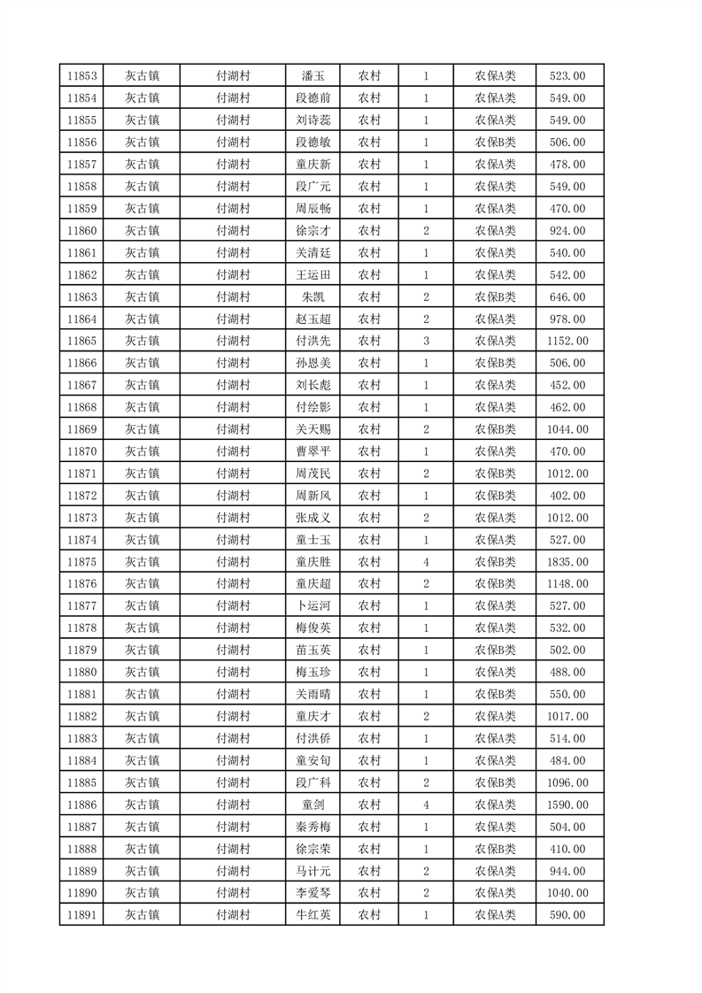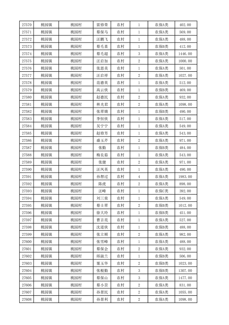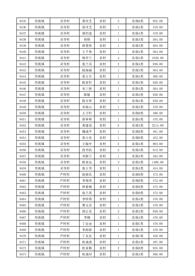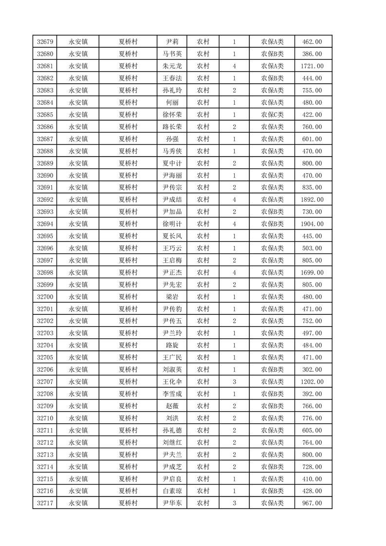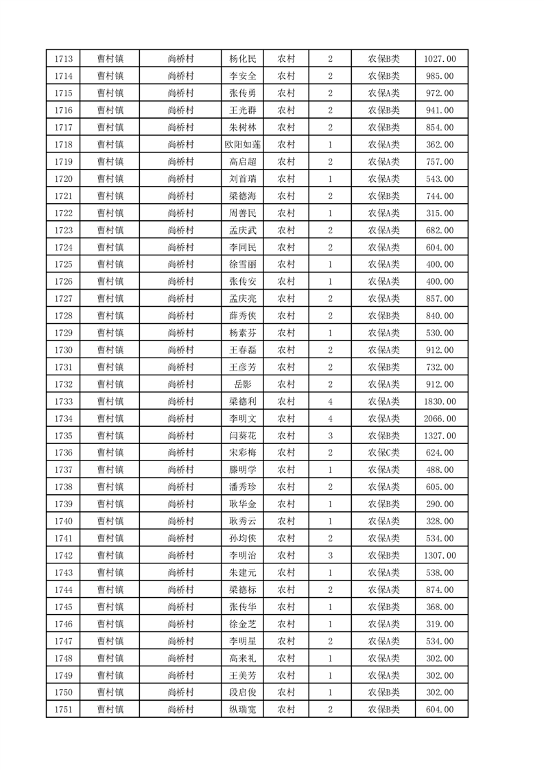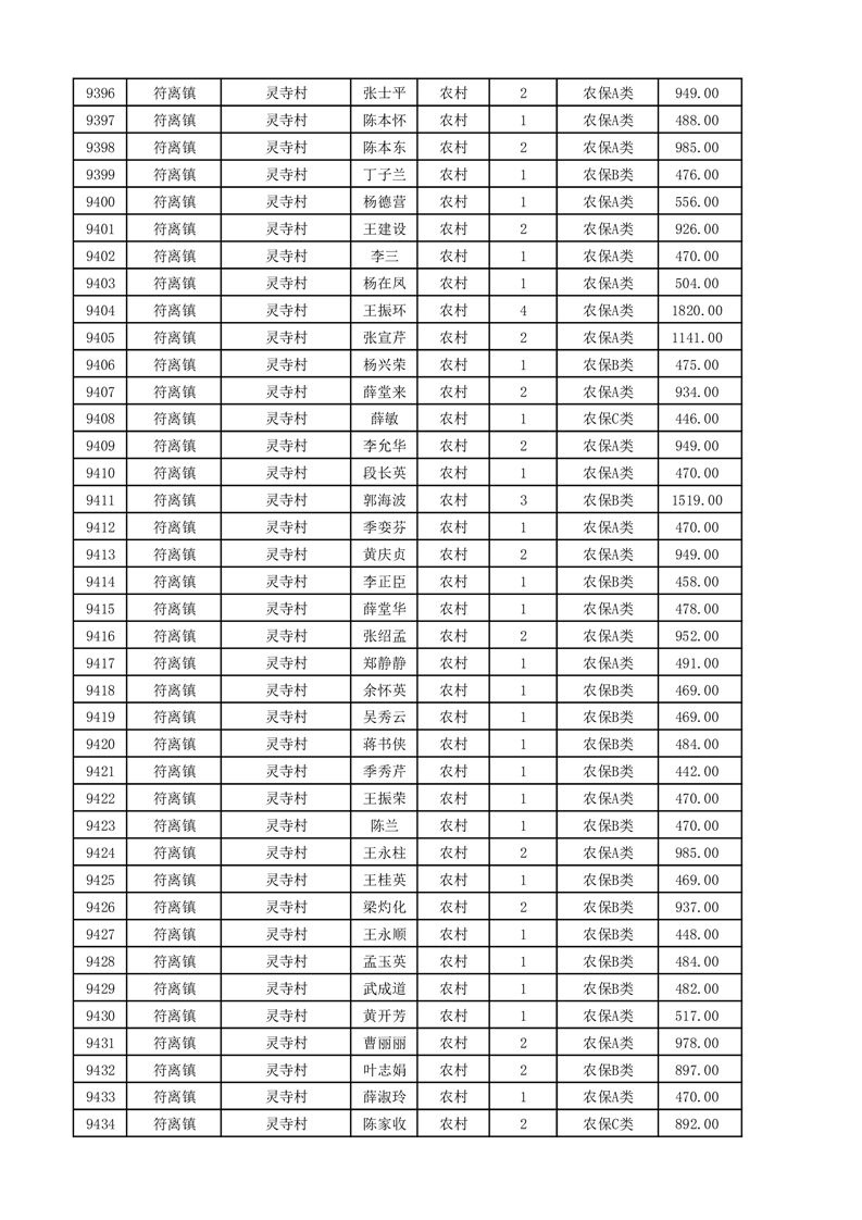 埇桥区2025年11月份农村低保花名册