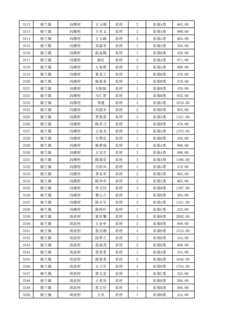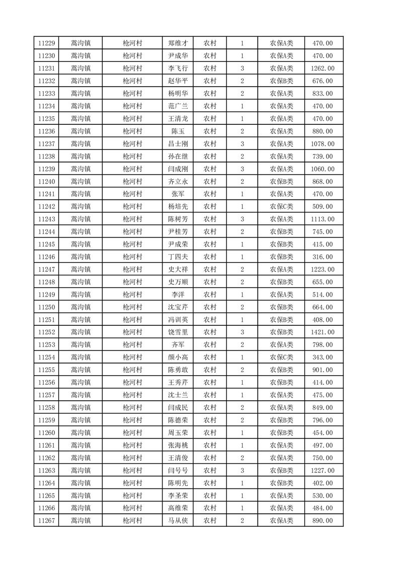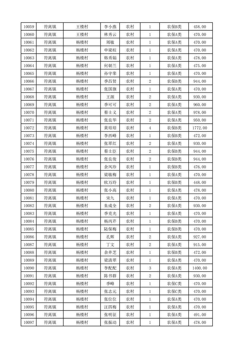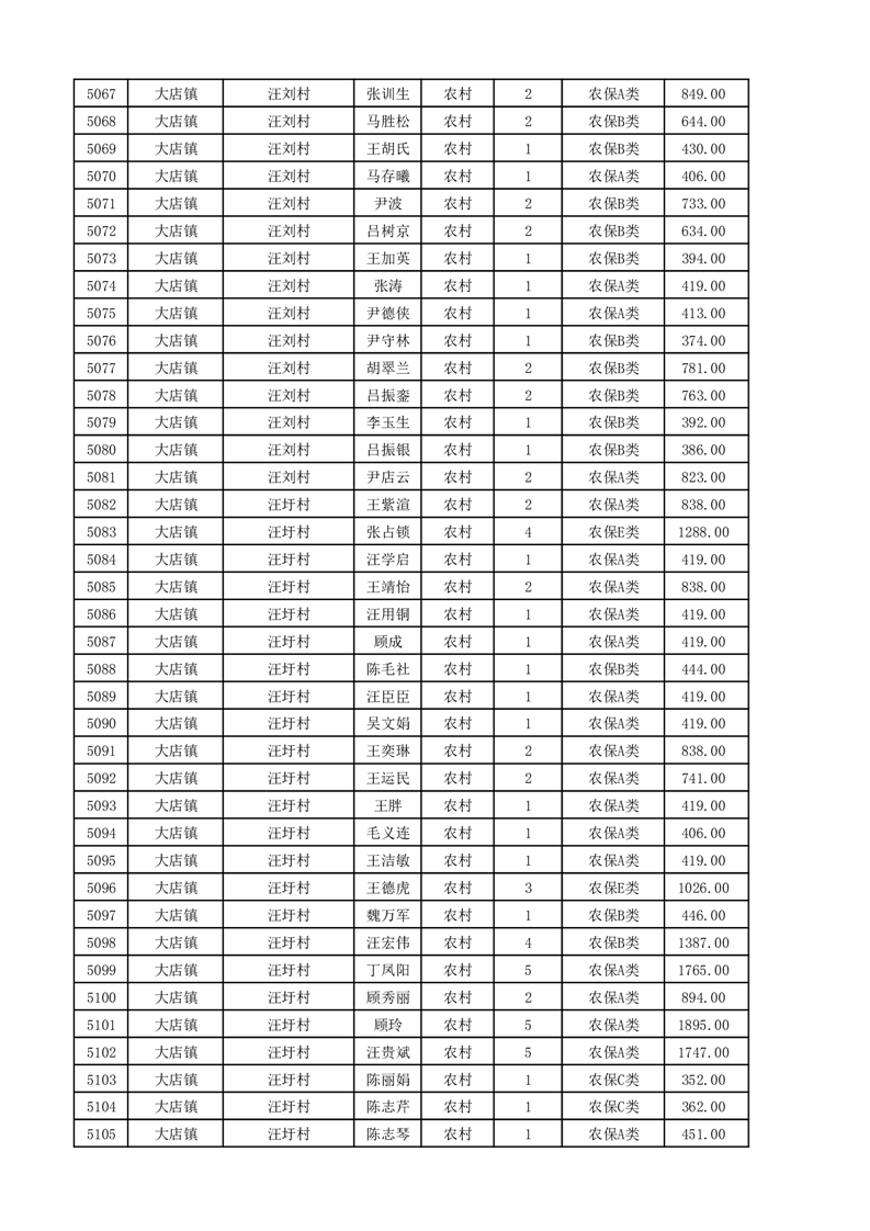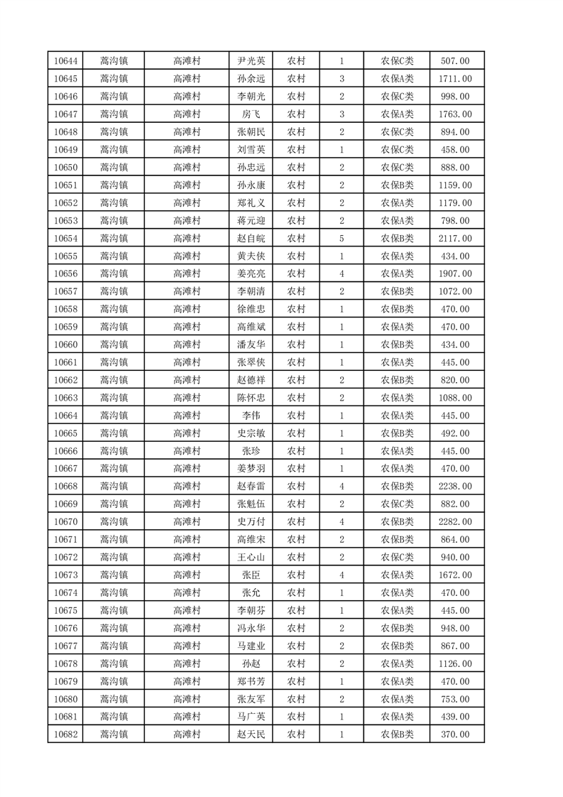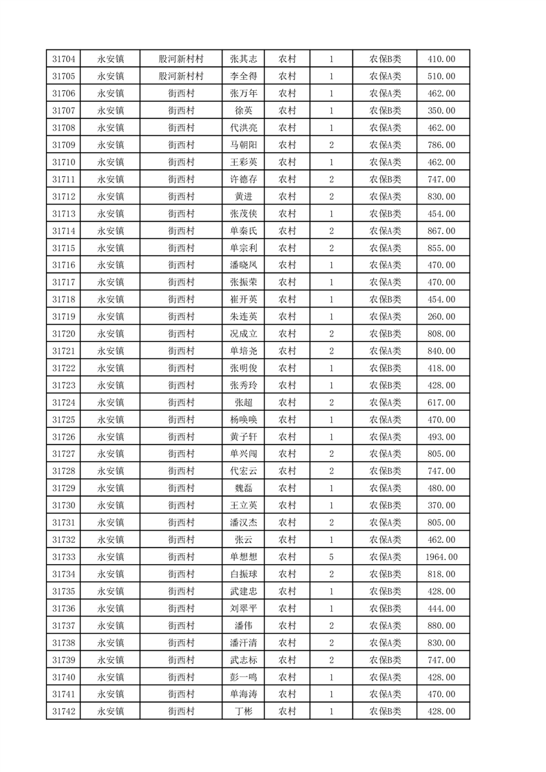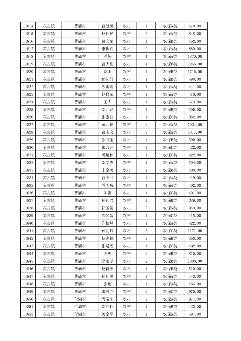 埇桥区2025年11月份农村低保花名册