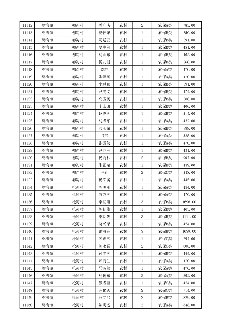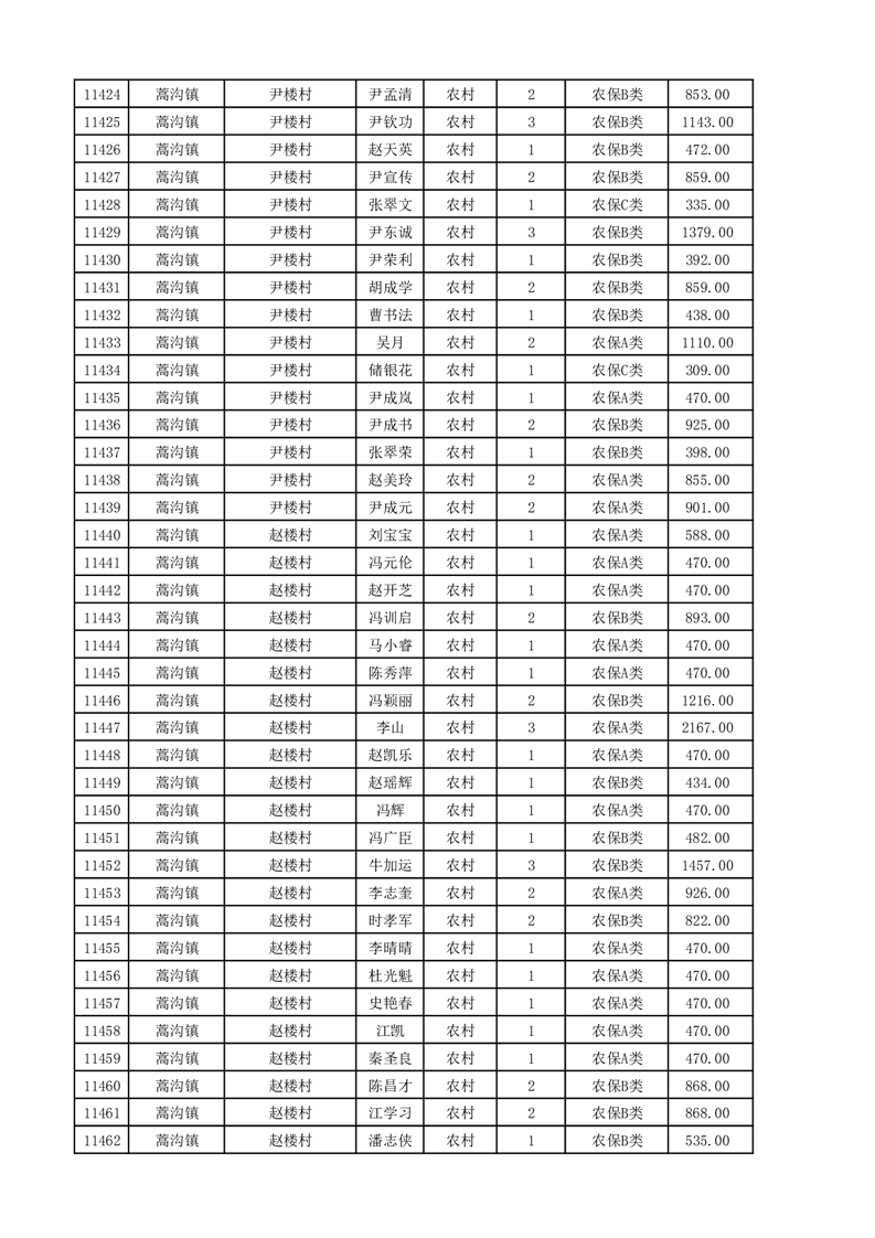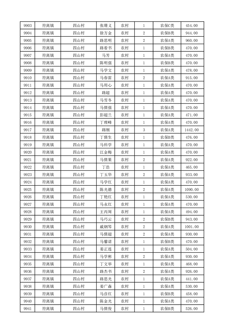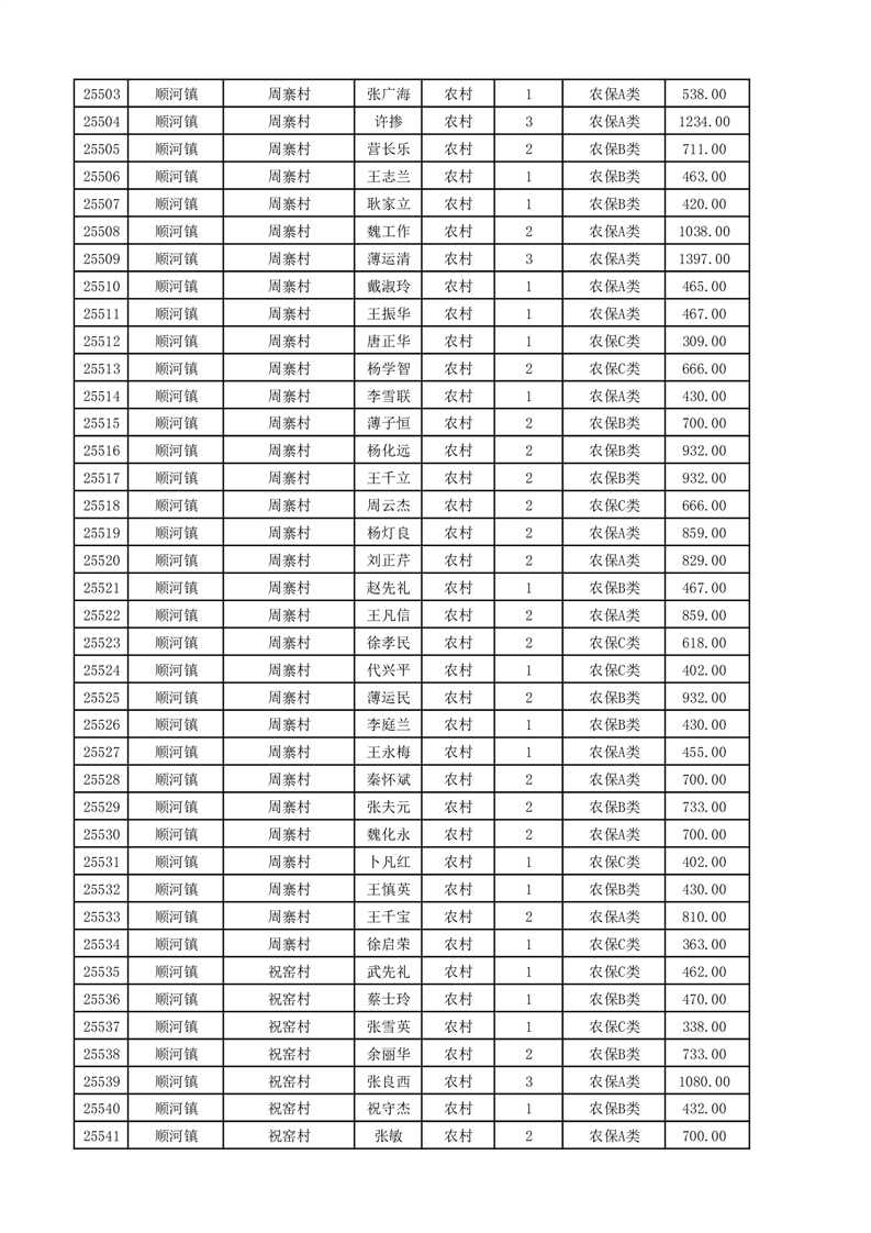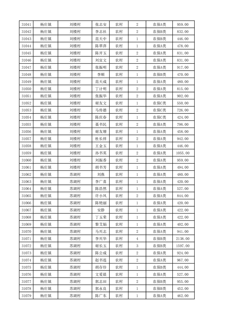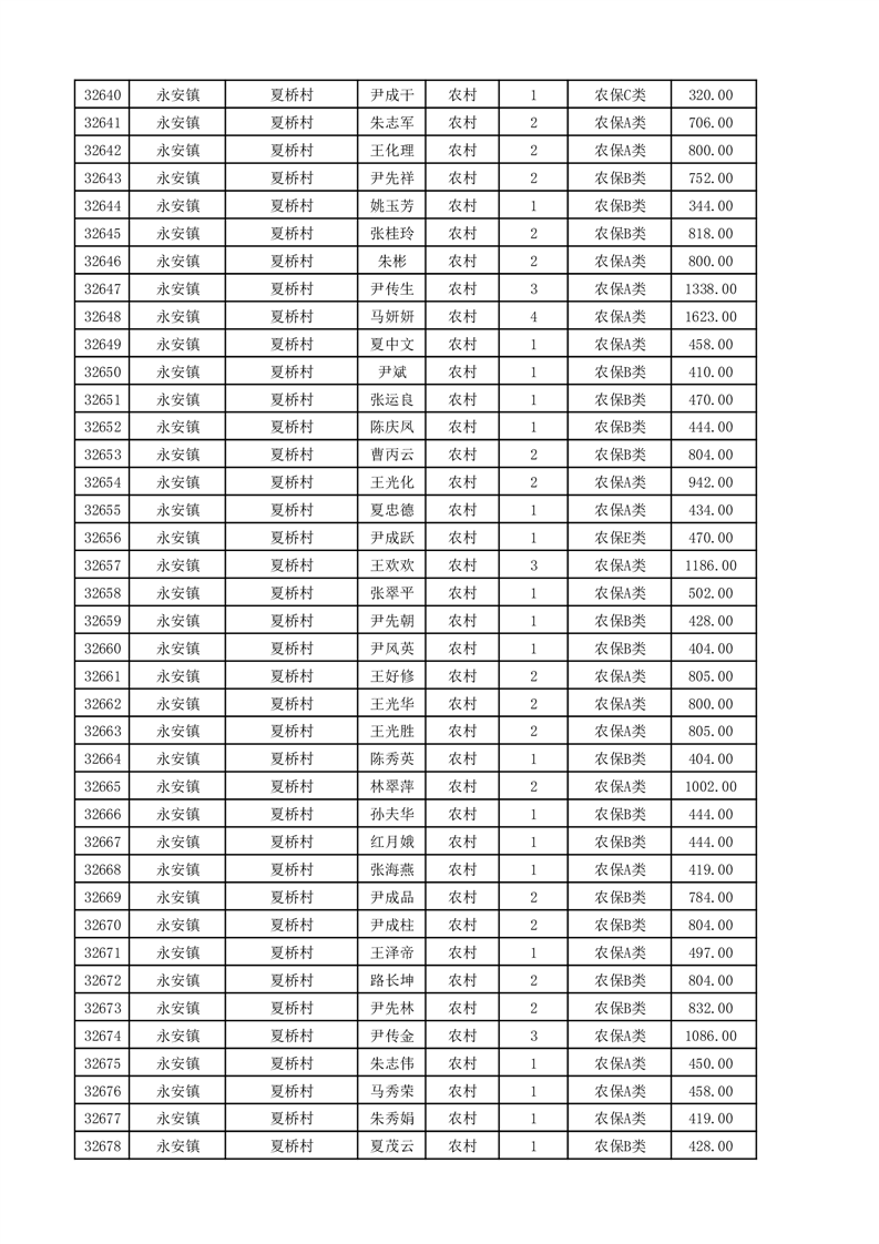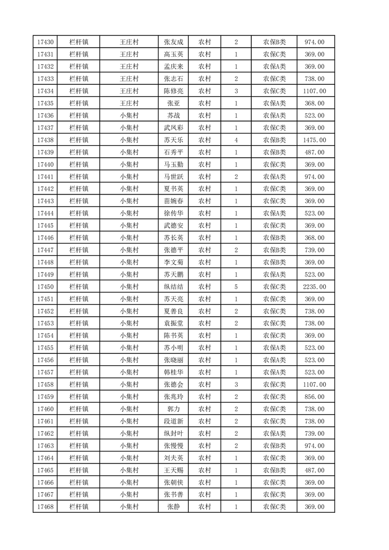 埇桥区2025年11月份农村低保花名册