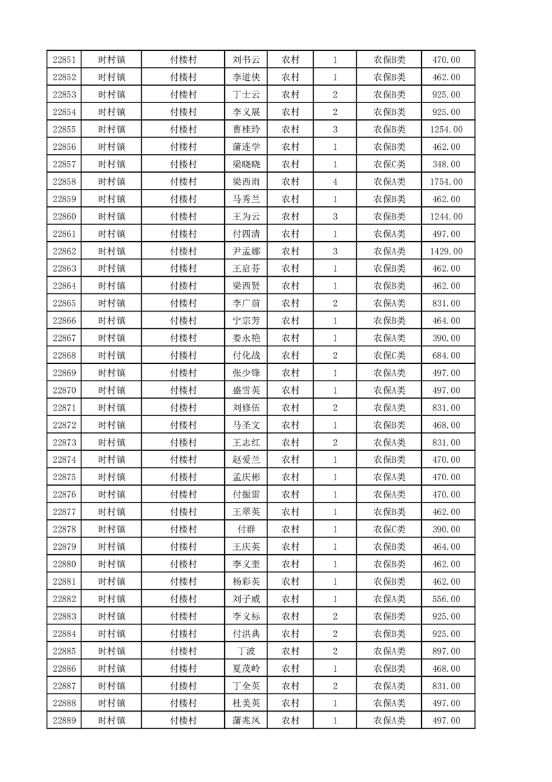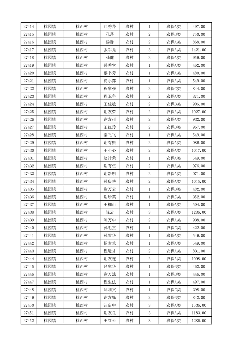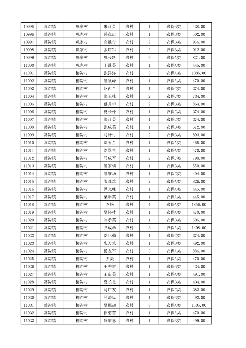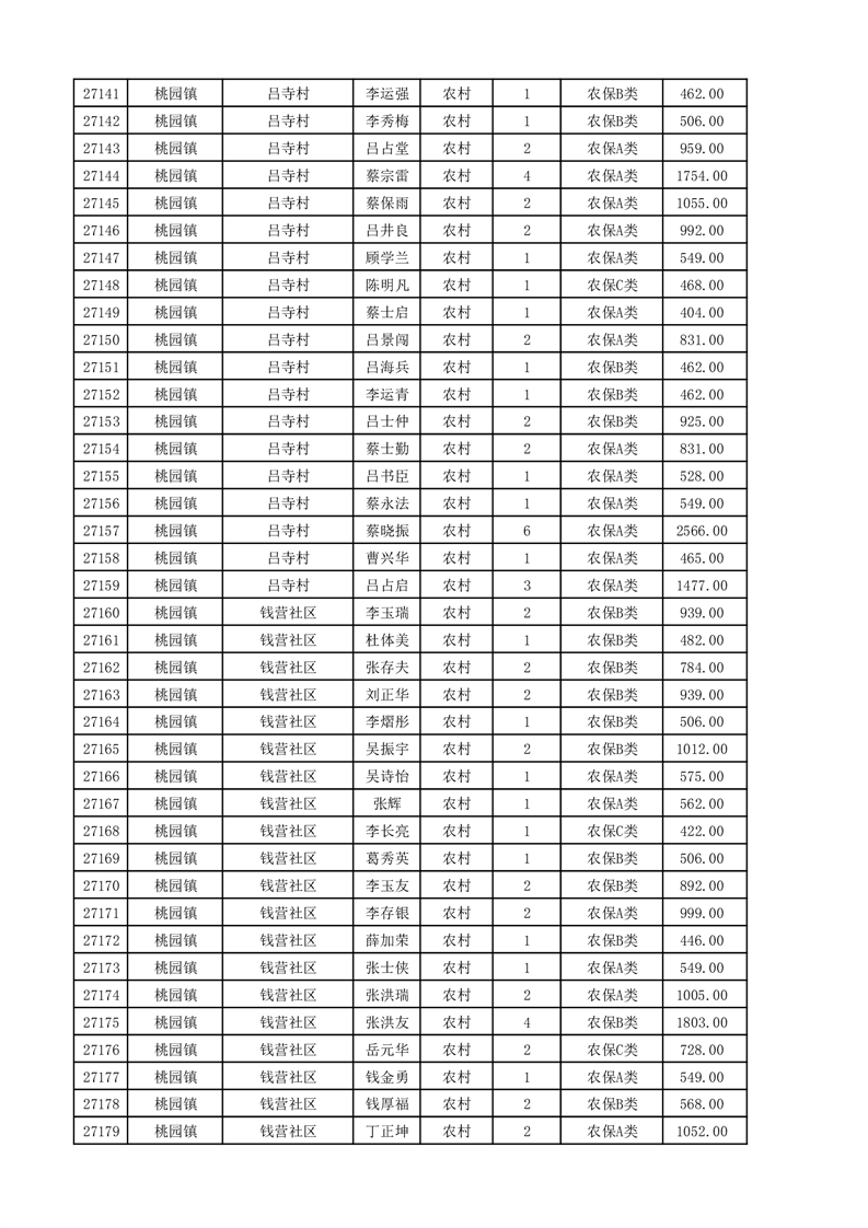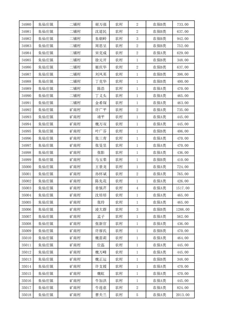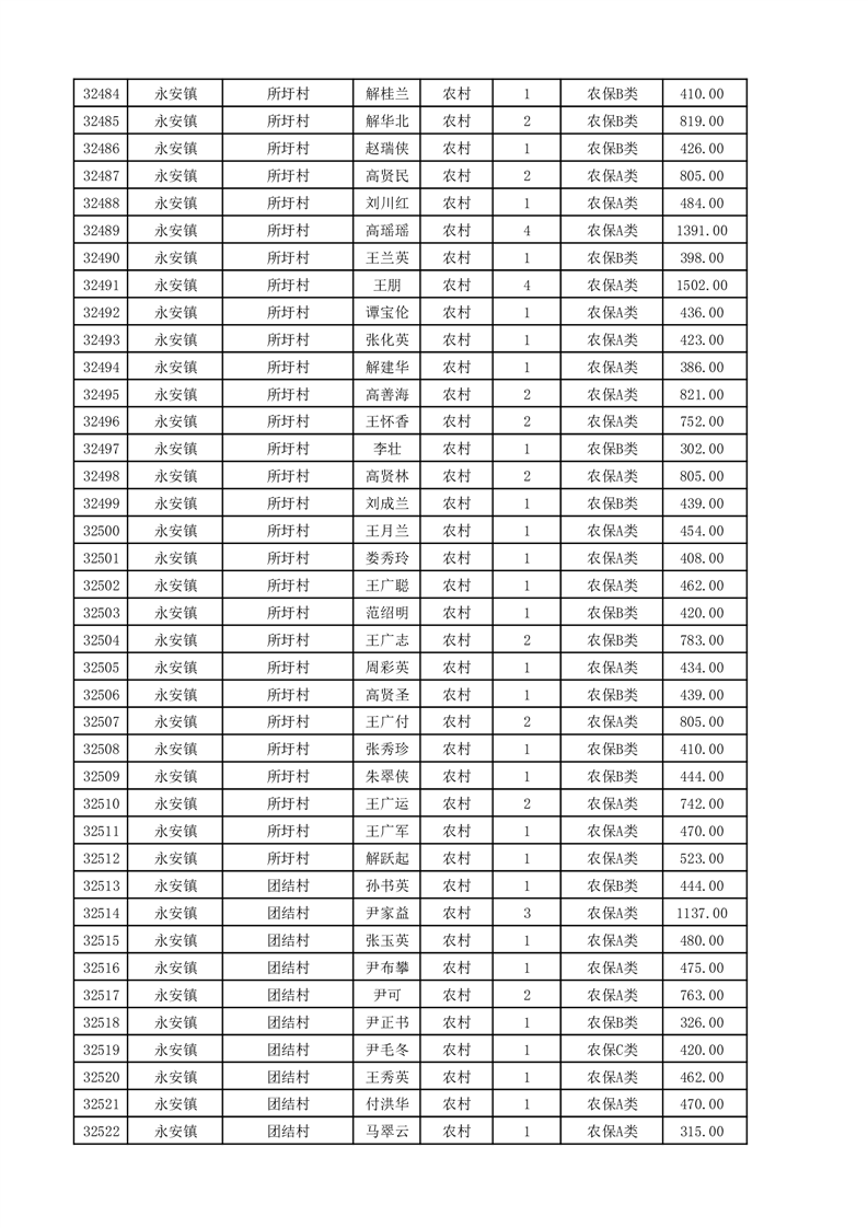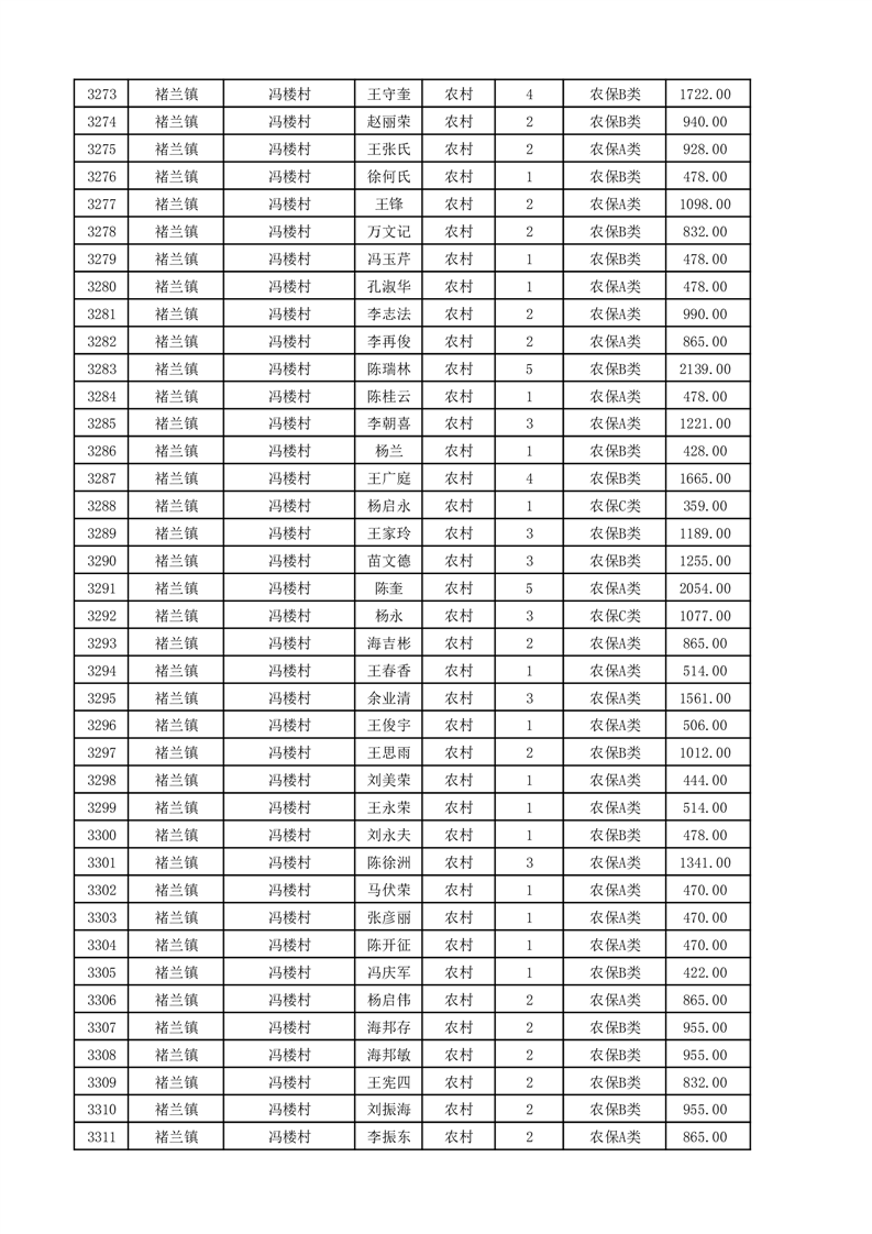 埇桥区2025年11月份农村低保花名册