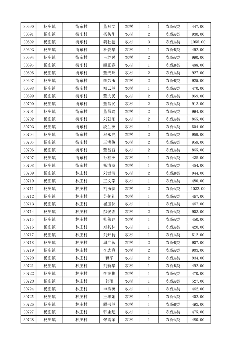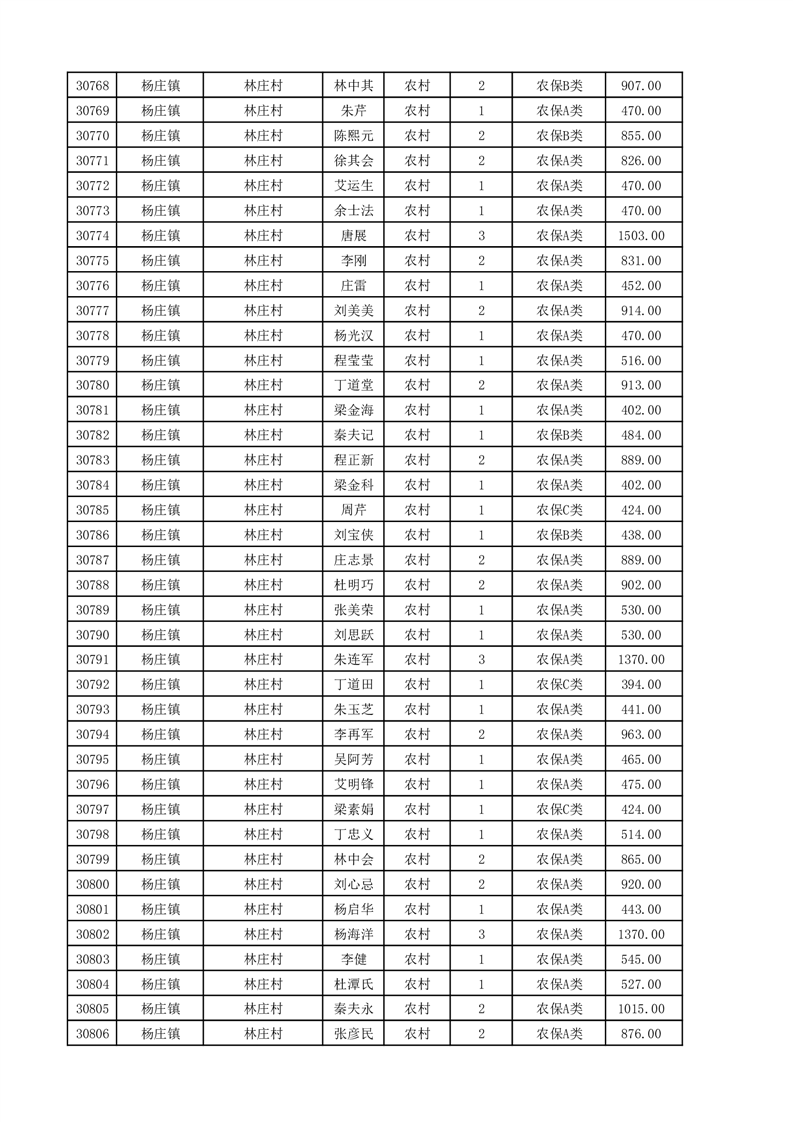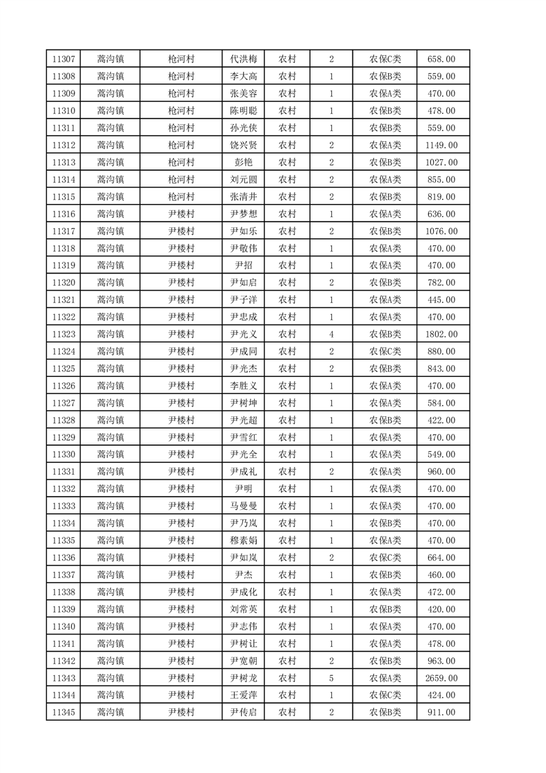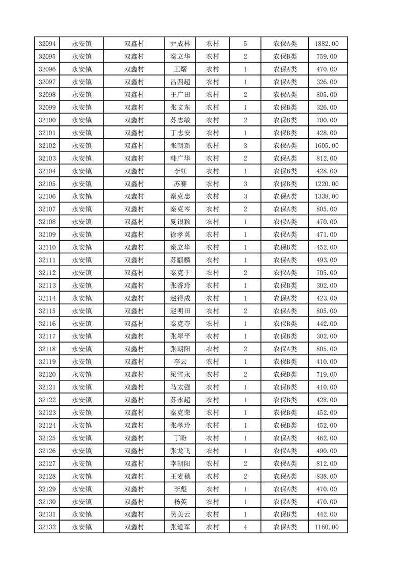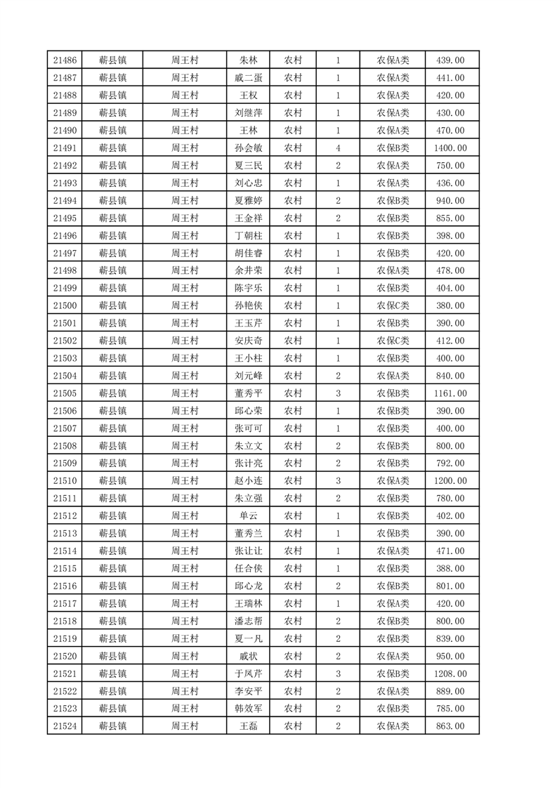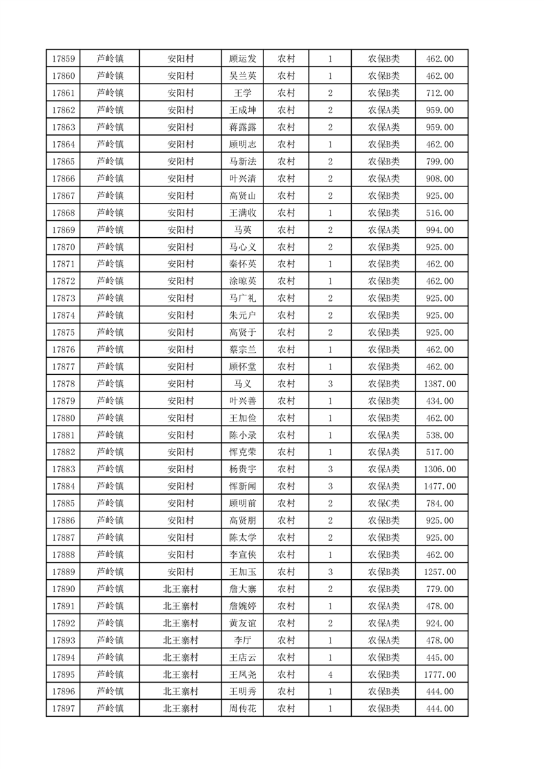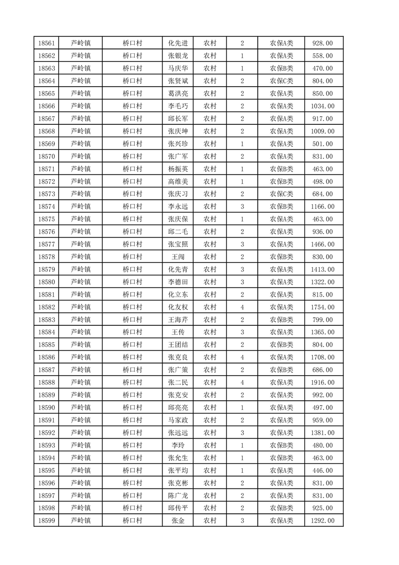 埇桥区2025年11月份农村低保花名册