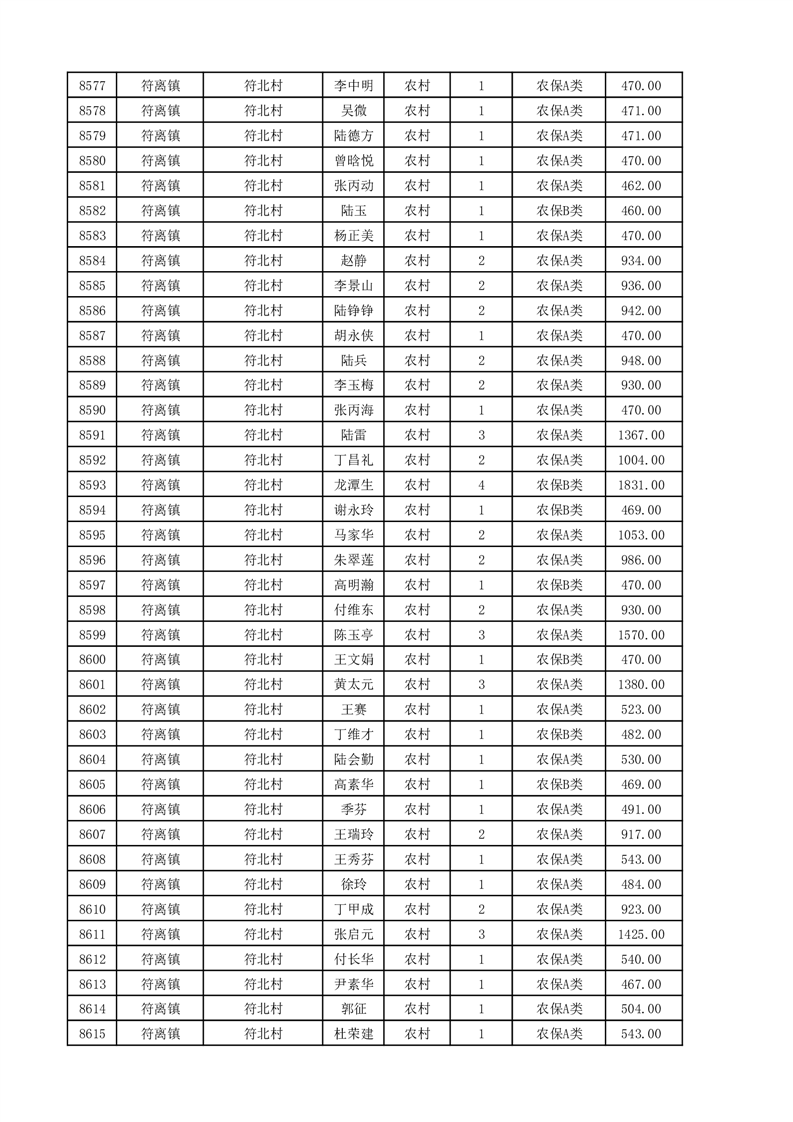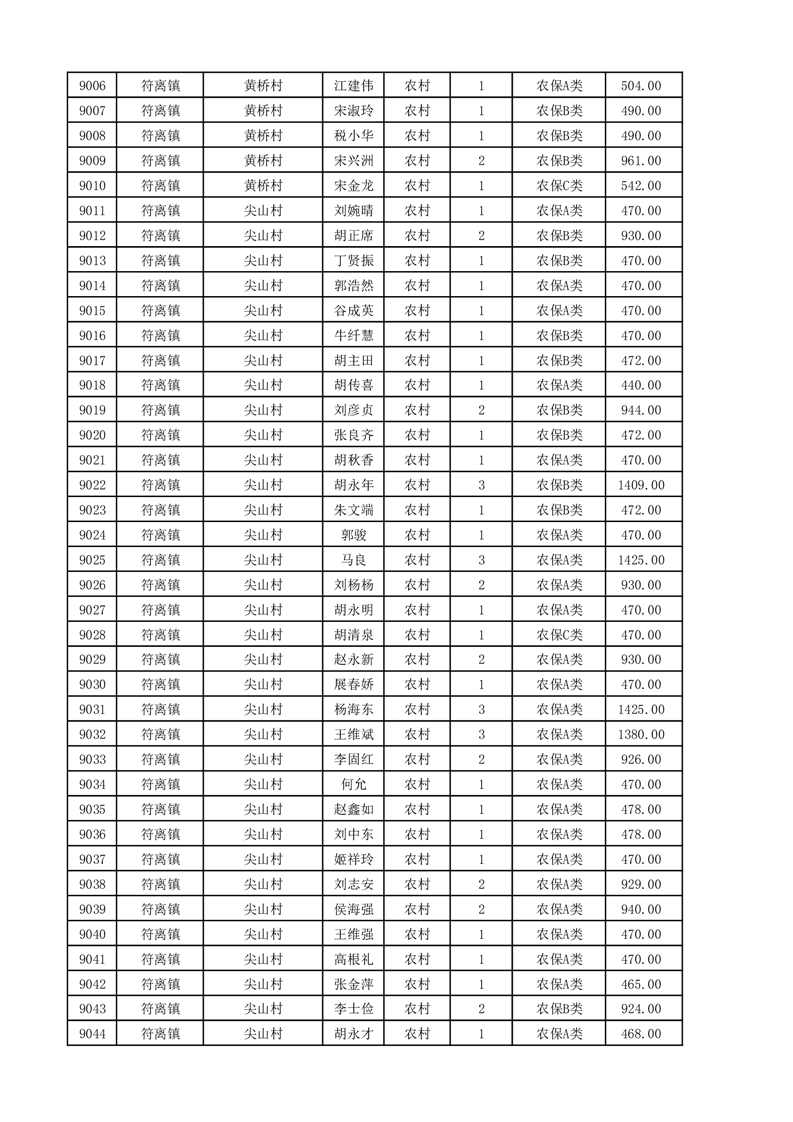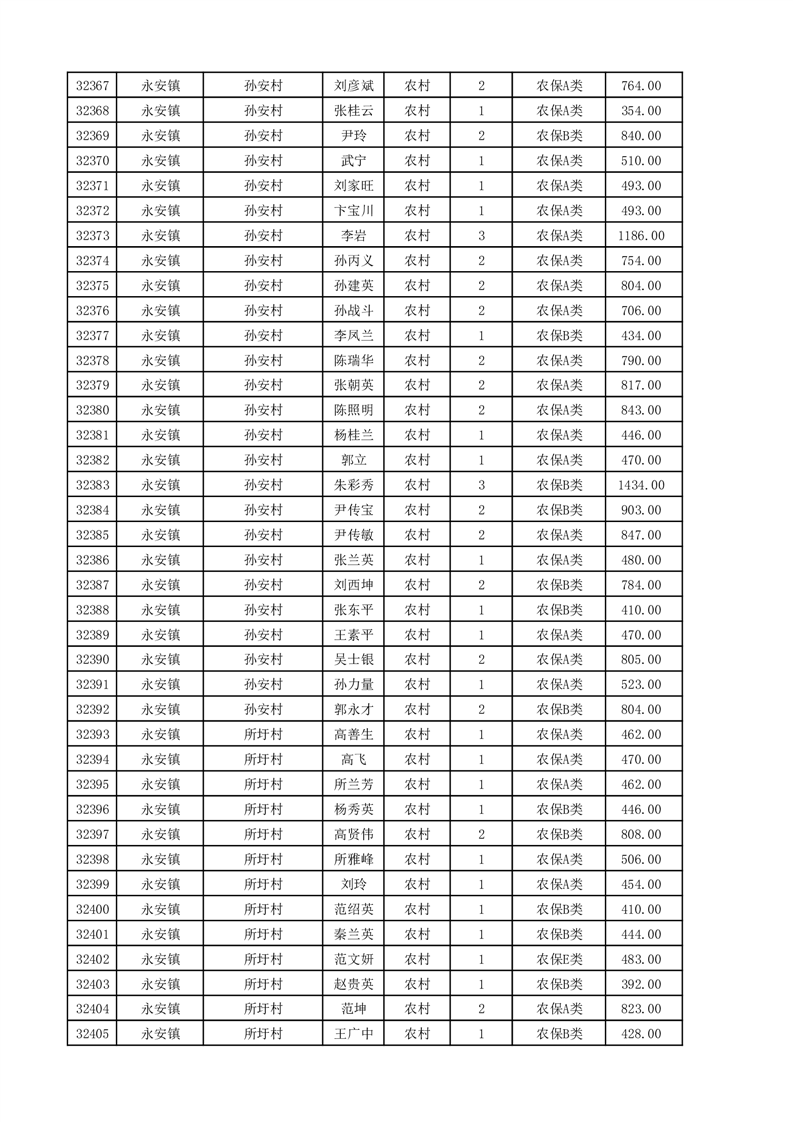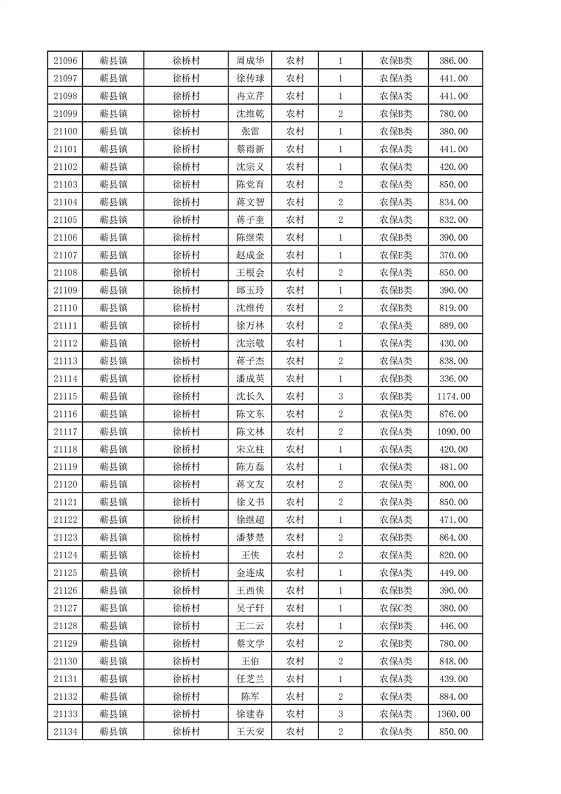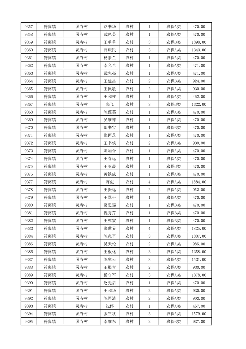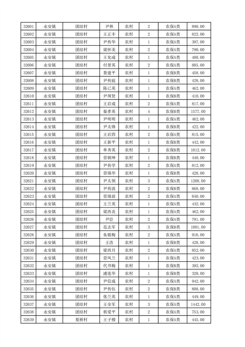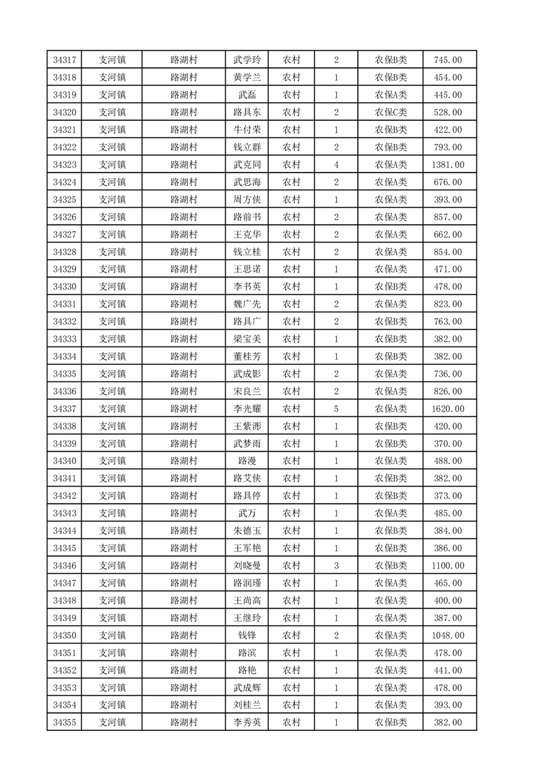 埇桥区2025年11月份农村低保花名册