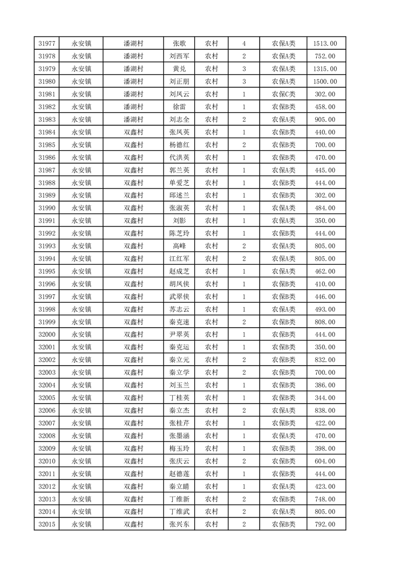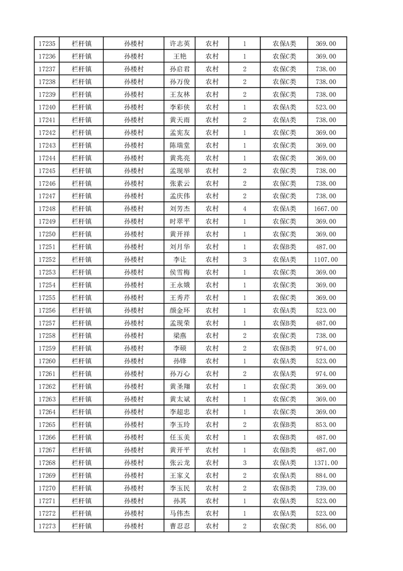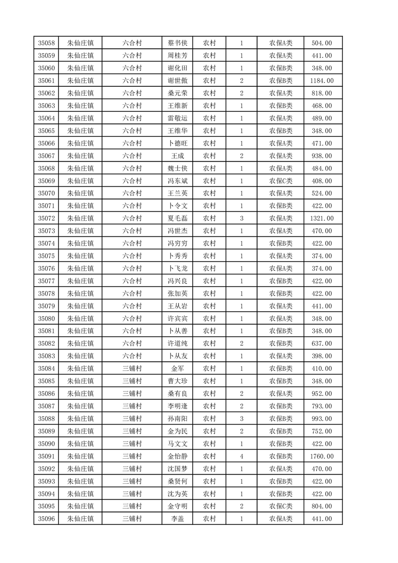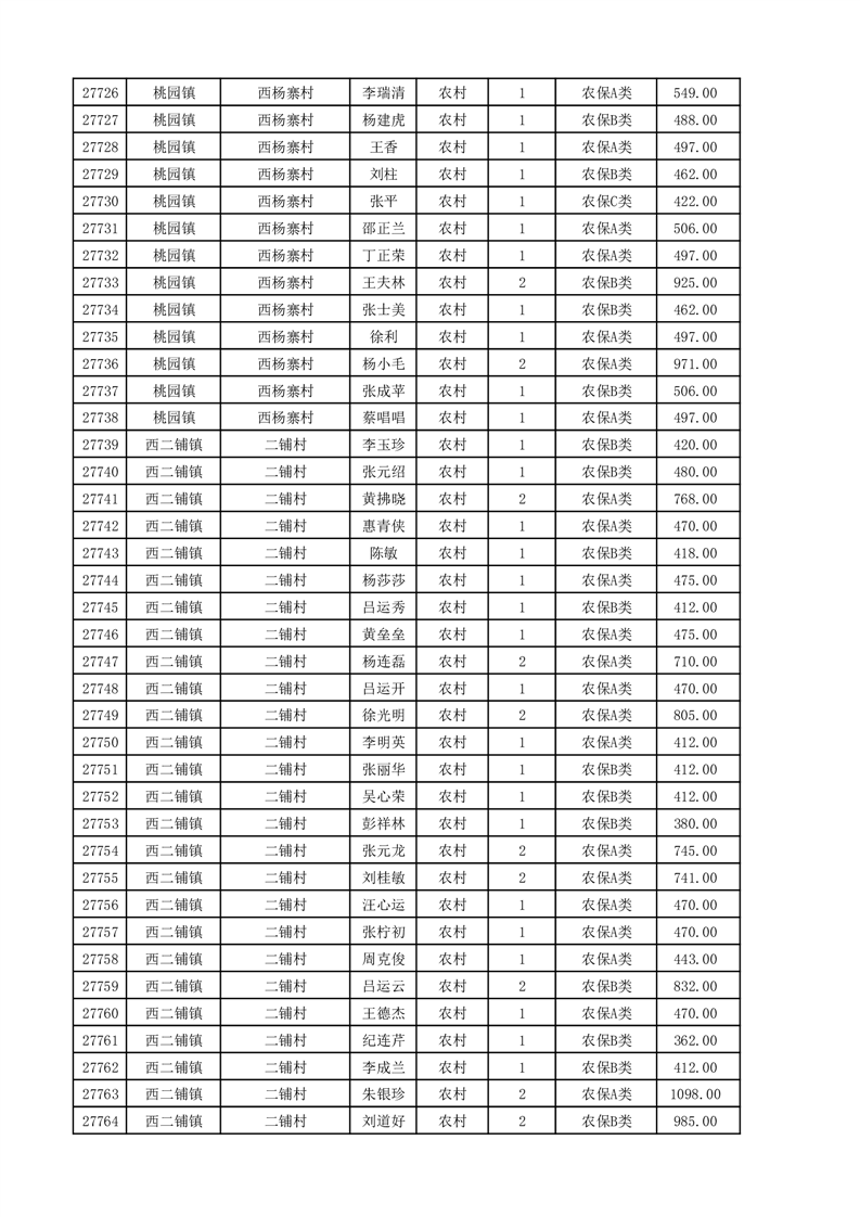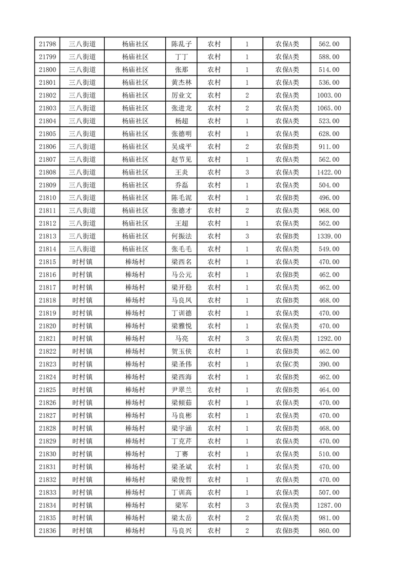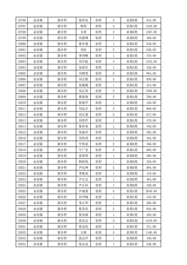 埇桥区2025年11月份农村低保花名册