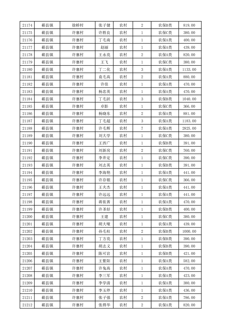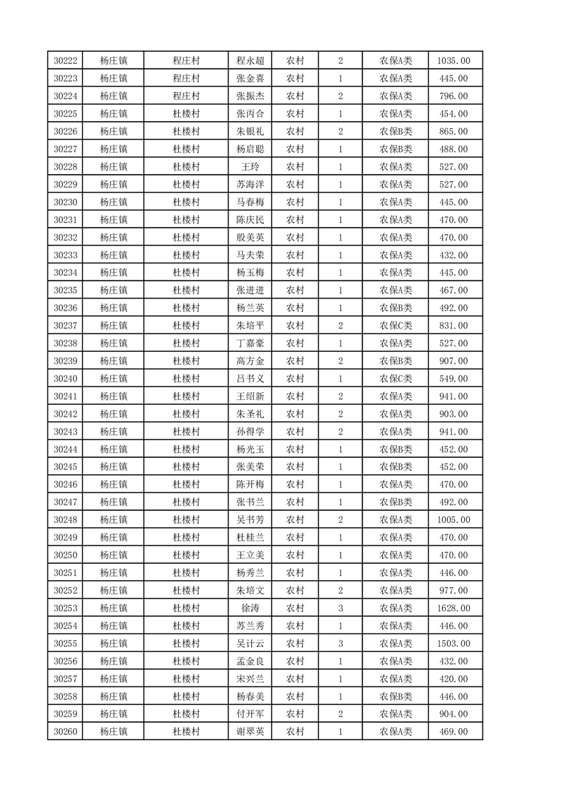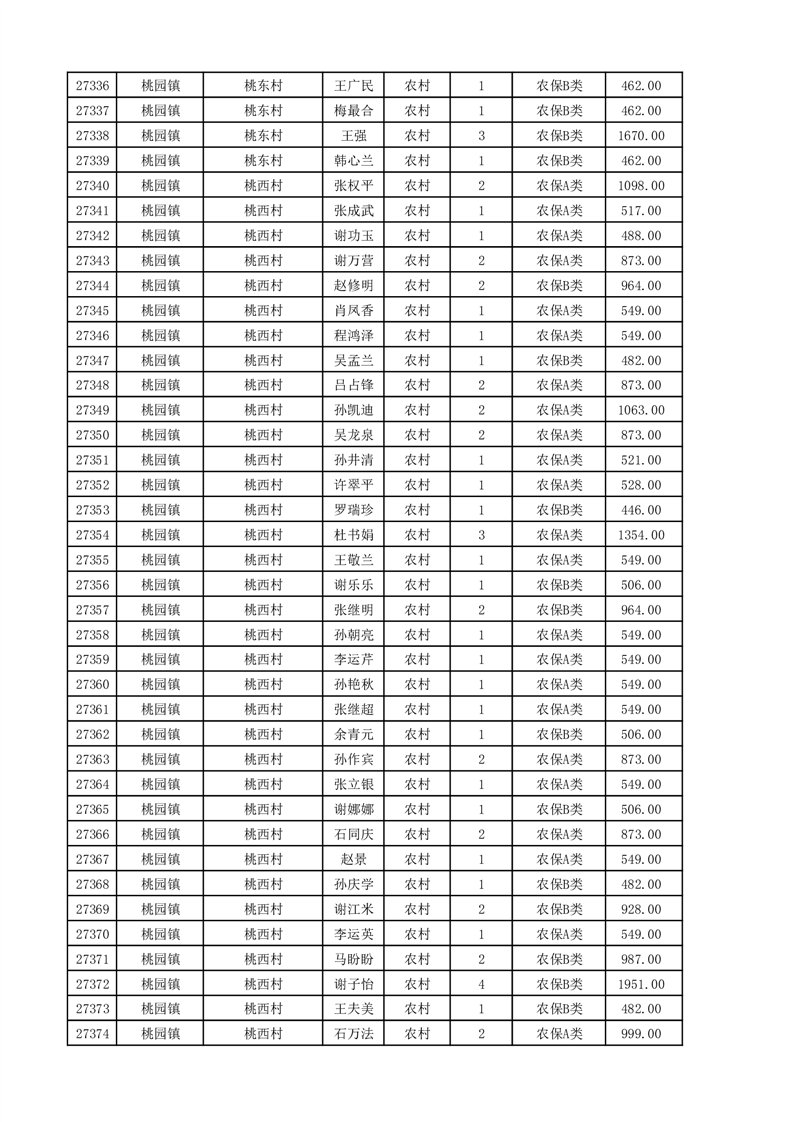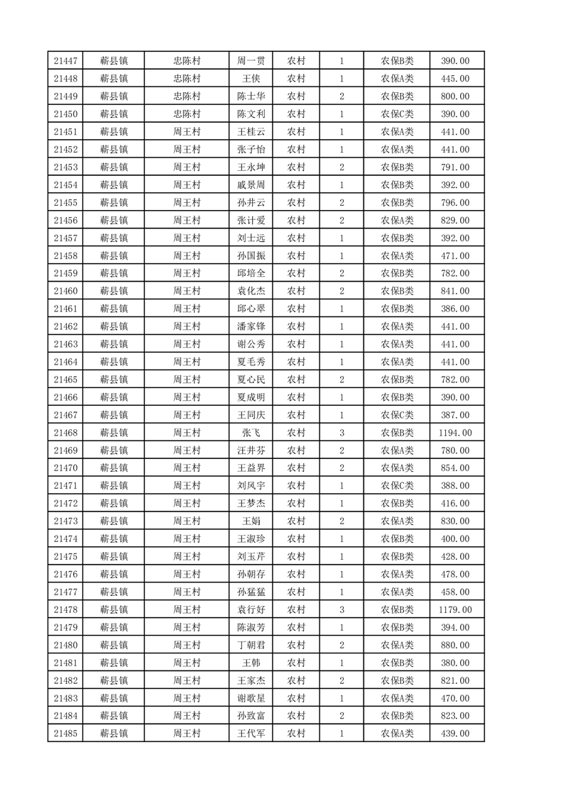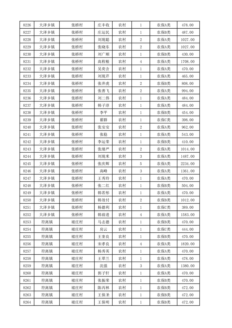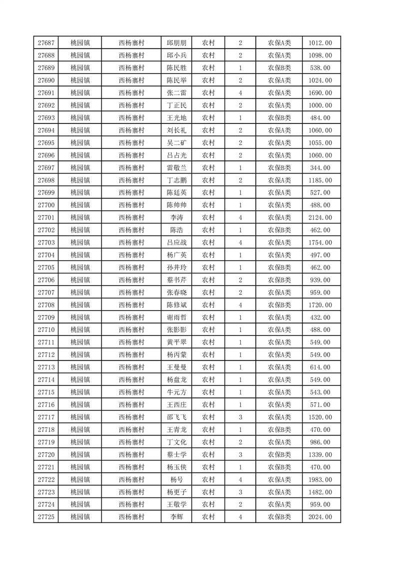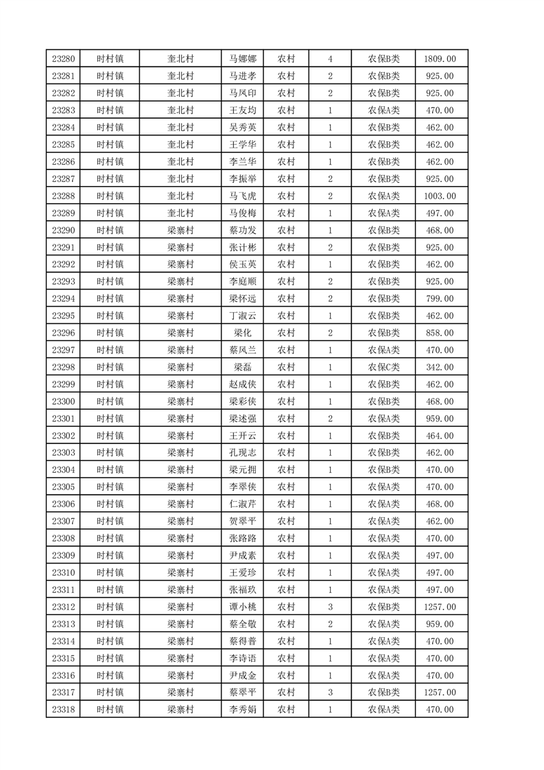 埇桥区2025年11月份农村低保花名册