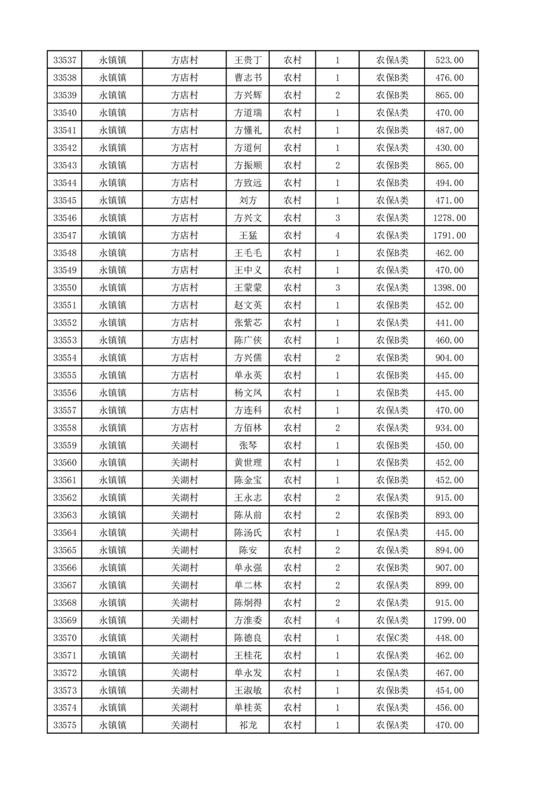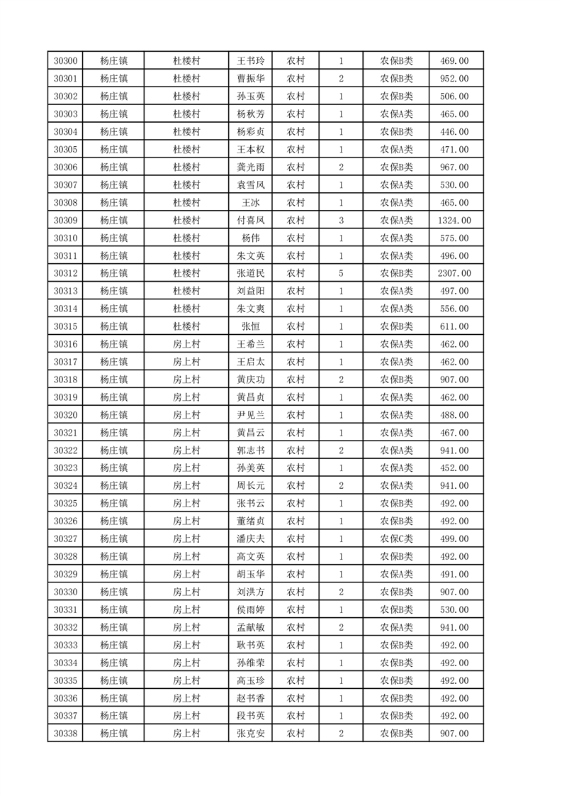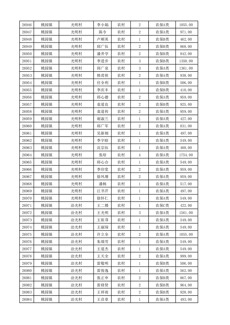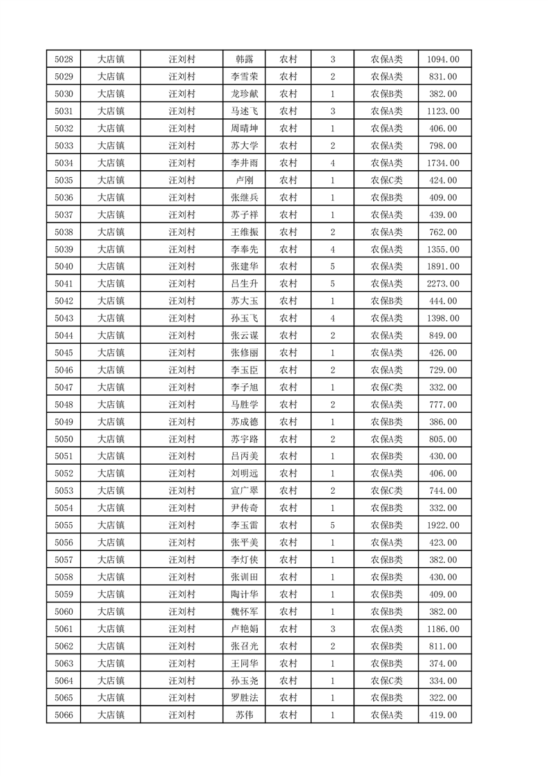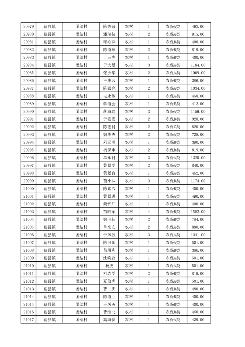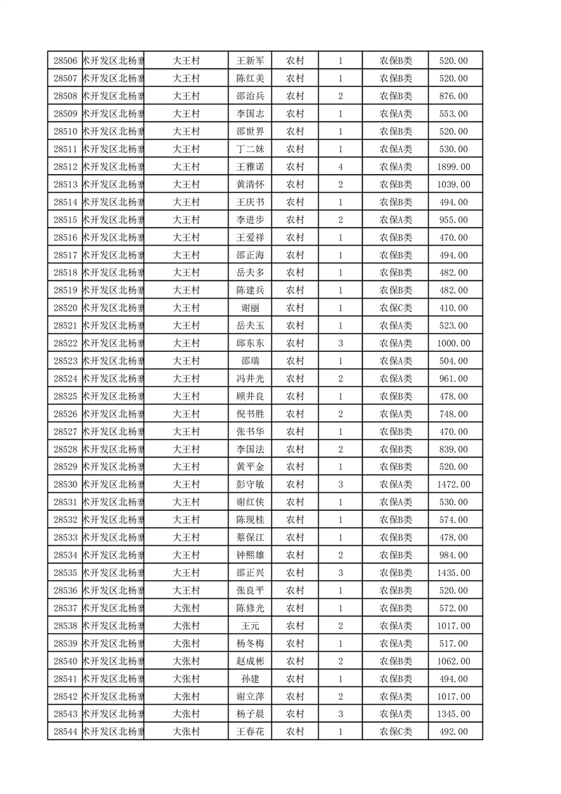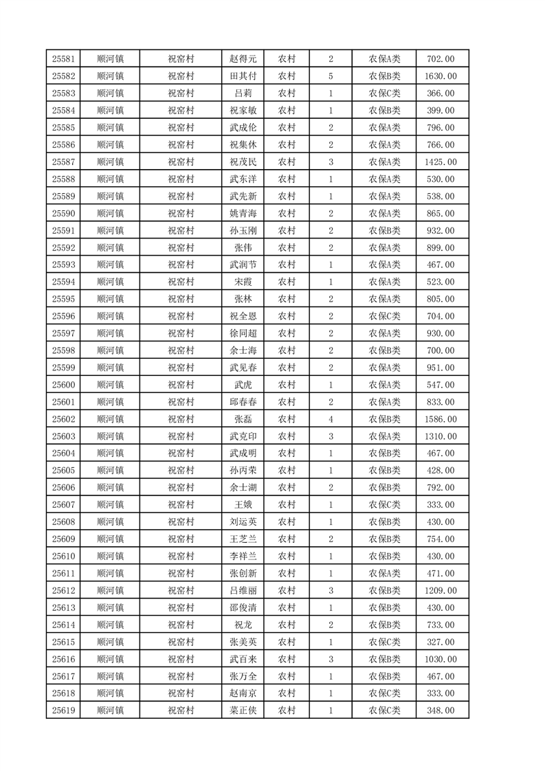 埇桥区2025年11月份农村低保花名册