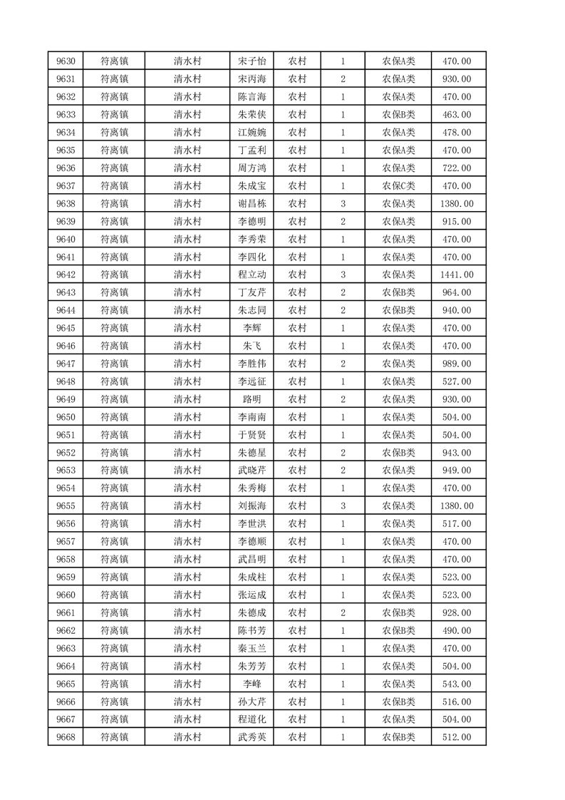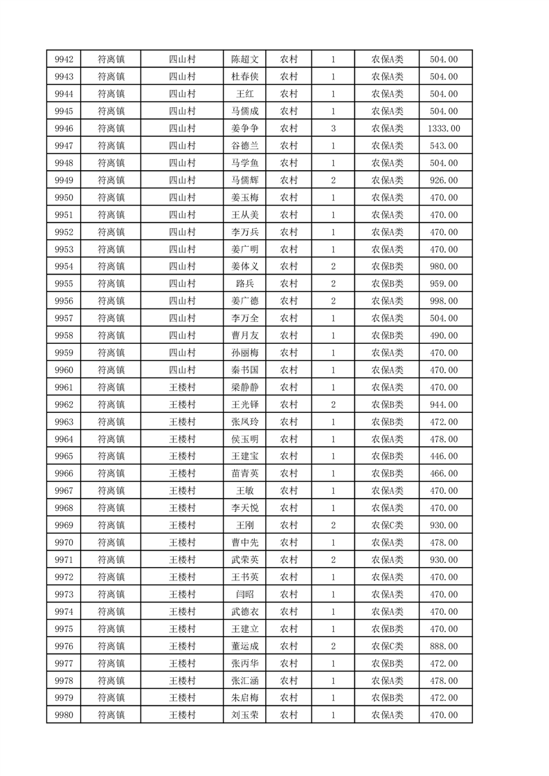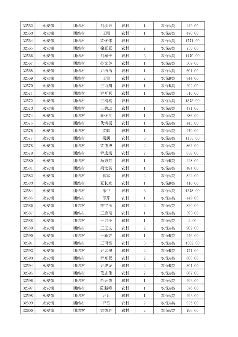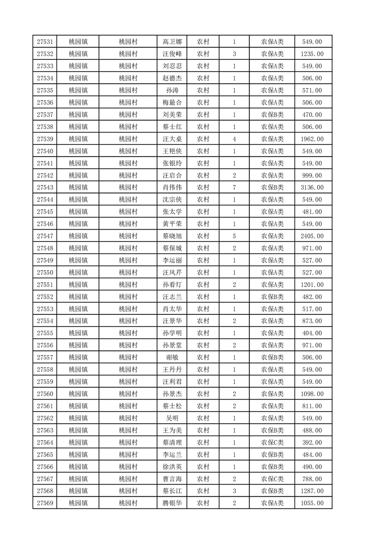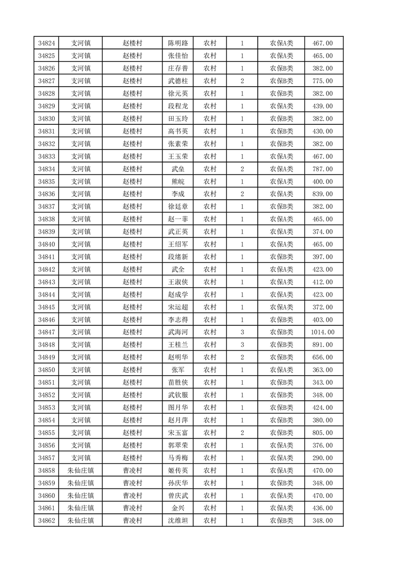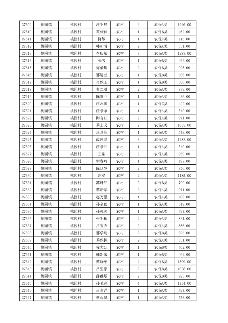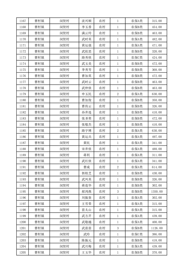 埇桥区2025年11月份农村低保花名册