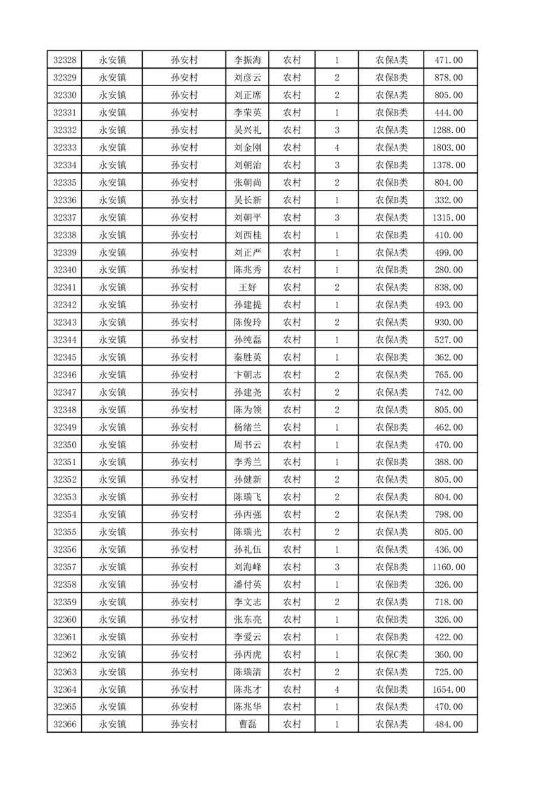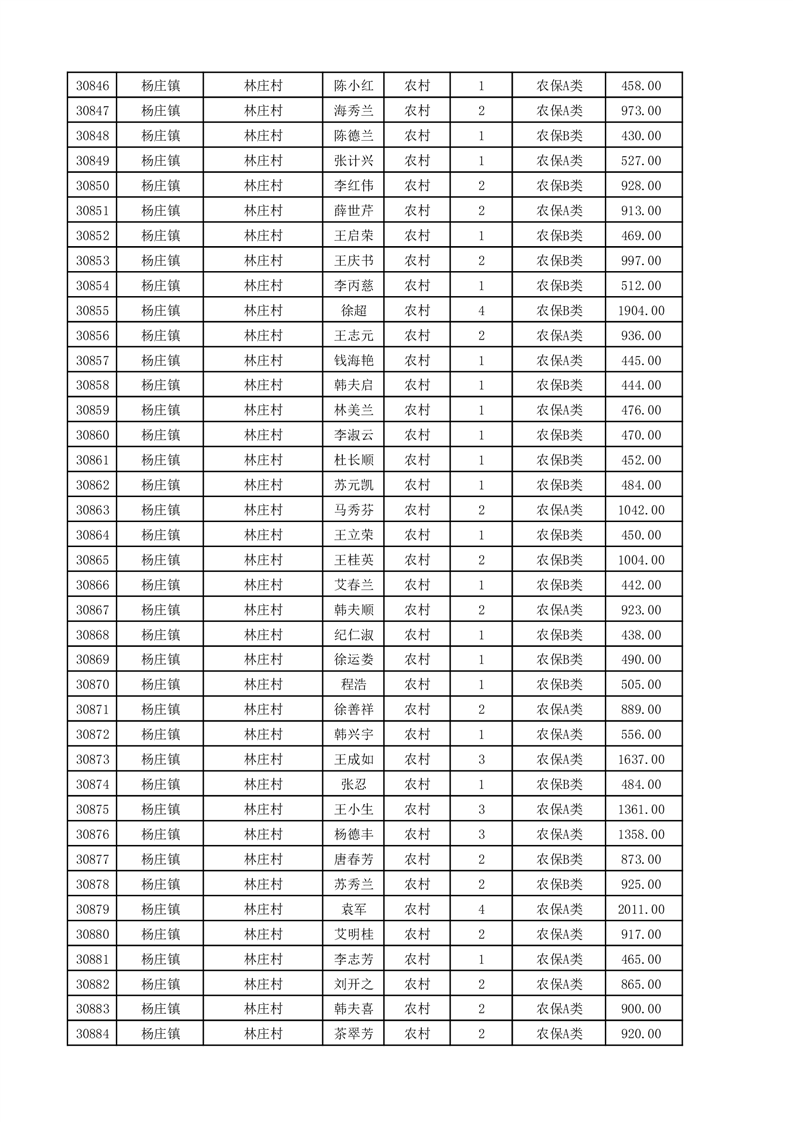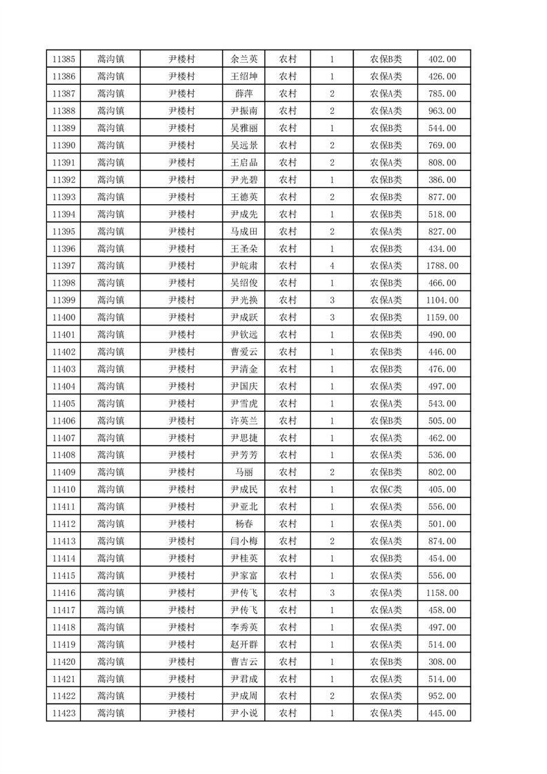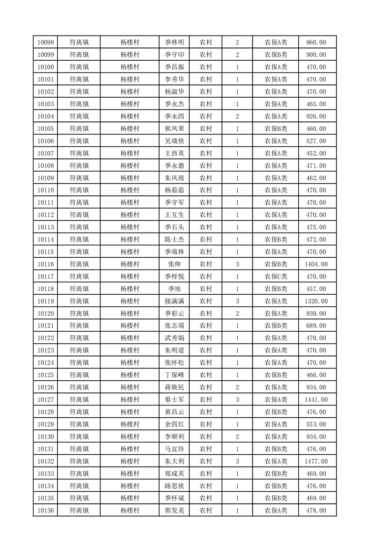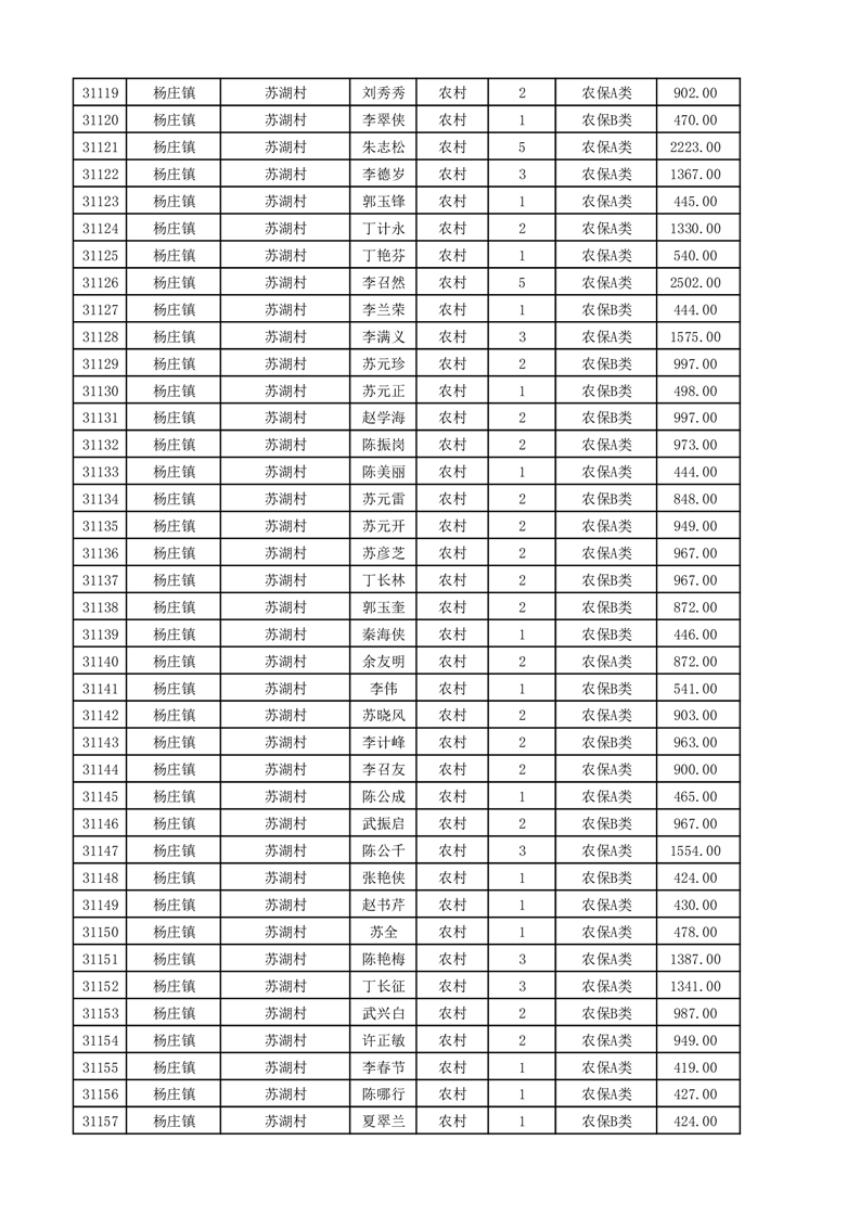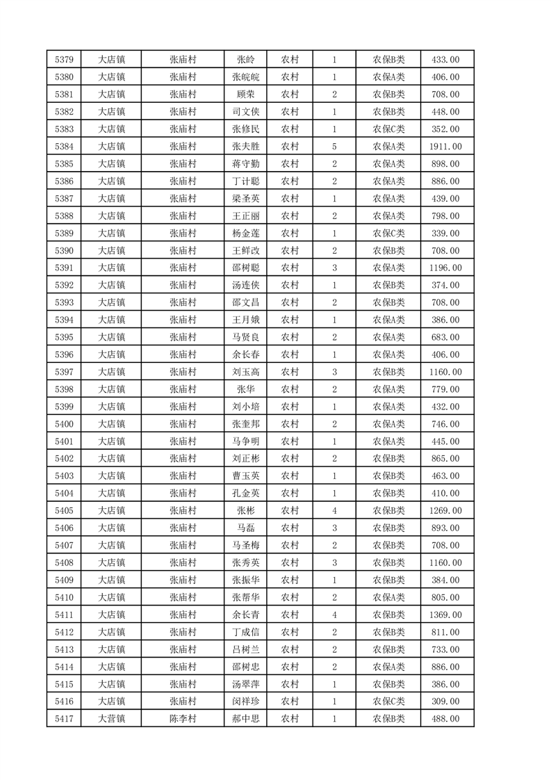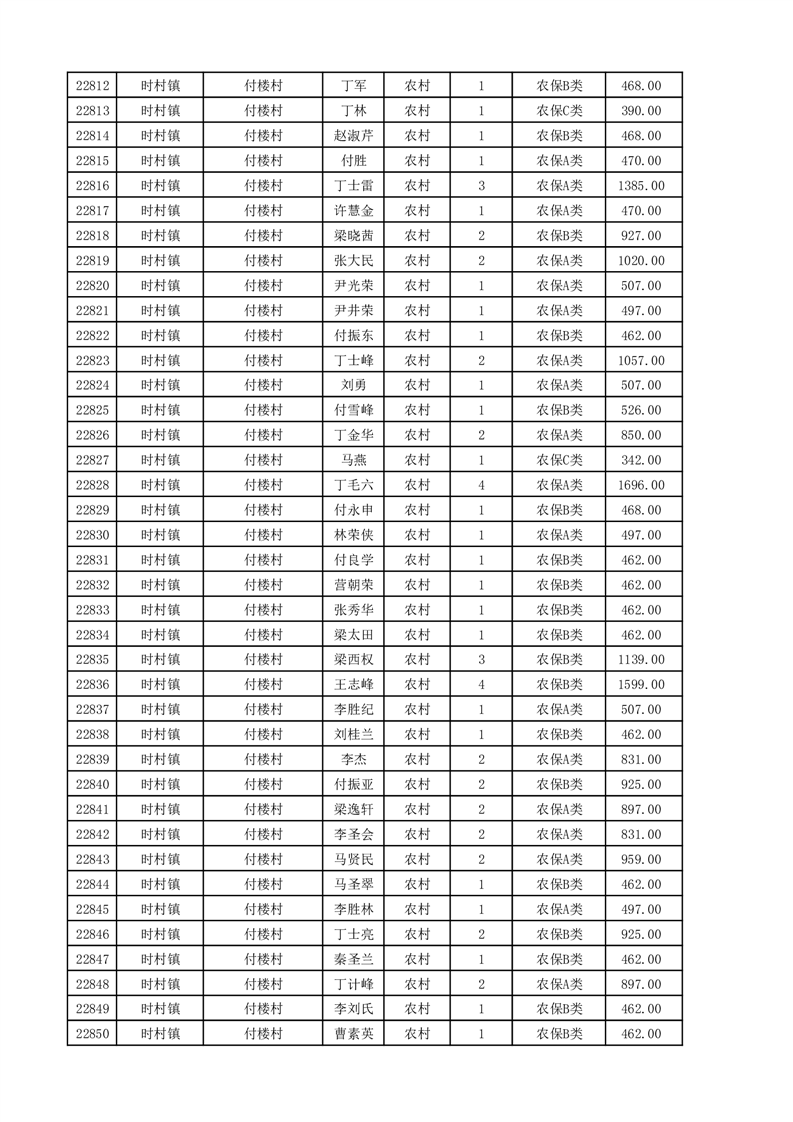 埇桥区2025年11月份农村低保花名册