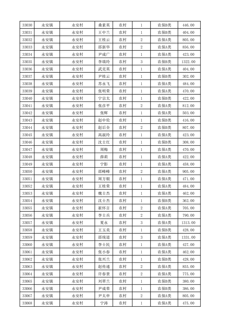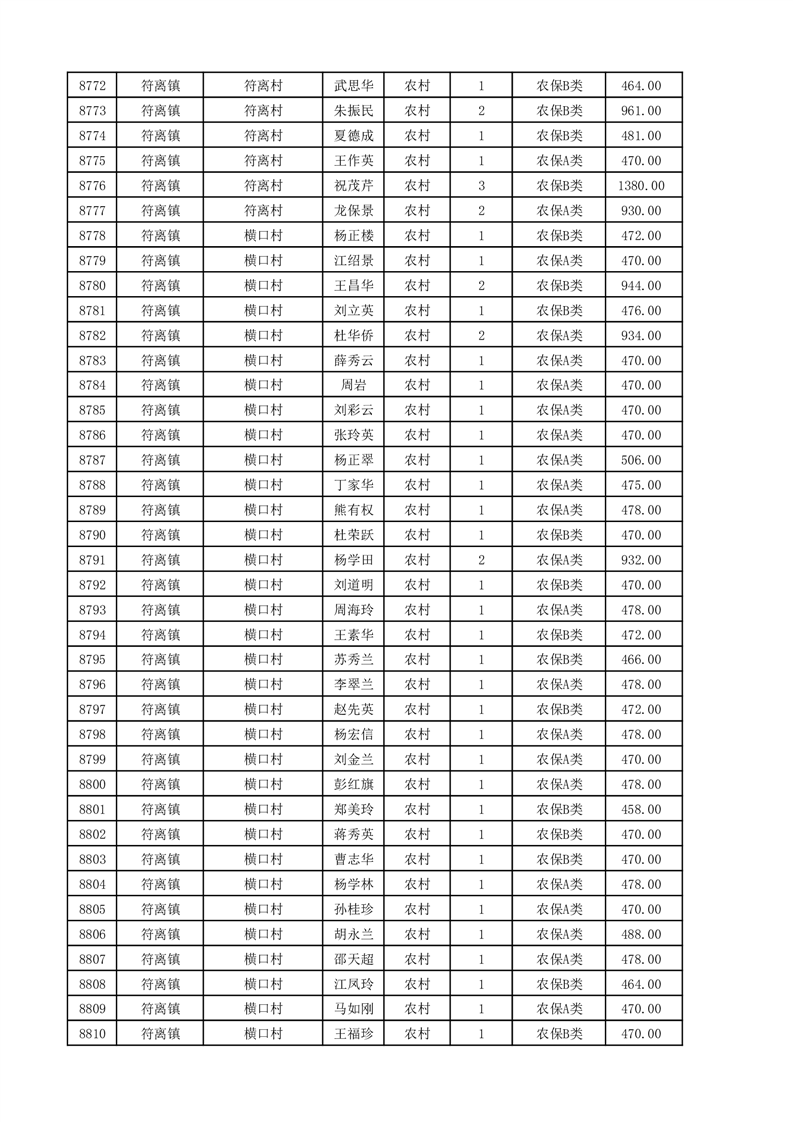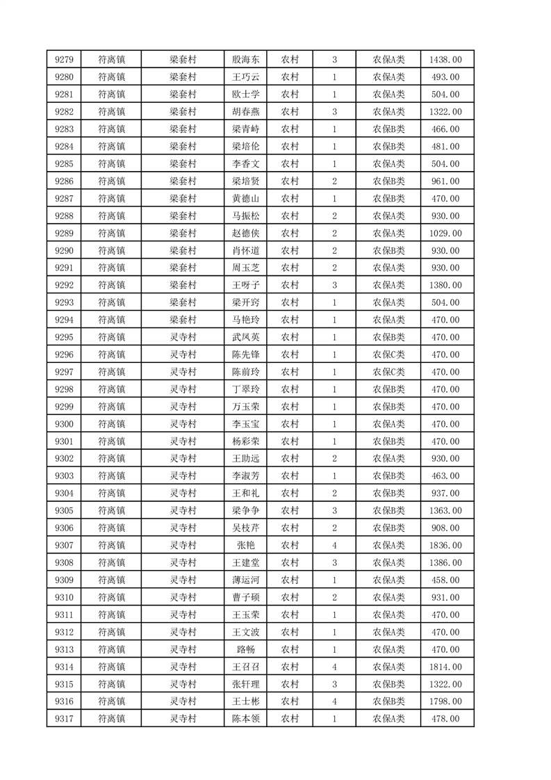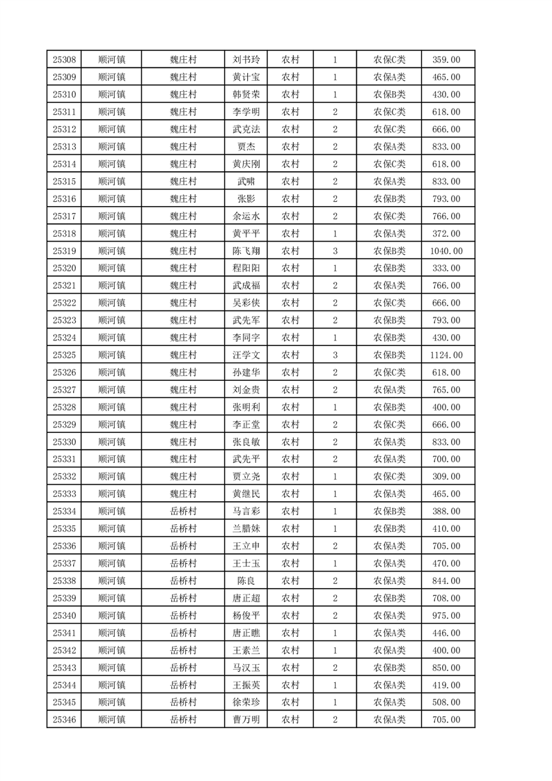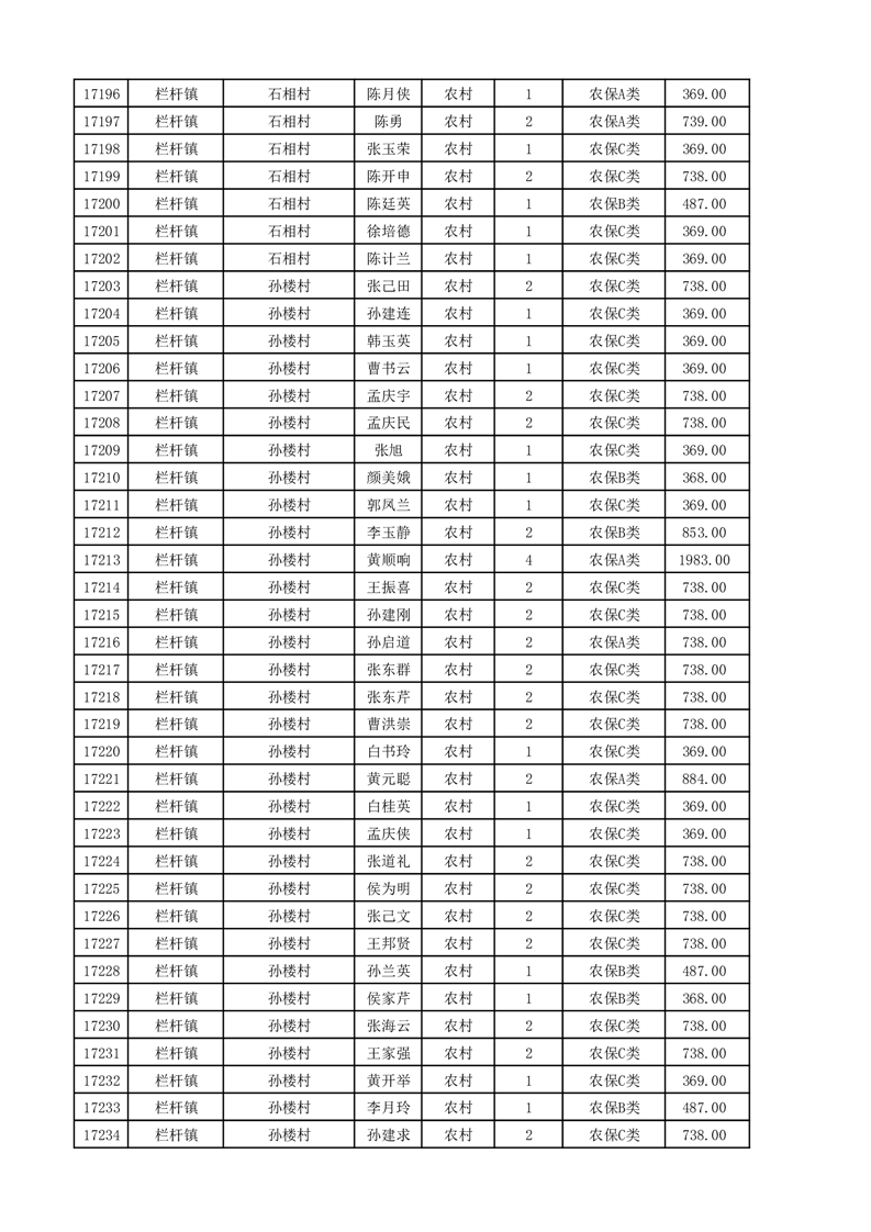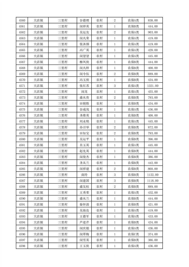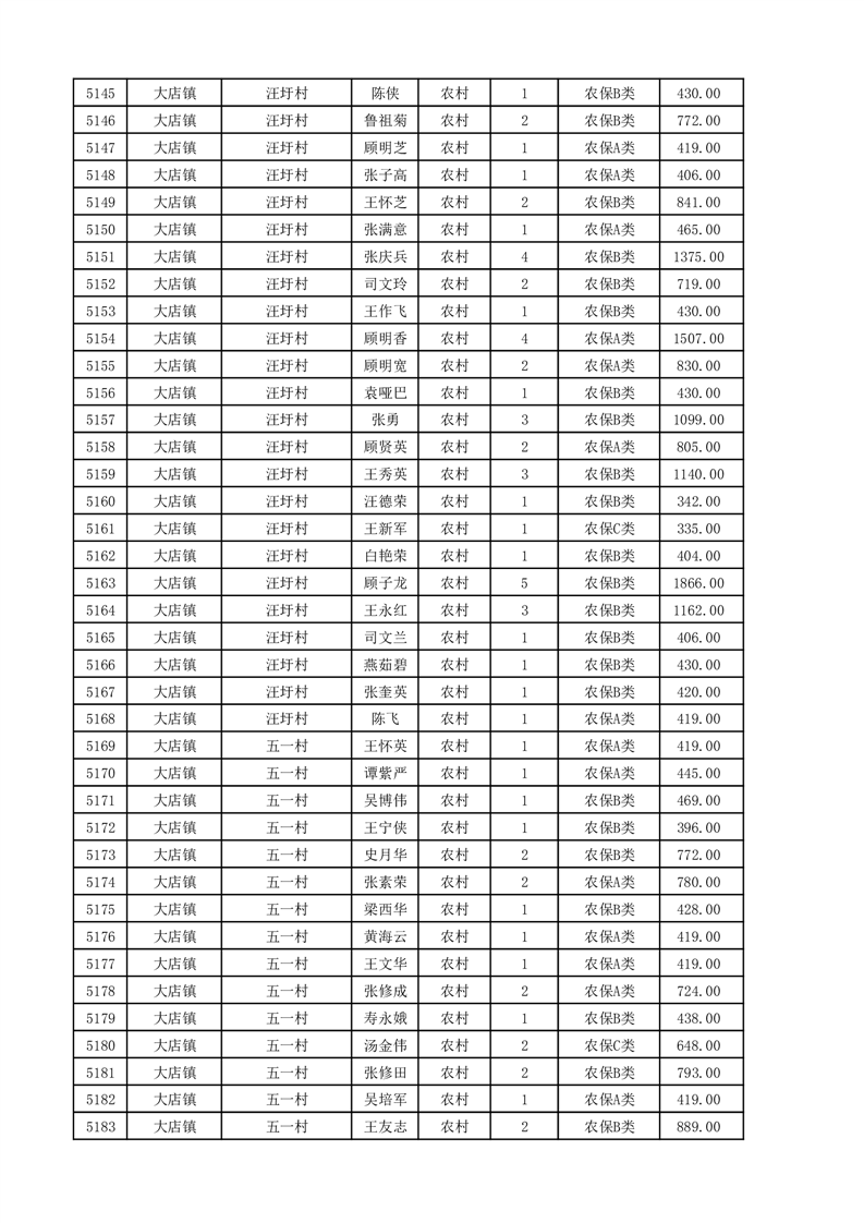 埇桥区2025年11月份农村低保花名册