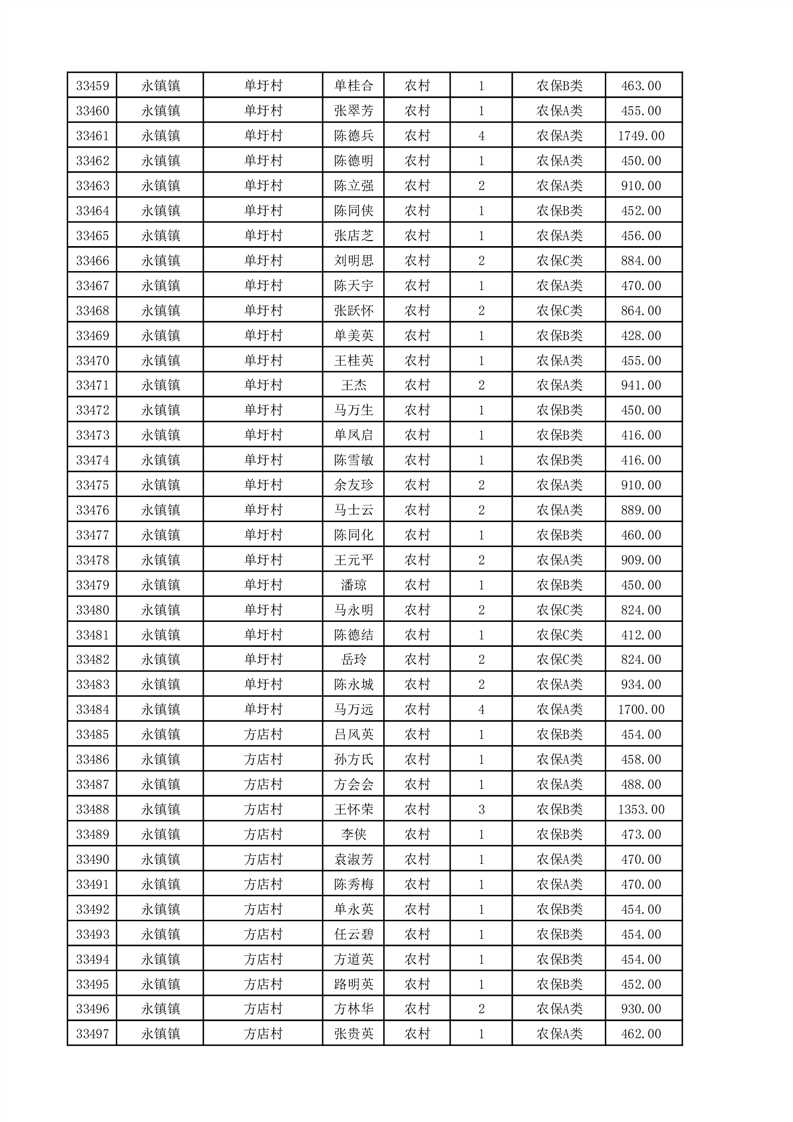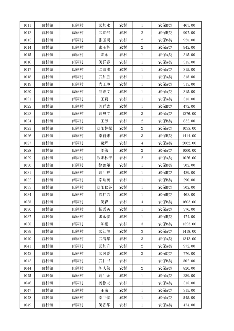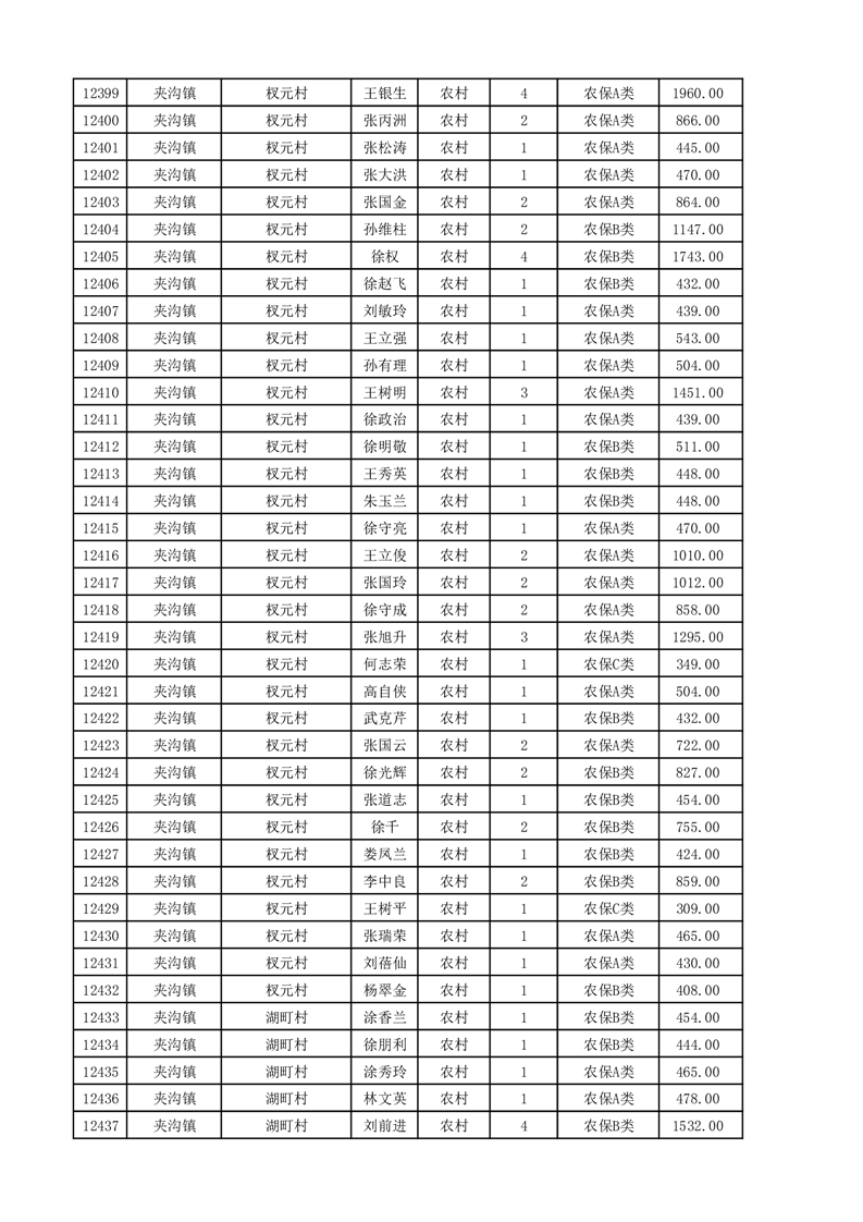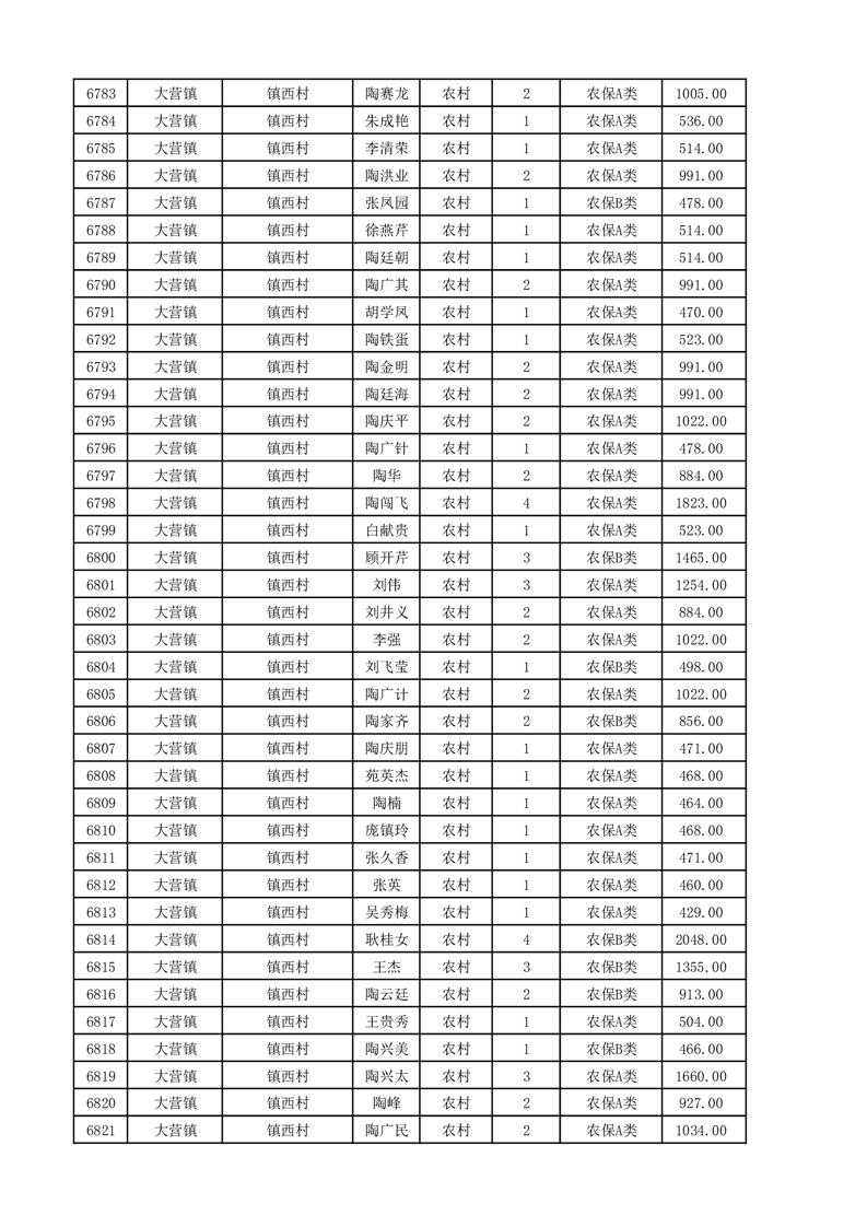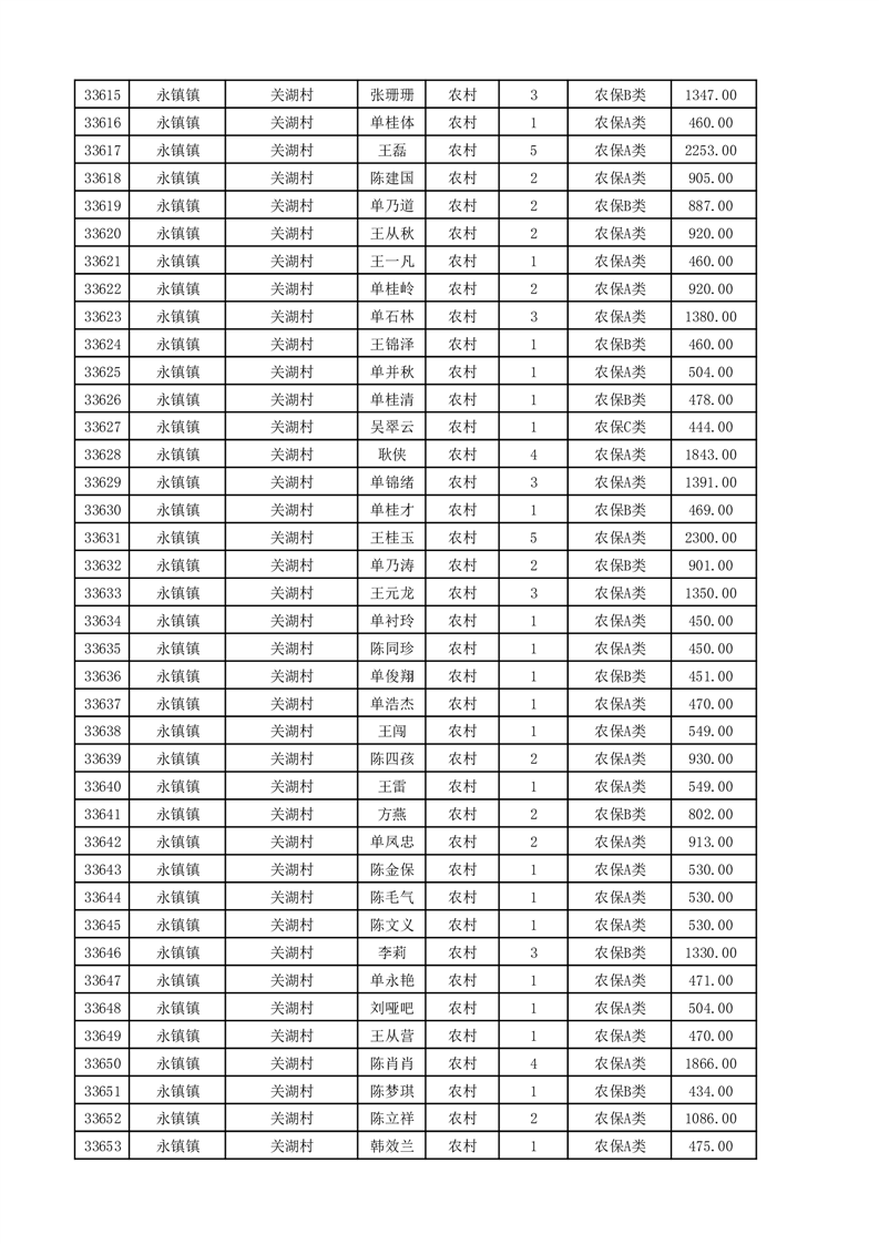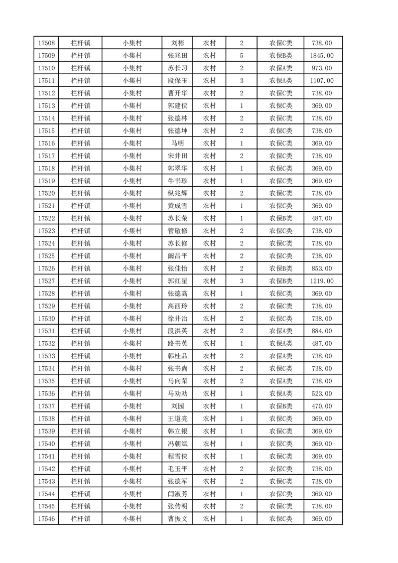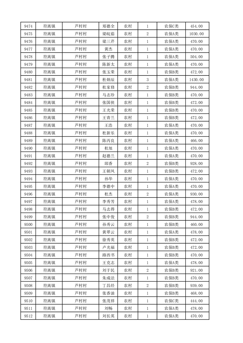 埇桥区2025年11月份农村低保花名册
