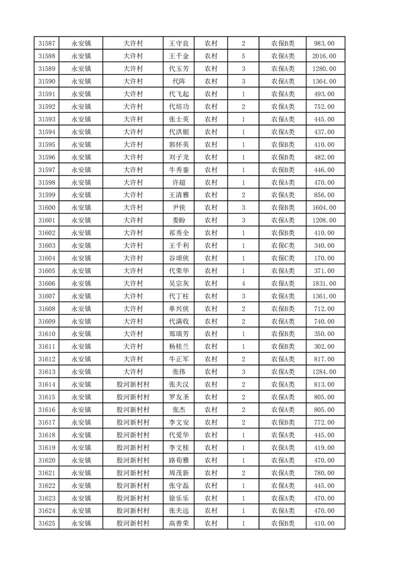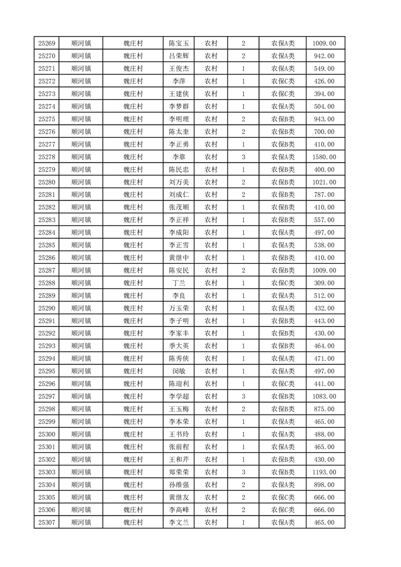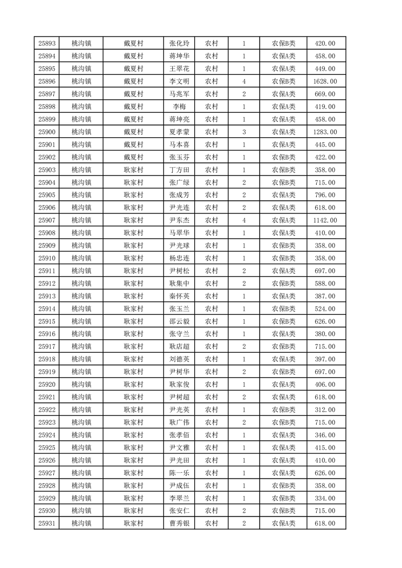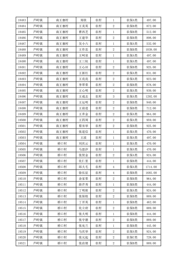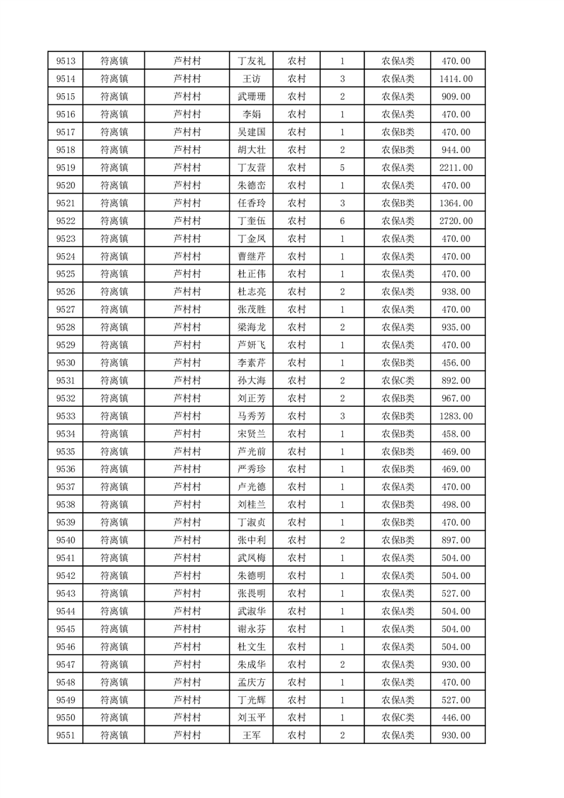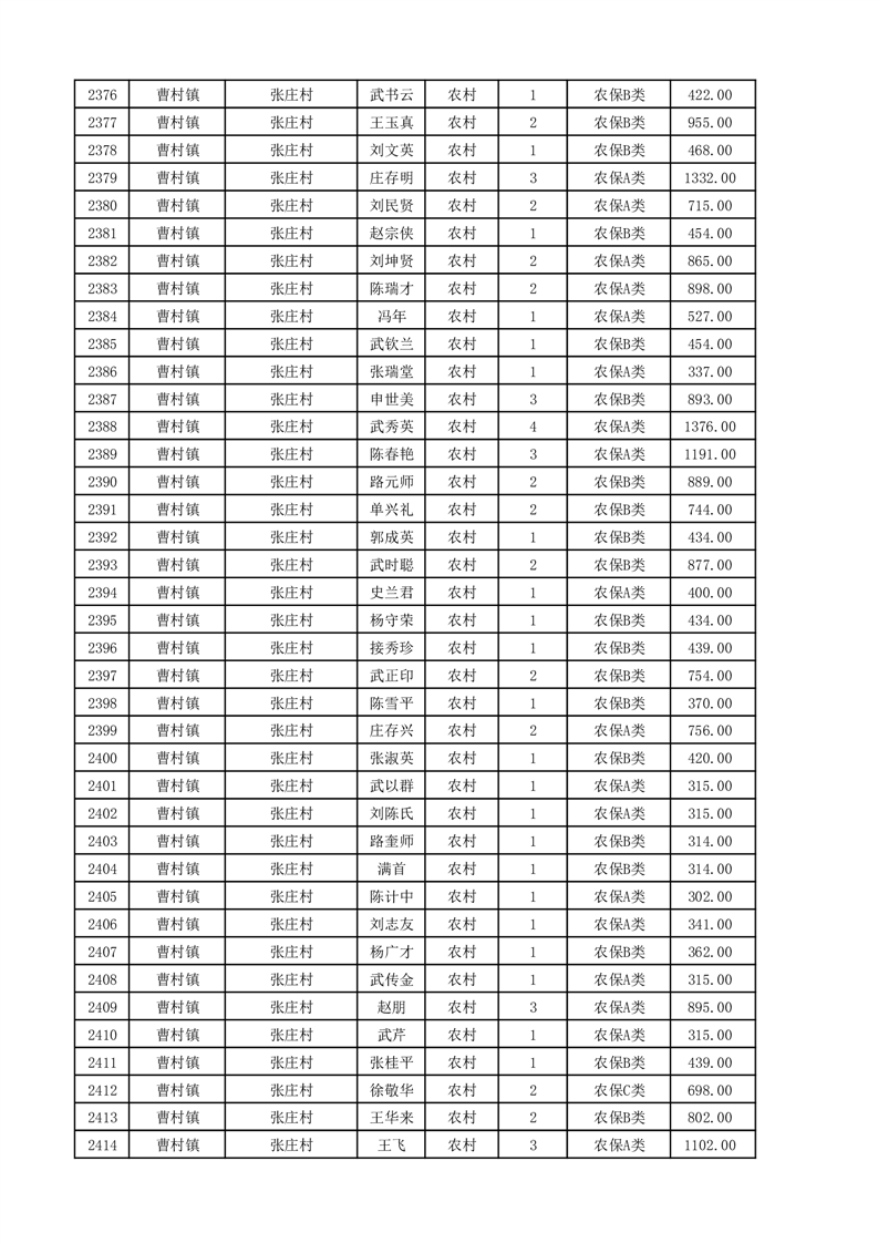埇桥区2025年11月份农村低保花名册