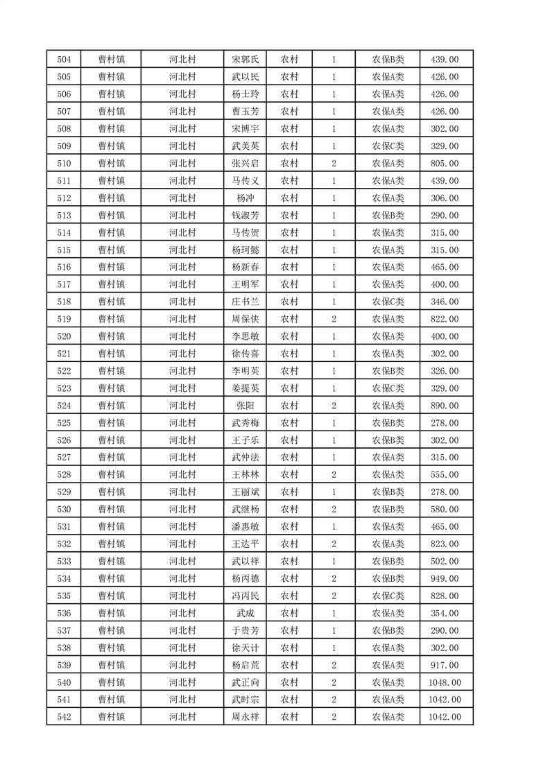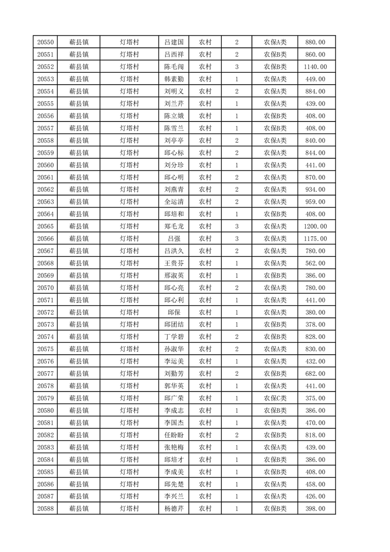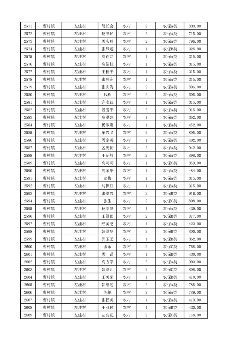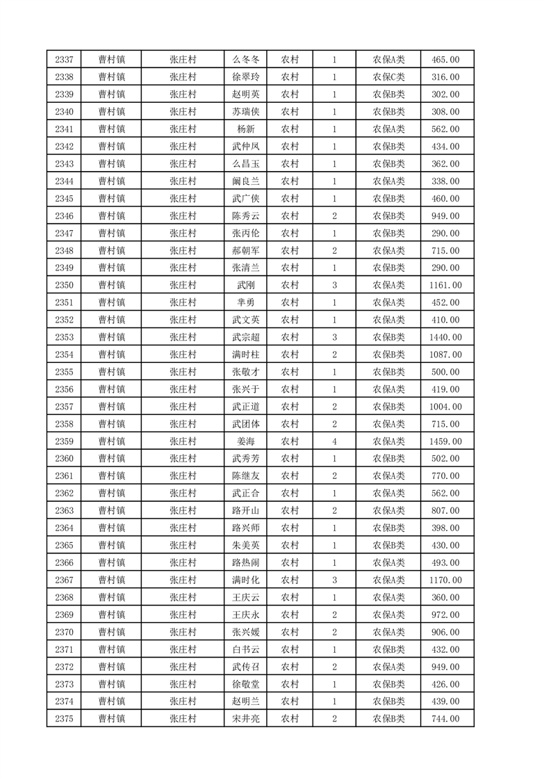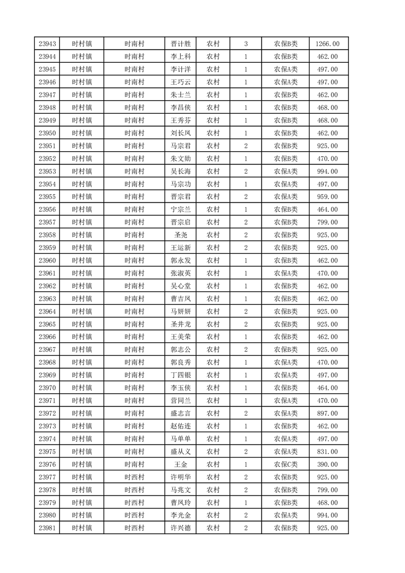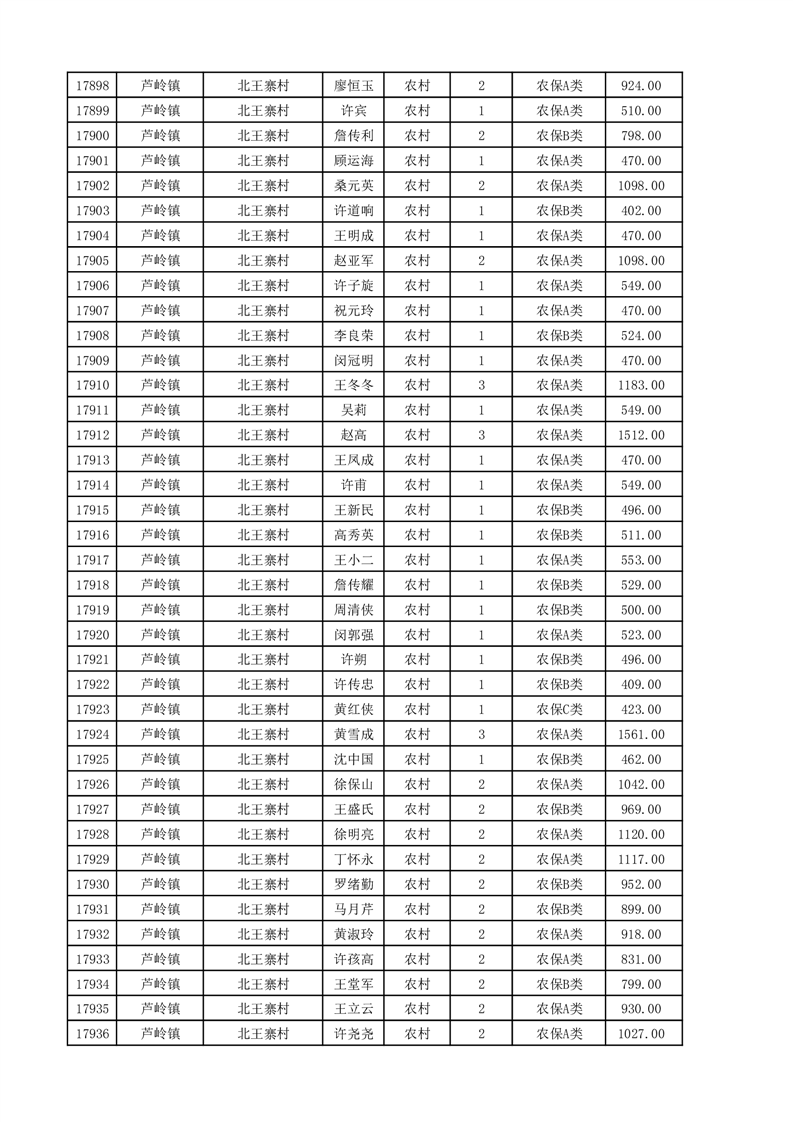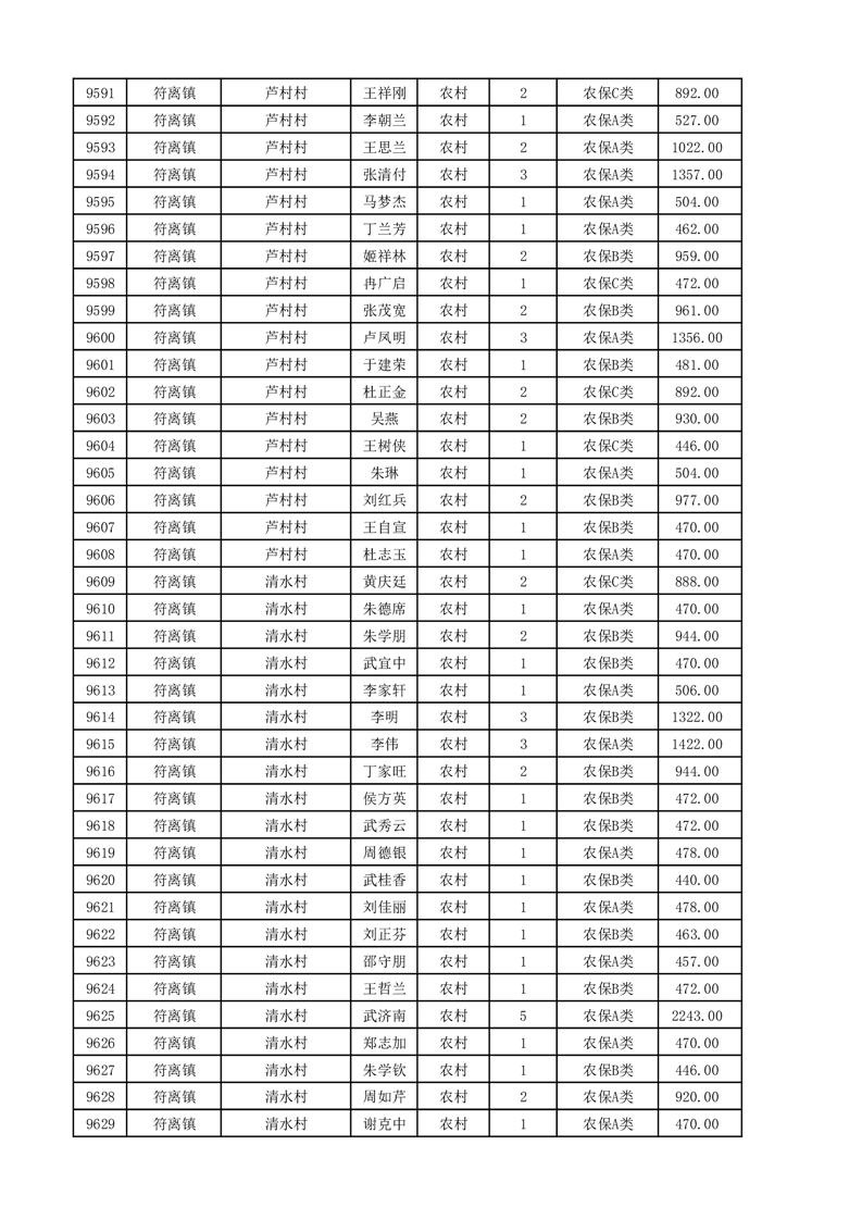 埇桥区2025年11月份农村低保花名册