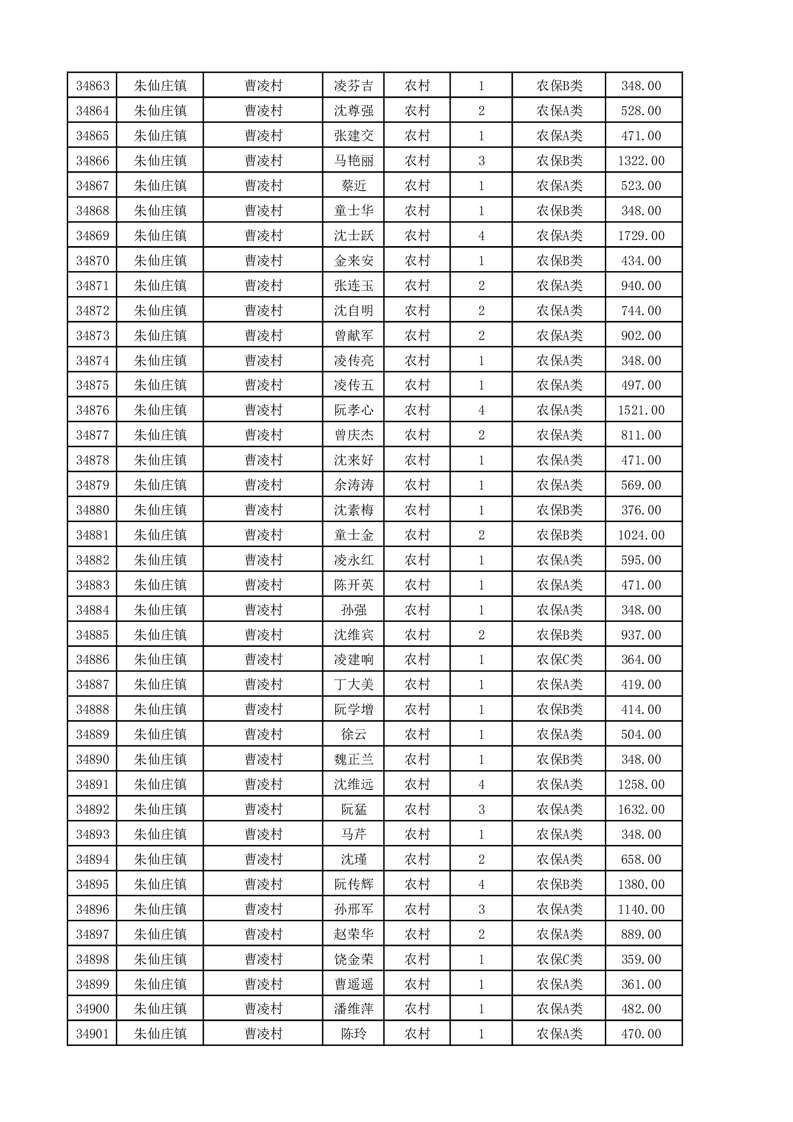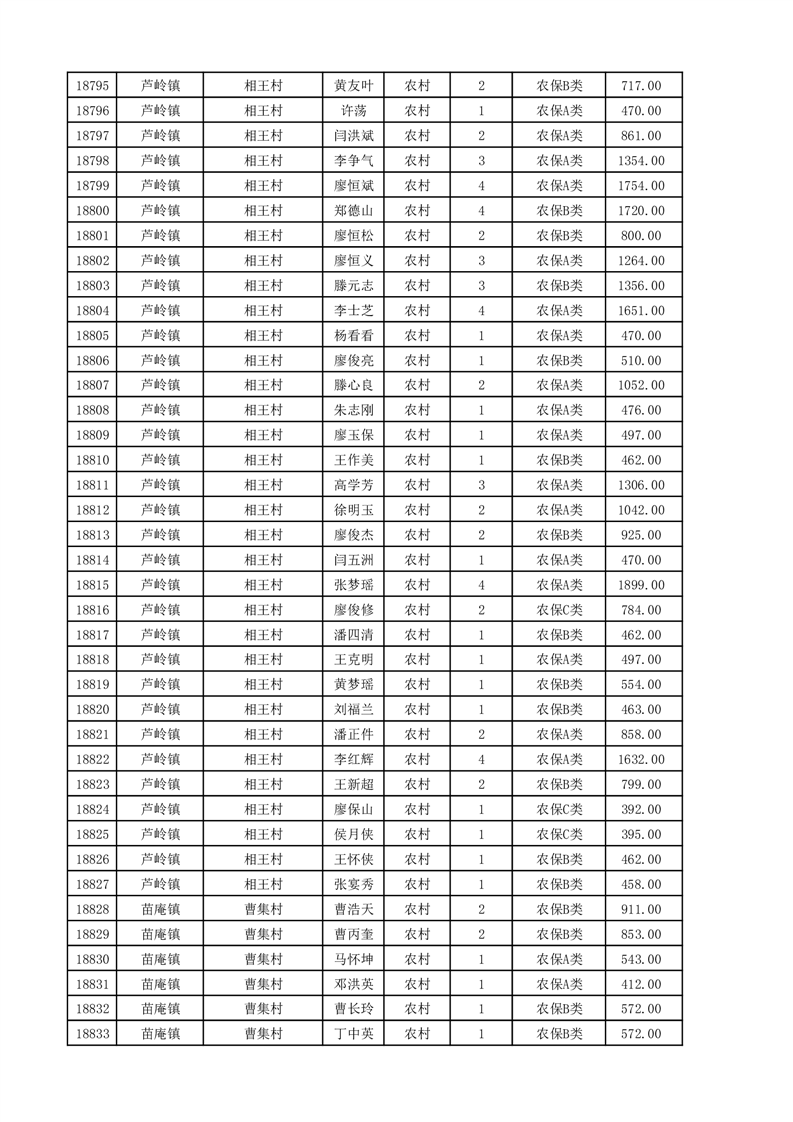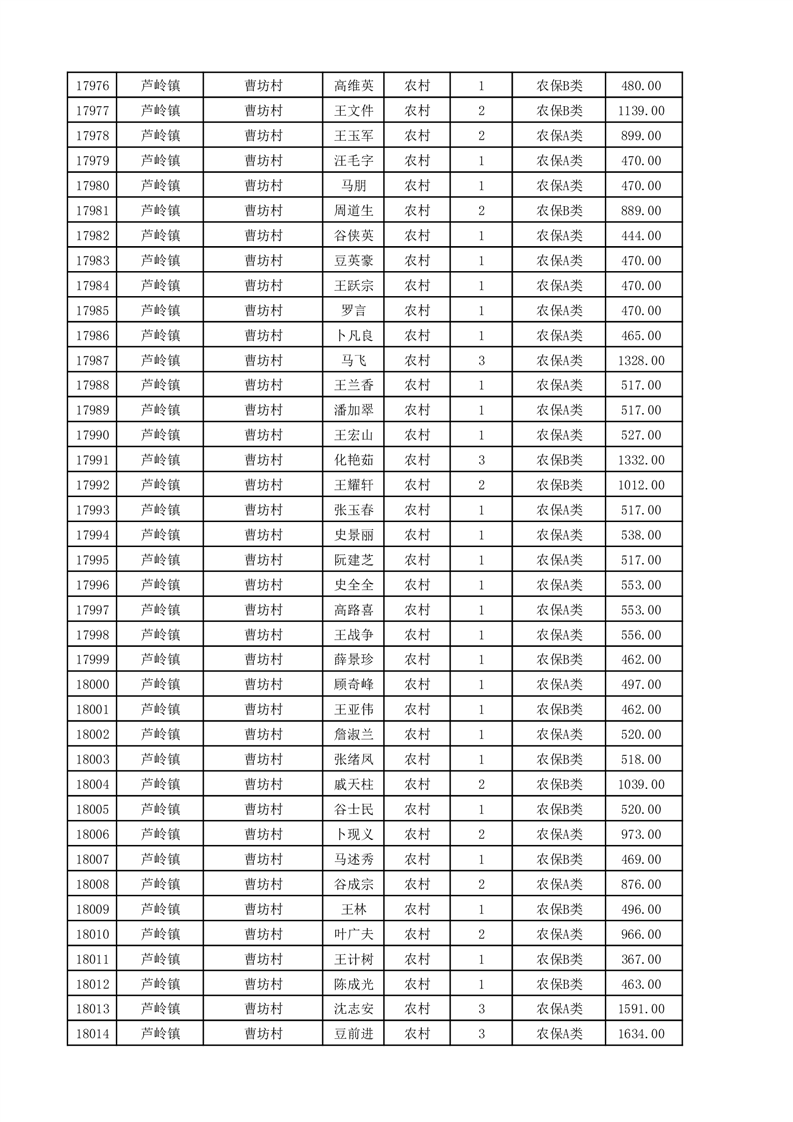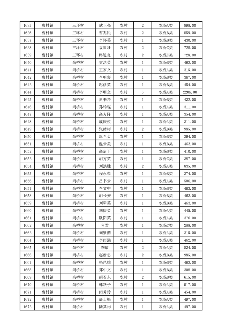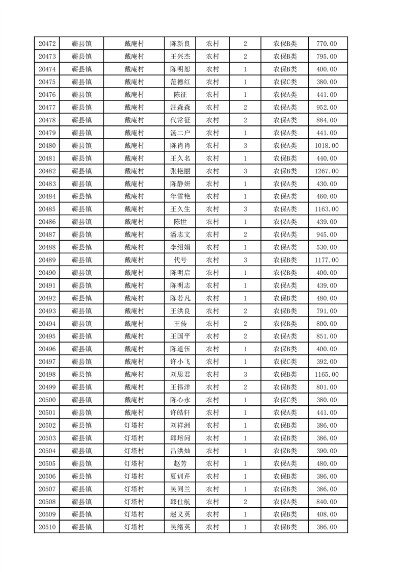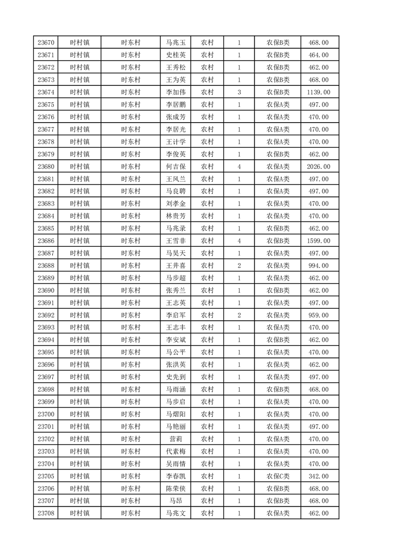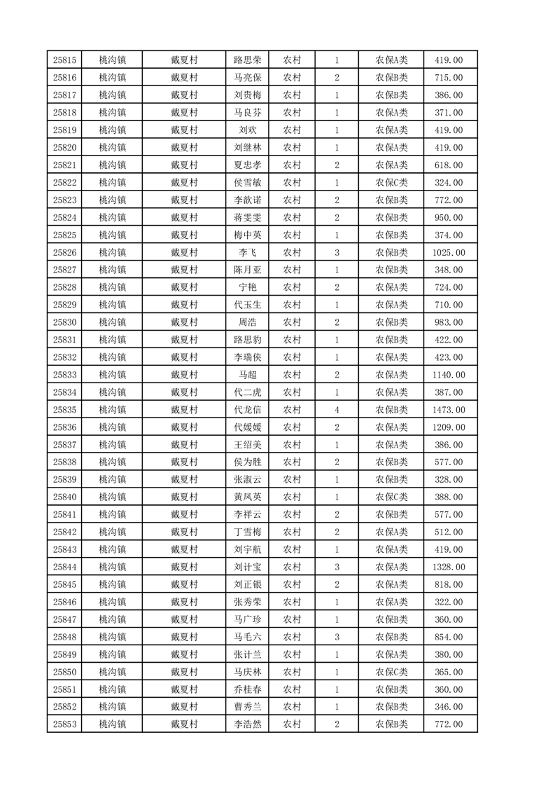 埇桥区2025年11月份农村低保花名册